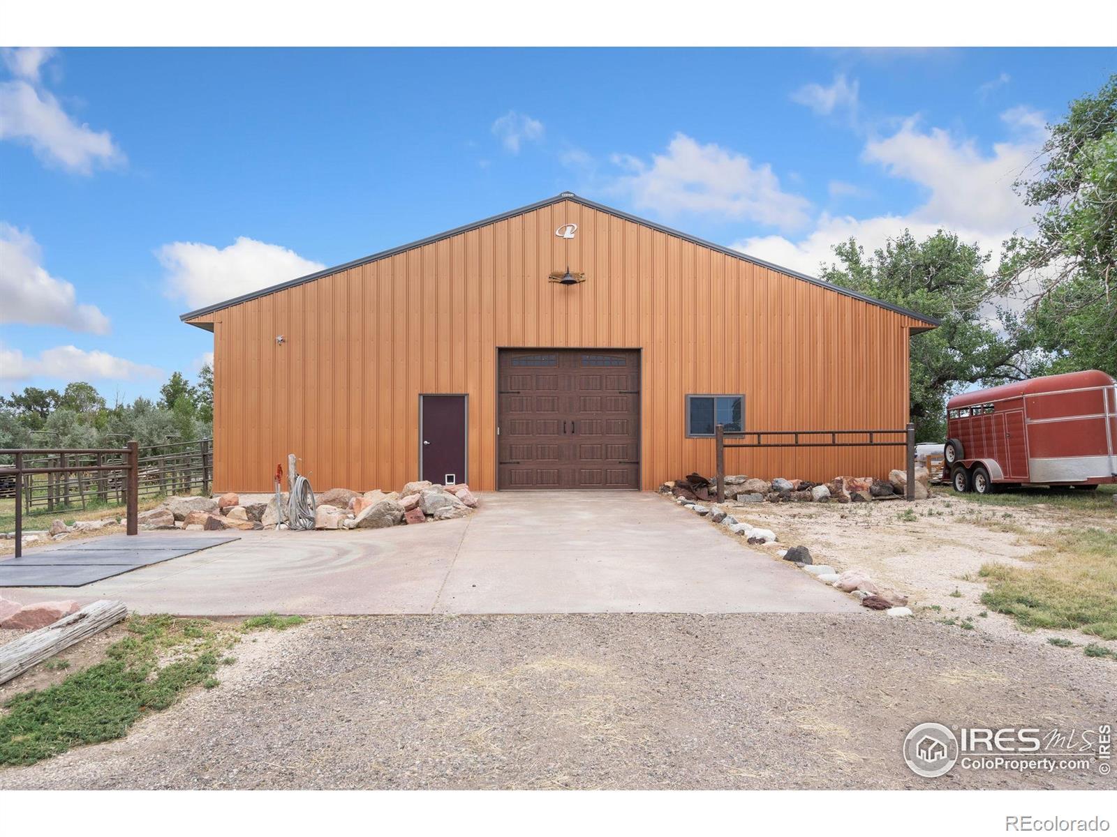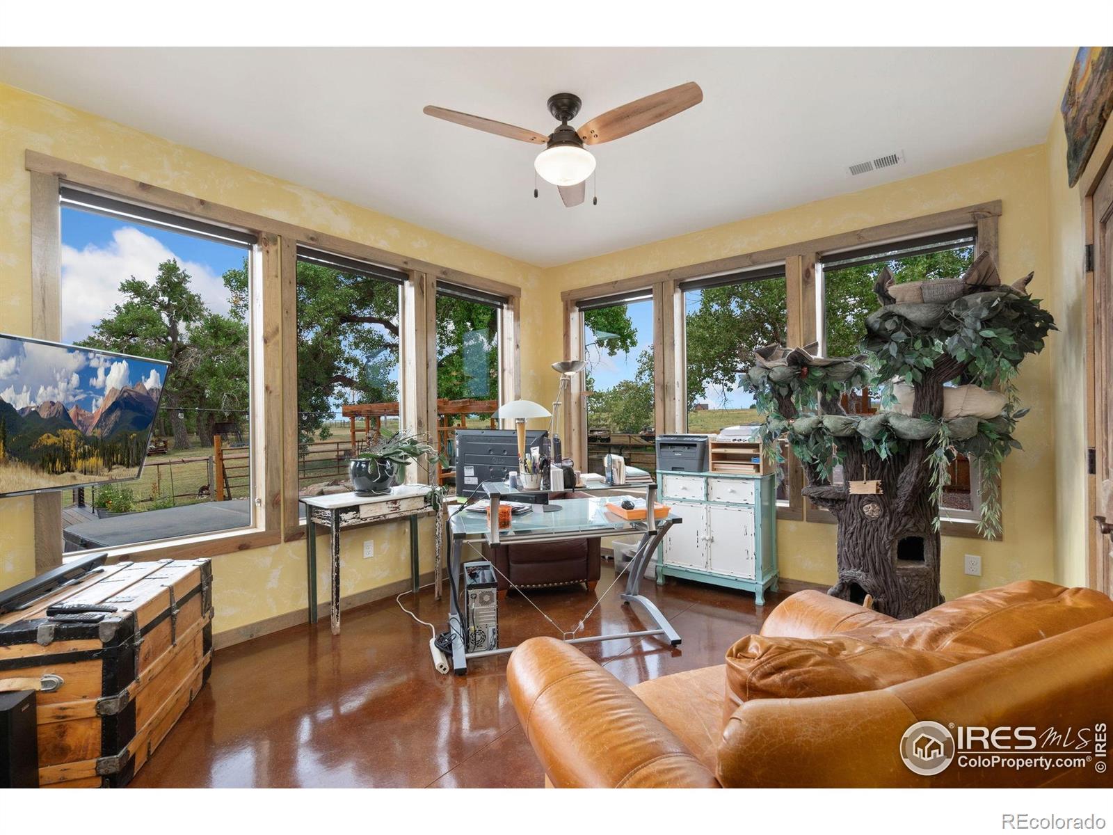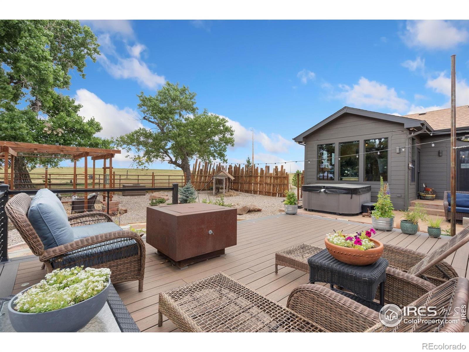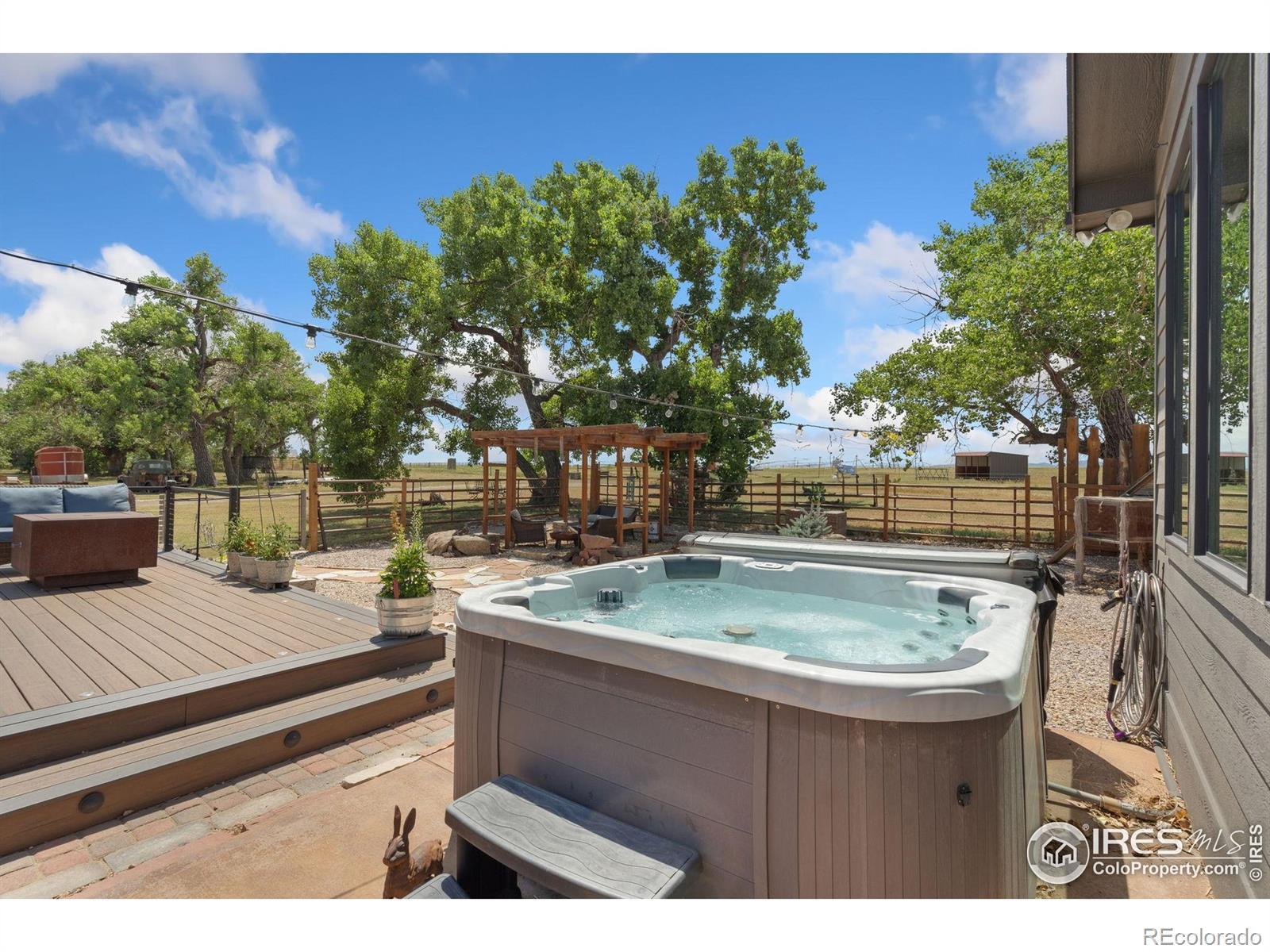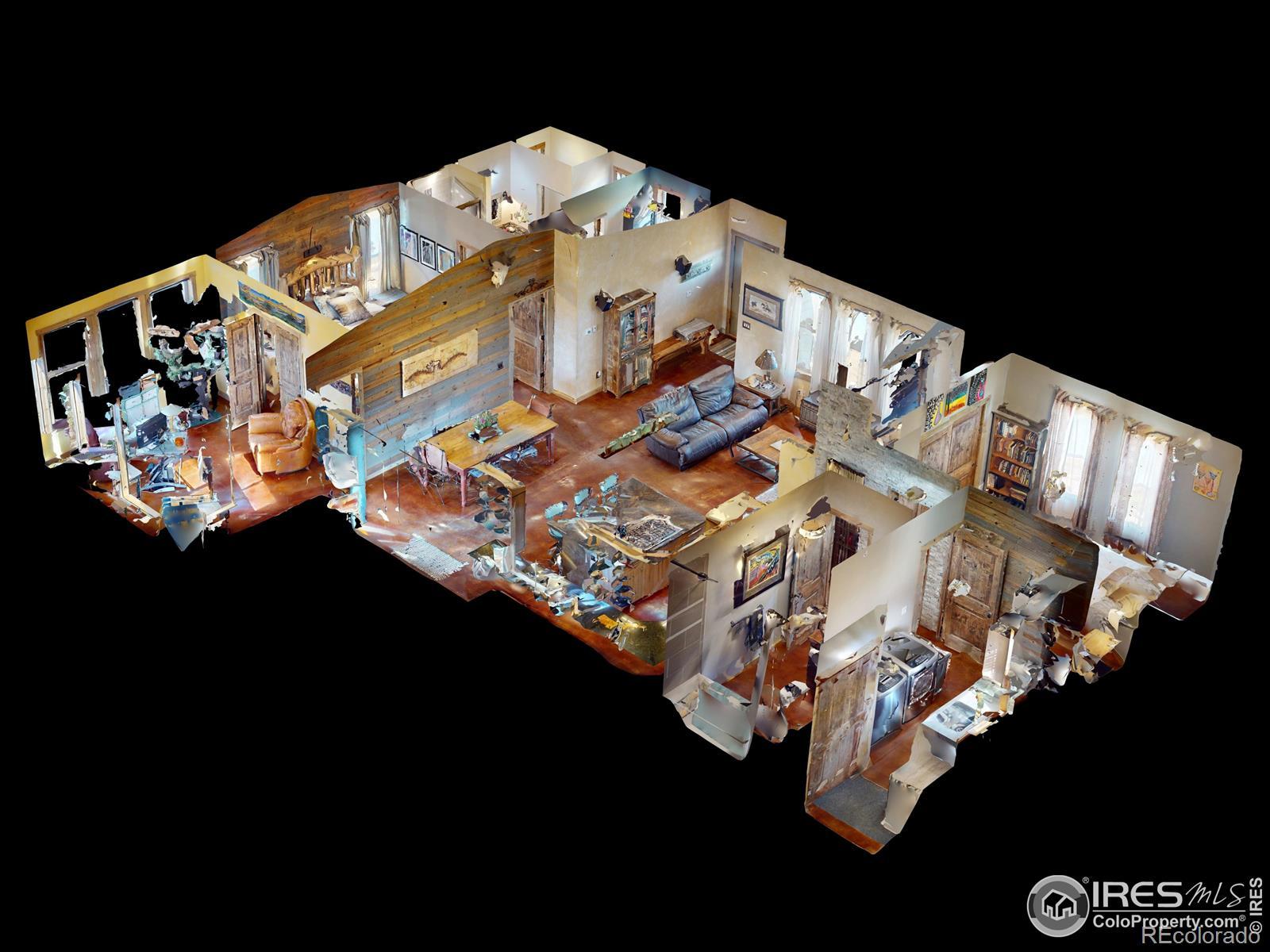 Dream equestrian estate on 38 acres! This sprawling property is fully loaded with thoughtfully designed features and horse-ready amenities. Pull in through the circular drive and be greeted by a low-maintenance xeriscape yard that blends effortlessly into the natural beauty of the surroundings. The single-level, custom-built home strikes a beautiful balance between rustic design and modern comforts, featuring an open layout with vaulted ceilings, stained concrete radiant heated floors and new A/C! Craftsmanship shines through with wood, stone, and industrial details that deliver a sleek warm aesthetic. The living room is centered around a stained steel ethanol fireplace that adds bold style and cozy ambiance. Enjoy cooking your favorite meals in the kitchen, equipped with stainless steel appliances, granite counters, tiled backsplash, and a large island with bar seating. Two bedrooms are positioned on opposite ends of the home, for added privacy, each with an elegant chandelier and space to relax. The primary includes a walk-in closet, a private ensuite bath. The sunroom is flexible enough to become a home office, guest room, nursery, studio, or reading nook. Outdoor living is elevated with a fenced backyard oasis, complete with a concrete patio that's already equipped with a hot tub, a pergola for lazy afternoons, plus a two-tier raised deck with sun shades and warm lighting. The attached 3-car insulated garage includes built-in cabinets and a workbench, perfect for hobbies or additional storage. The fully insulated 2,688 sqft barn is the heart of the property's equestrian setup. Inside, you'll find a tack room, hay storage, utility area, three rubber-matted stalls, and tall doors big enough for tractors or trailers. A fully fenced riding arena, four pastures with horse-safe fencing, and multiple loafing sheds round out the property's horse-friendly amenities. Quick access to I-25 keeps everything within reach. 3rd BR is non-conforming.