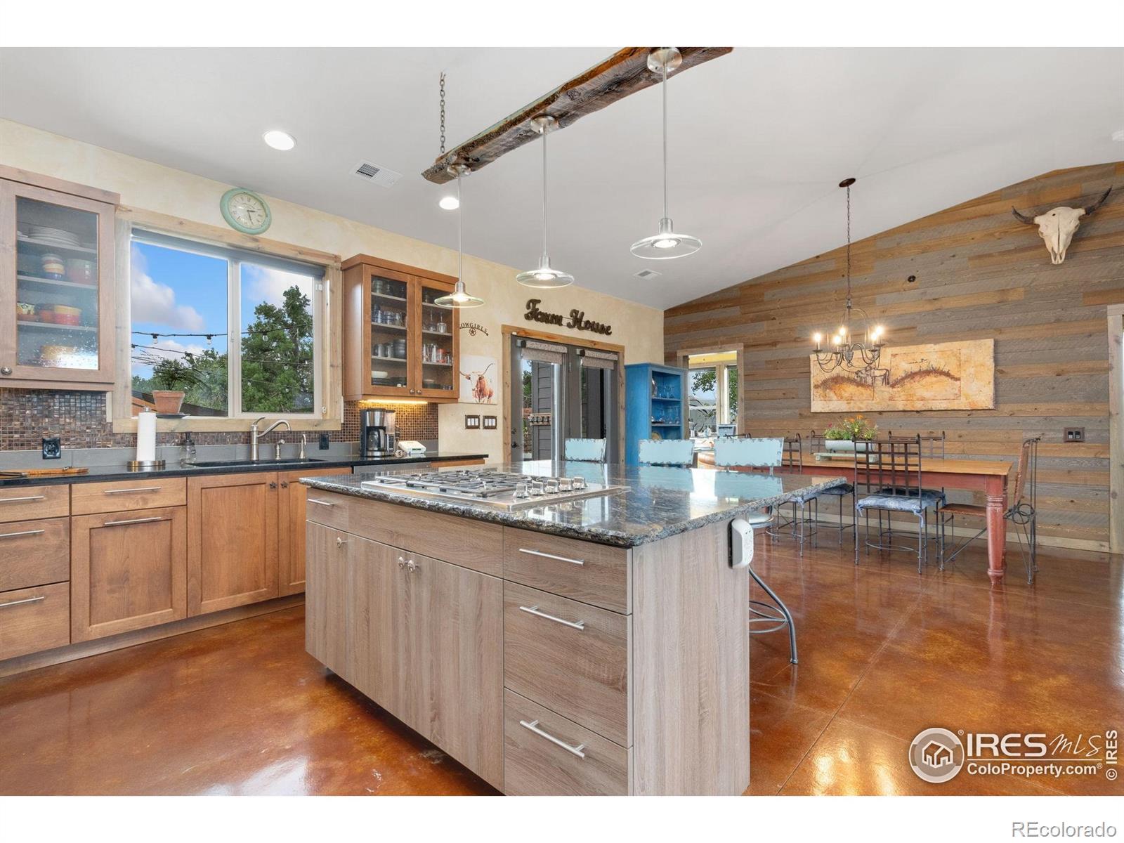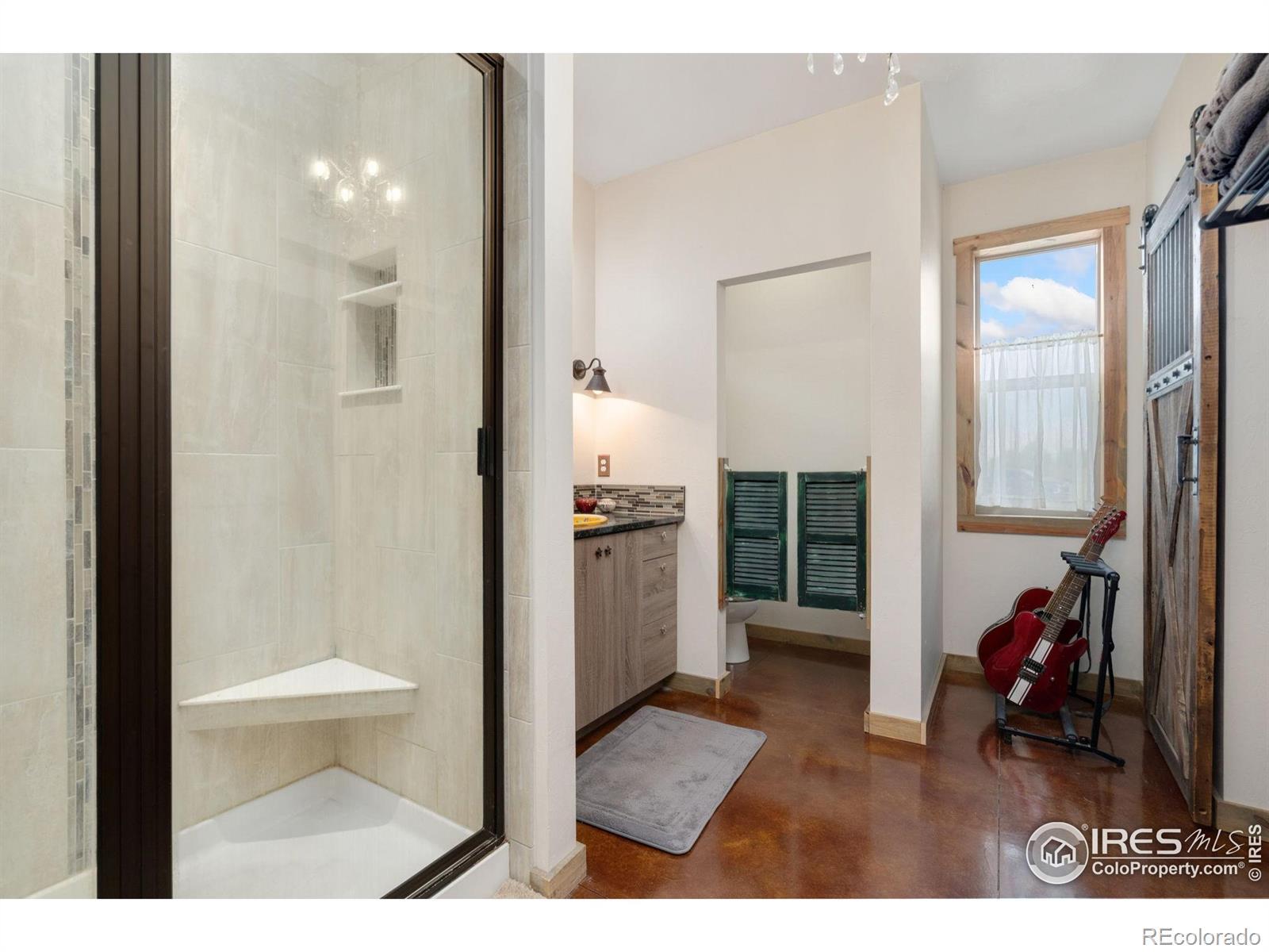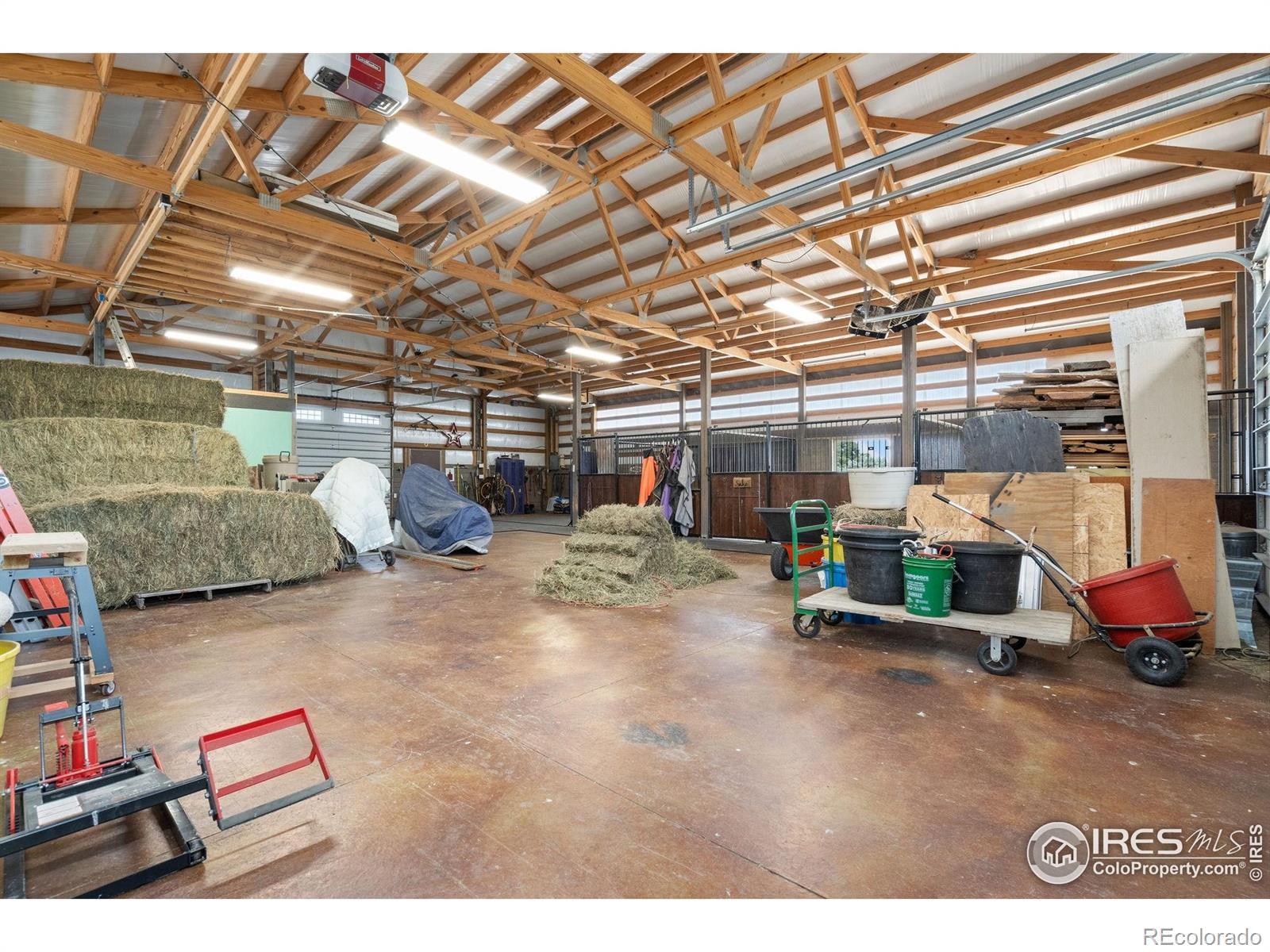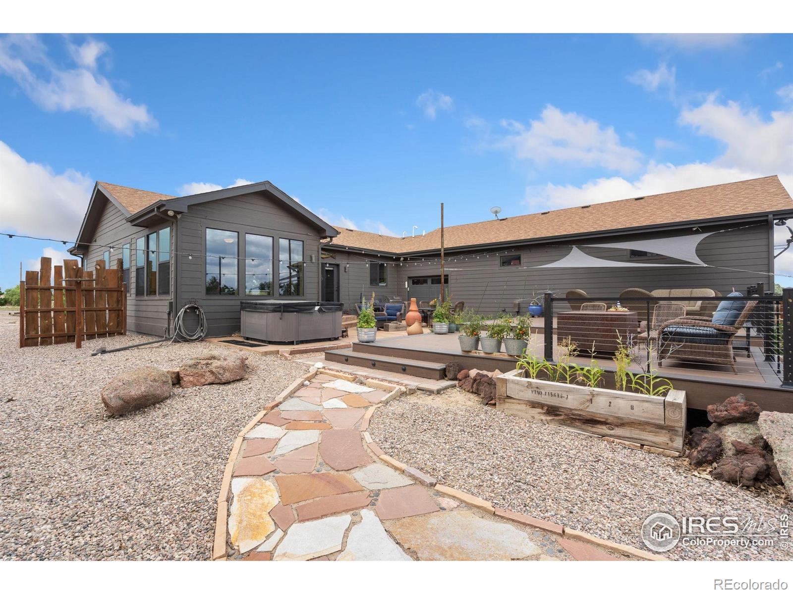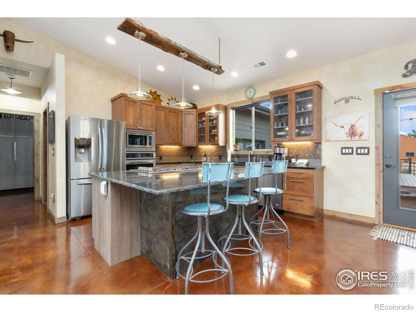Dream equestrian estate on 38 acres! This sprawling property is fully loaded with thoughtfully designed features and horse-ready amenities. Pull in through the circular drive and be greeted by a low-maintenance xeriscape yard that blends effortlessly into the natural beauty of the surroundings. The single-level, custom-built home strikes a beautiful balance between rustic design and modern comforts, featuring an open layout with vaulted ceilings, stained concrete radiant heated floors and new A/C! Craftsmanship shines through with wood, stone, and industrial details that deliver a sleek warm aesthetic. The living room is centered around a stained steel ethanol fireplace that adds bold style and cozy ambiance. Enjoy cooking your favorite meals in the kitchen, equipped with stainless steel appliances, granite counters, tiled backsplash, and a large island with bar seating. Two bedrooms are positioned on opposite ends of the home, for added privacy, each with an elegant chandelier and space to relax. The primary includes a walk-in closet, a private ensuite bath. The sunroom is flexible enough to become a home office, guest room, nursery, studio, or reading nook. Outdoor living is elevated with a fenced backyard oasis, complete with a concrete patio that's already equipped with a hot tub, a pergola for lazy afternoons, plus a two-tier raised deck with sun shades and warm lighting. The attached 3-car insulated garage includes built-in cabinets and a workbench, perfect for hobbies or additional storage. The fully insulated 2,688 sqft barn is the heart of the property's equestrian setup. Inside, you'll find a tack room, hay storage, utility area, three rubber-matted stalls, and tall doors big enough for tractors or trailers. A fully fenced riding arena, four pastures with horse-safe fencing, and multiple loafing sheds round out the property's horse-friendly amenities. Quick access to I-25 keeps everything within reach. 3rd BR is non-conforming.