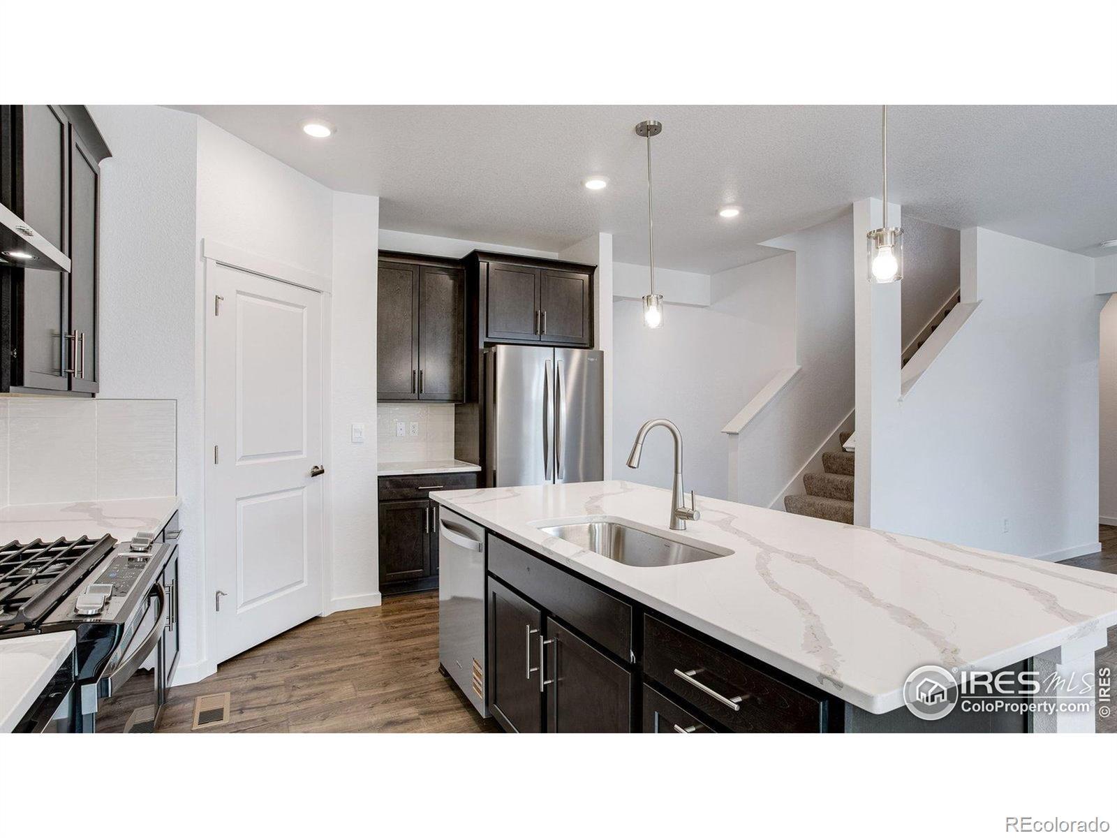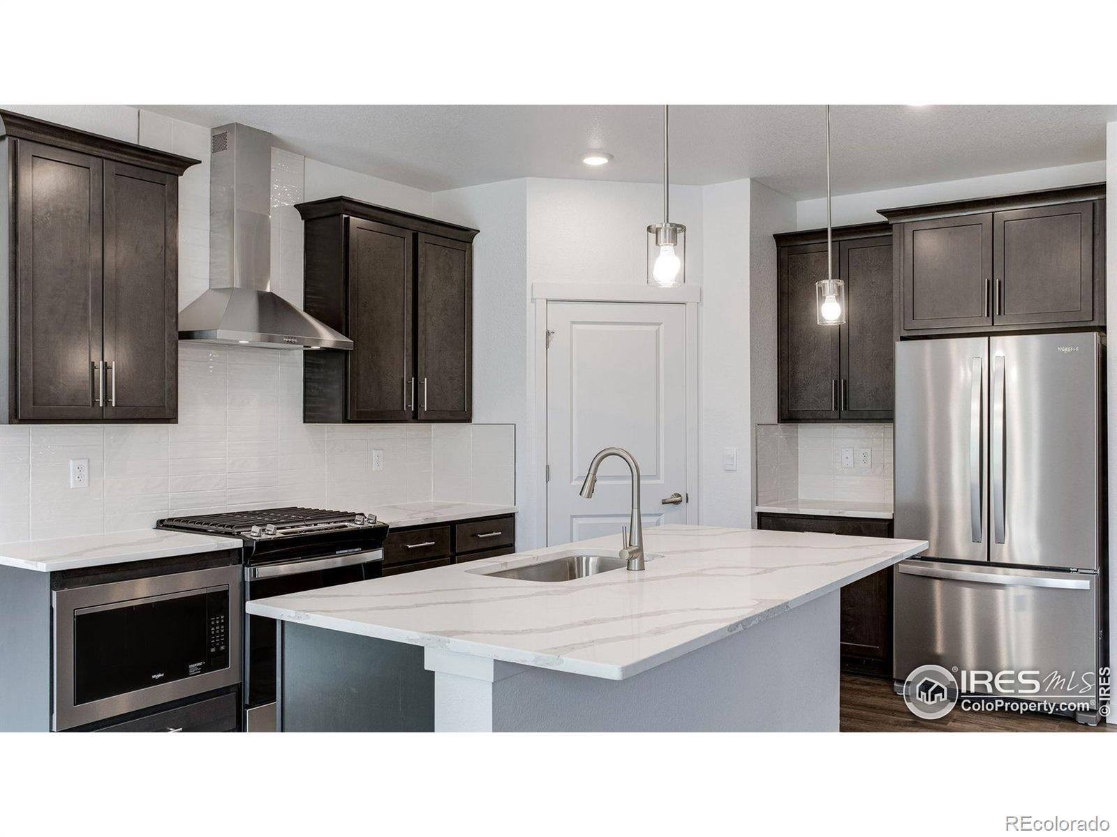 Backing to open space and trails, your new home awaits you in the Hansen Farm community located in Fort Collins, CO. The Henley floor plan is an open concept 2-story home that features 5 bedrooms, 3 full bathrooms and 2,652 sq. ft. of living space and an unfinished basement of 1056 sq. ft. totaling 3,708 sq. ft. to enjoy! As you enter your new home from the front door and walk through the foyer you will see the spacious main floor bedroom and a full-size bath. Additionally, as you walk further into the home you will experience the open concept great room, dining, and kitchen area. As you step into the heart of your new home you will enjoy the spacious kitchen that features premium cabinetry with new LUXE kitchen appliances, a corner walk-in pantry and an expansive island that is great for meal prepping, dining or entertaining. Upstairs is the oversized spacious primary bedroom that includes a bathroom with double vanity sinks, a private room for the toilet and an expansive walk-in closet with additional storage. In addition, an upstairs laundry room and 4 secondary bedrooms. One of the 4 secondary bedrooms has its own en-suite full bath that offers amazing flexibility in your homes comfort. ***Interior photos of actual home. Exterior photo is representative of actual property. ***