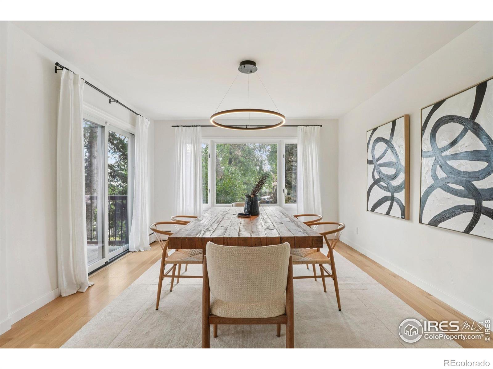 Nestled in the highly desirable Rolling Hills neighborhood, this beautifully renovated home showcases a spacious, light-filled interior w/open living spaces that offer breathtaking mountain & city views. Upon entering, you'll be greeted by an abundance of natural light streaming through large windows, creating an airy ambiance & showcasing the stunning surroundings. The soaring ceilings enhance the feeling of openness, while the seamless indoor-outdoor flow adds to the home's charm. As you step into the living room, you'll be captivated by floor-to-ceiling windows, access to multiple balconies, extended oak wood floors & stylish open spaces. The layout effortlessly flows into a dining room wrapped in windows & kitchen designed to delight any chef. The kitchen features a large center island, ceiling-height cabinetry & generous counter space w/Calcutta Gold quartz countertops and a slab backsplash, ensuring it is both functional and exquisite, with easy access to outdoor spaces. Off the kitchen, a sunroom serves as a sunlit wellness area or private home office. The main level also includes two comfortable BRs, a fully remodeled BA & convenient laundry/powder room. Upstairs, the tranquil & private primary suite awaits, complete w/vaulted ceilings, huge custom-built walk-in closet & private east-facing balcony offering panoramic views. The designer-inspired, fully renovated primary BA is sure to impress. The versatile garden-level basement features two additional BRs, renovated BA and a walk-out recreation room with cozy wood-burning fireplace perfect for relaxing w/family & friends. Lrg, private yard w/mature trees & landscaping offers serenity & privacy. A relaxing spa, four mini-splits, along w/owned solar panels leaves you nothing to do but move in & enjoy. Conveniently located just a short walk to South Boulder Rec Center, Viele Lake & Mesa Trail System. Let's Get You Home!
