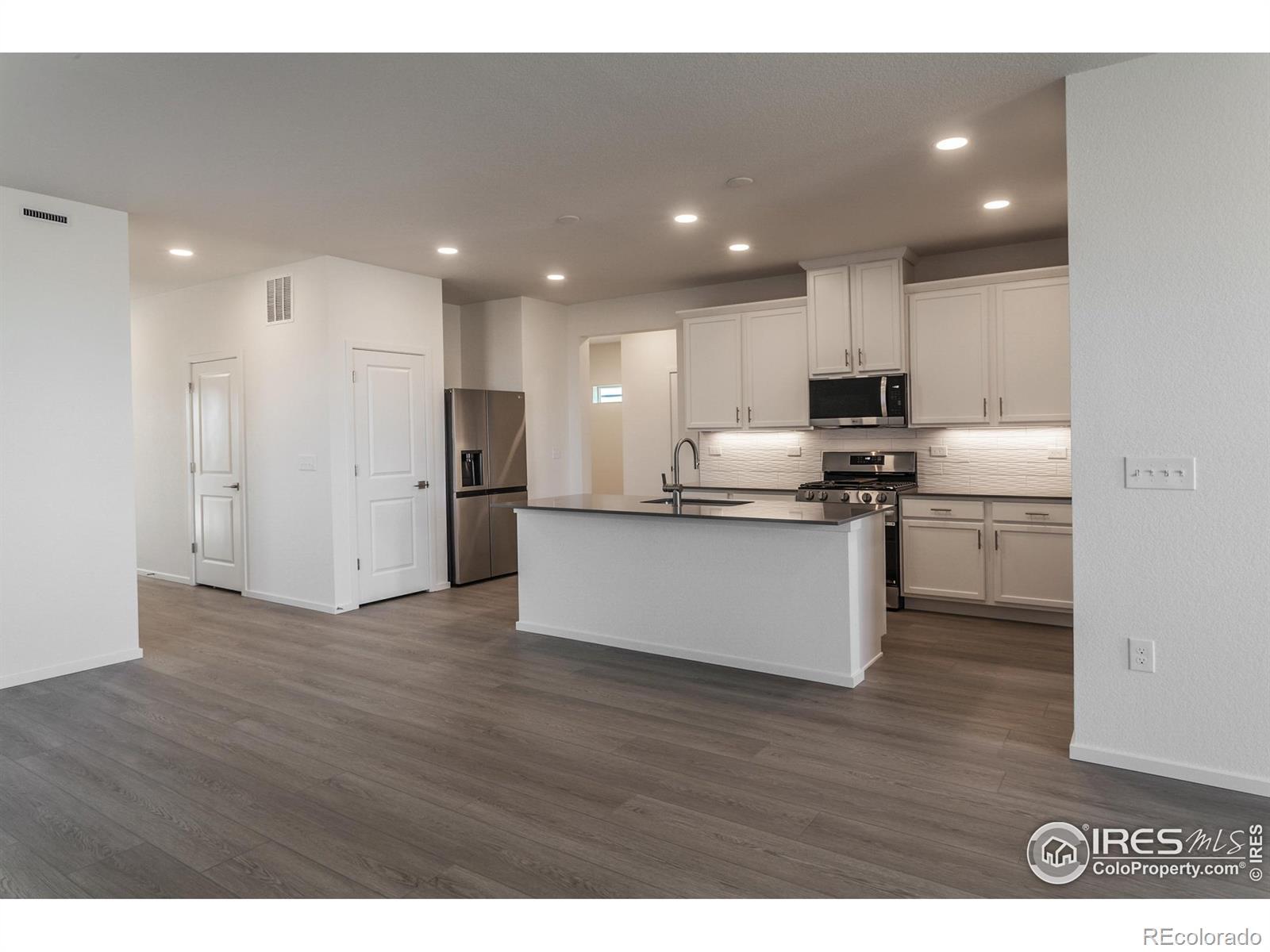 Armstrong by Hartford Homes. New construction ranch, move-in ready. Open floor plan. Central a/c. S.s. dishwasher, fridge, microwave, gas range. White painted maple cabinetry. Quartz countertops throughout. Vinyl plank flooring in entry, kitchen, great room, dining room. 3 bedrooms. Flex/study space. Washer & dryer included. Garage door opener and keypad. Active radon system. Front yard landscaping included. EV Ready Outlet in Garage. There is a $275 annual non-potable water fee to be paid to metro district. Future plans for community to have a Community Green, retail, parks, trails, pool. PHOTOS FROM ACTUAL HOME.