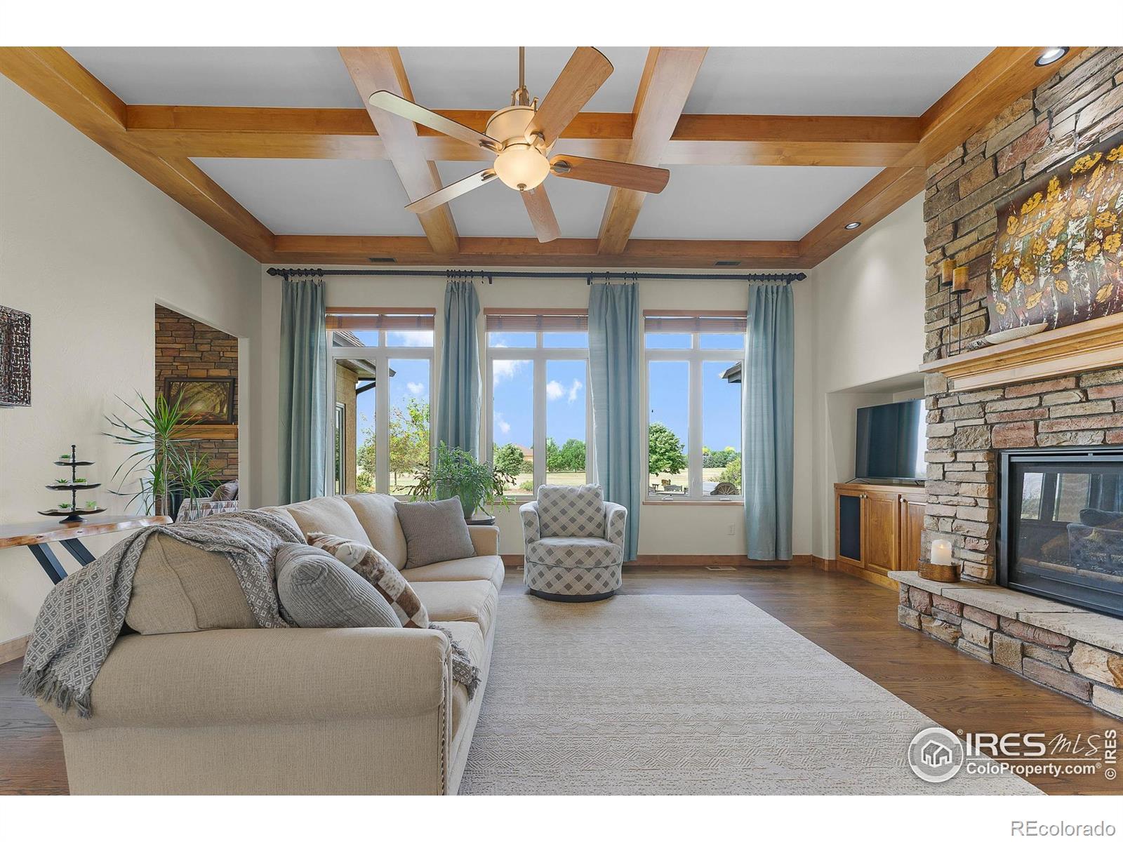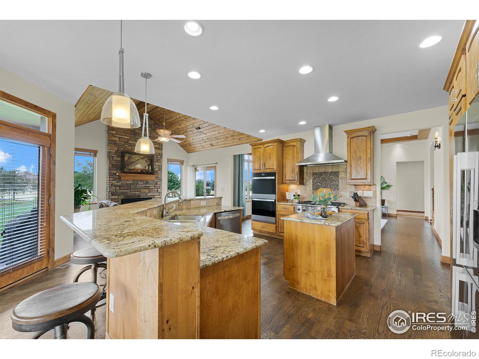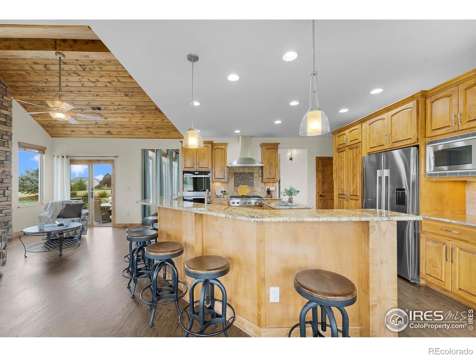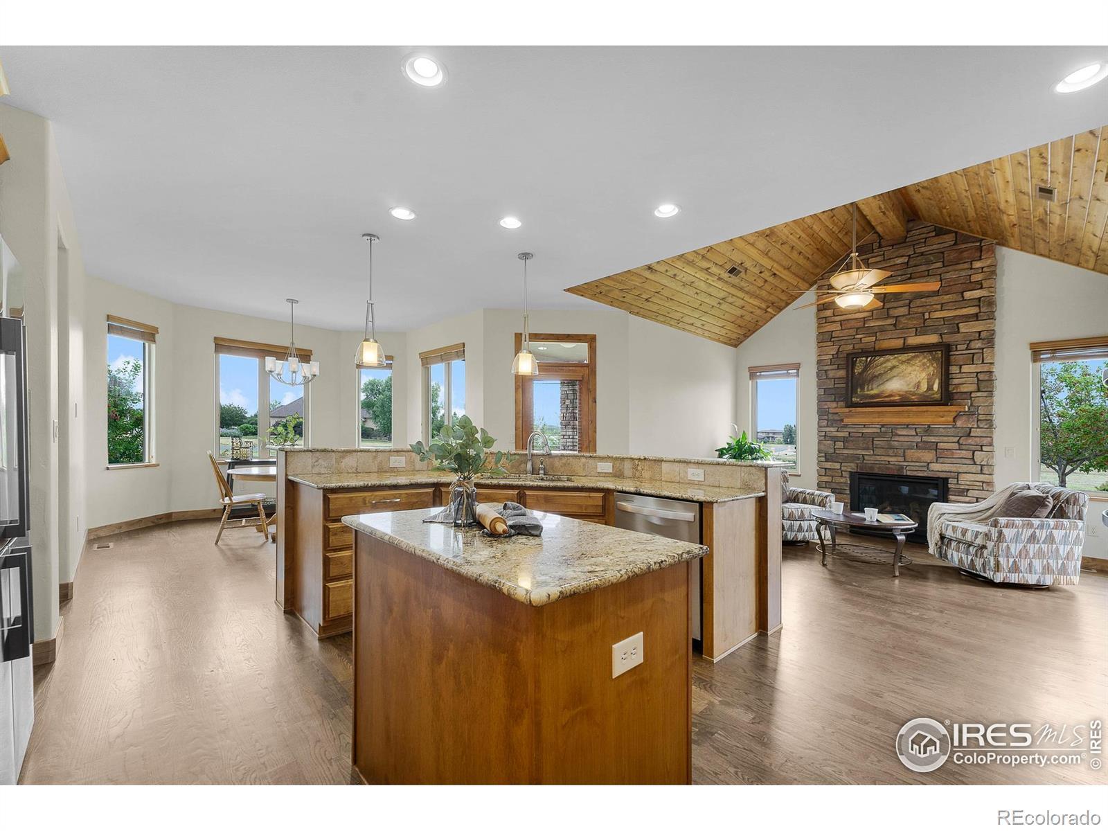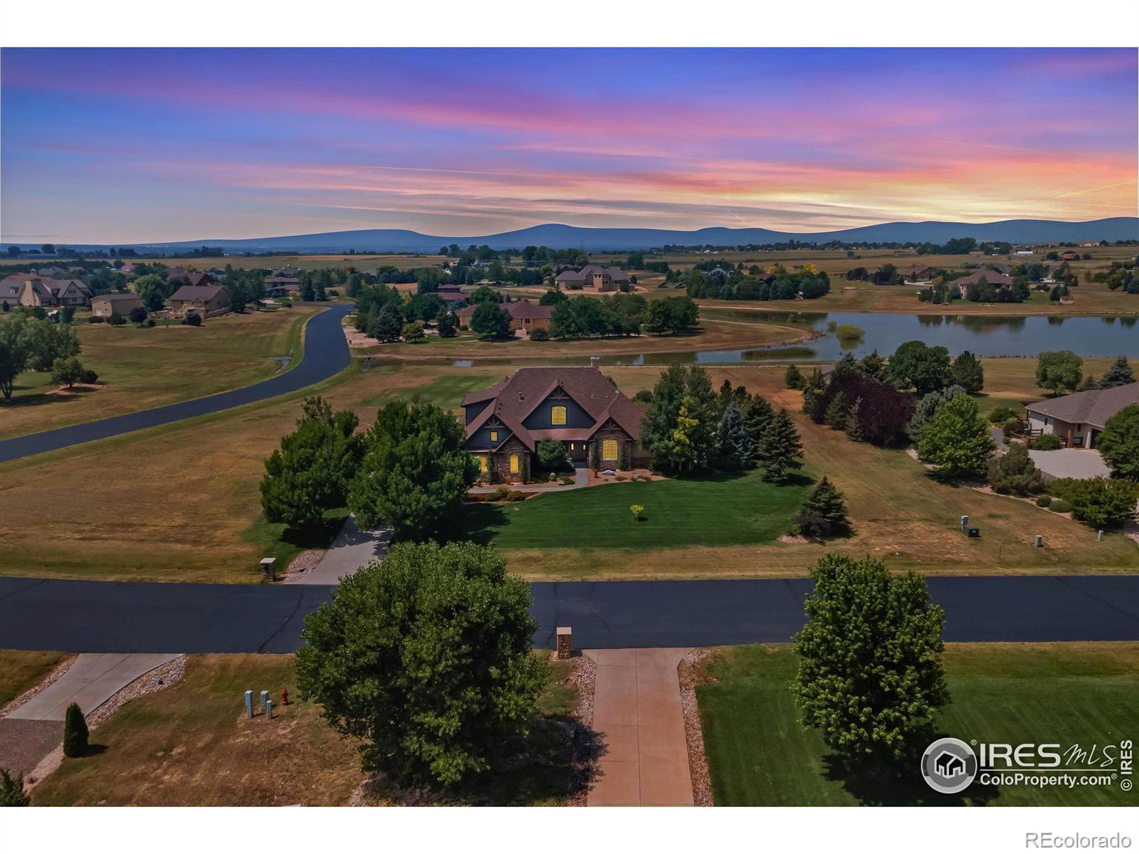 Just Reduced - Don't Miss Out! Welcome to 37127 Soaring Eagle Circle in Severance, Colorado - a stunning custom home nestled on 2.03 acres in the prestigious Soaring Eagle Ranch. This 6,200 sq ft estate boasts 7 bedrooms, 6 bathrooms, and a newly painted interior, new kitchen appliances, 2 water heaters, and on a large corner lot that has potential for an outbuilding with ARC approval. The main level features two spacious suites, including a luxurious primary suite with a sitting area, patio access, a spa-inspired 5-piece bath, and walk-in closet. Throughout the home, you'll find exquisite custom wood beams in the living room, primary bedroom, along with high-end Tharp kitchen cabinetry and knotty alder wood finishes. The gourmet kitchen and lower-level second kitchen offer granite countertops and upscale touches, perfect for entertaining or multi-generational living. Vaulted ceilings, hand-troweled walls, and a lofted office add sophistication, while the expansive basement includes a wet bar, rec room/exercise room, and built-ins. Step outside to enjoy breathtaking mountain views, sunsets, open space, and a private lake/pond - all from the comfort of your west-facing patio and custom stone fire pit. With dual HVAC, a whole-house humidifier, French drains, and meticulous maintenance, this home offers Colorado luxury living at its finest.