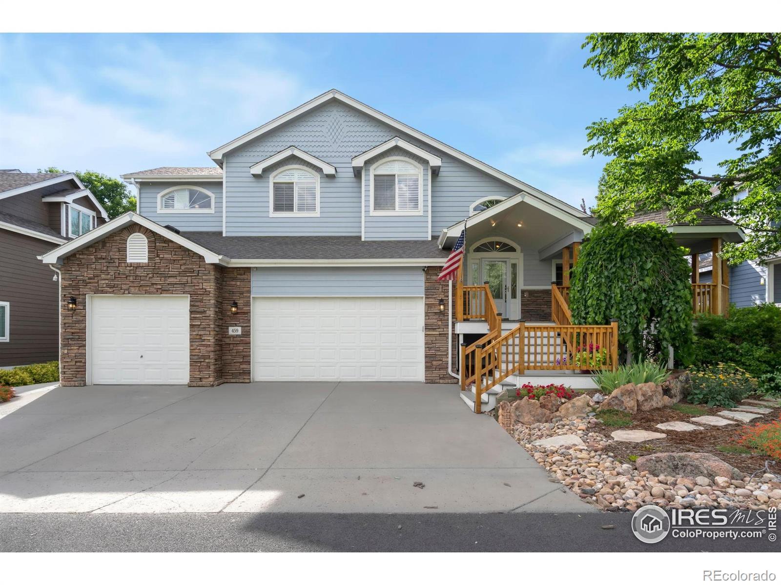 Welcome to 459 Cape Dory Drive, a beautiful home directly across from Boedecker Lake, offering stunning water views, lake access, and the peaceful lifestyle of the sought-after Mariana Cove neighborhood. This quiet, charming community in west Loveland offers easy access to walking trails, Boedecker Lake, and is just minutes from Mariana Butte Golf Course. A large covered front porch welcomes you with breathtaking views of the lake-perfect for relaxing or entertaining. Inside, you'll find a classic, well-defined layout filled with natural light and wood flooring throughout the main level. The main level features a bright living room with soaring ceilings, a warm and inviting family room with a cozy fireplace, and a well-appointed kitchen with a sunny breakfast nook, perfect for casual dining and everyday gatherings. A separate dining room, convenient laundry room, and a half bathroom complete the main floor. Step out from the breakfast nook to a covered back deck overlooking the backyard, which flows into a spacious concrete patio-ideal for outdoor living and entertaining. Upstairs, the primary suite offers a peaceful retreat with a 5-piece en-suite bathroom and a generous walk-in closet. Three additional bedrooms and a full bathroom provide ample space for family, guests, or office use. The finished basement adds incredible flexibility with a large media room featuring a dry bar, one bedroom, an additional bonus room or bedroom, and a 3/4 bathroom. Set in the desirable Mariana Cove neighborhood, this home combines comfort, lakefront beauty, and a fantastic location. Enjoy peaceful surroundings, direct access to Boedecker Lake and trails, and close proximity to one of Loveland's most beautiful golf courses.