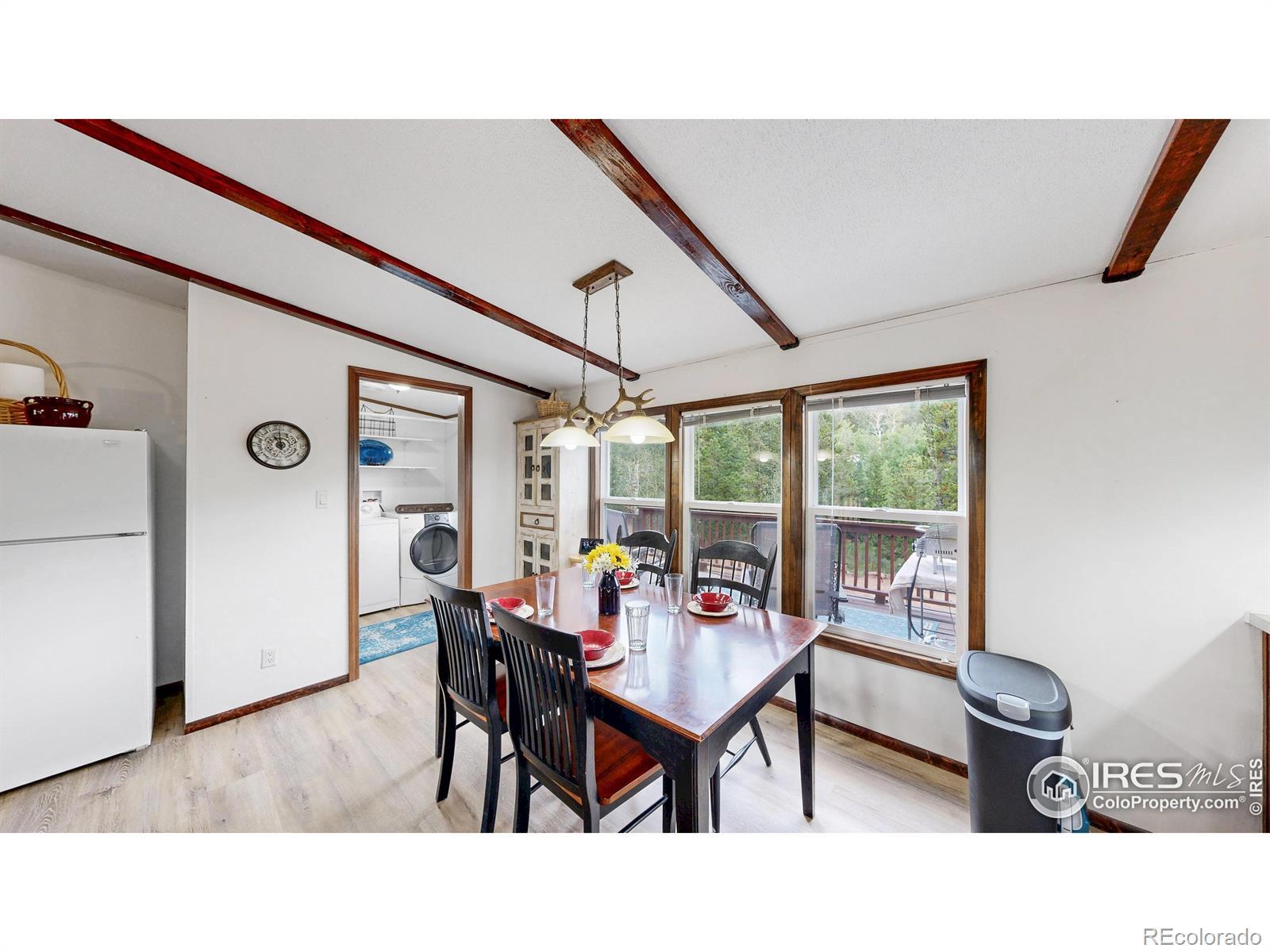 Welcome to this beautifully maintained 3-bedroom, 2-bath mountain home nested on a spacious 0.74-acre lot. This turnkey property features all the furniture, linens & fully equipped kitchen. Great room features a designer wood wall, new luxury plank vinyl flooring, soaring vaulted ceilings w/striking faux beams, & electric fireplace creating a warm & inviting atmosphere. The large kitchen has ample cabinets & laminate counterspace w/all appliances included, perfect for hosting or everyday living. Primary bedroom is separate from the other two bedrooms, has a feature wall, a full bath attached and a large walk-in closet. Enjoy your morning coffee on your back deck w/surrounding aspen trees. Property is serviced by Crystal Lakes Water & Sewer Assoc. for an additional fee w/water delivery to two-350-gallon cisterns installed to make this a year-round retreat. New exterior paint/caulking in 2023. New pex piping throughout home installed 2020. Whether you're seeking a full-time residence or a weekend escape, this home offers the perfect blend of comfort, style, and scenic mountain living.