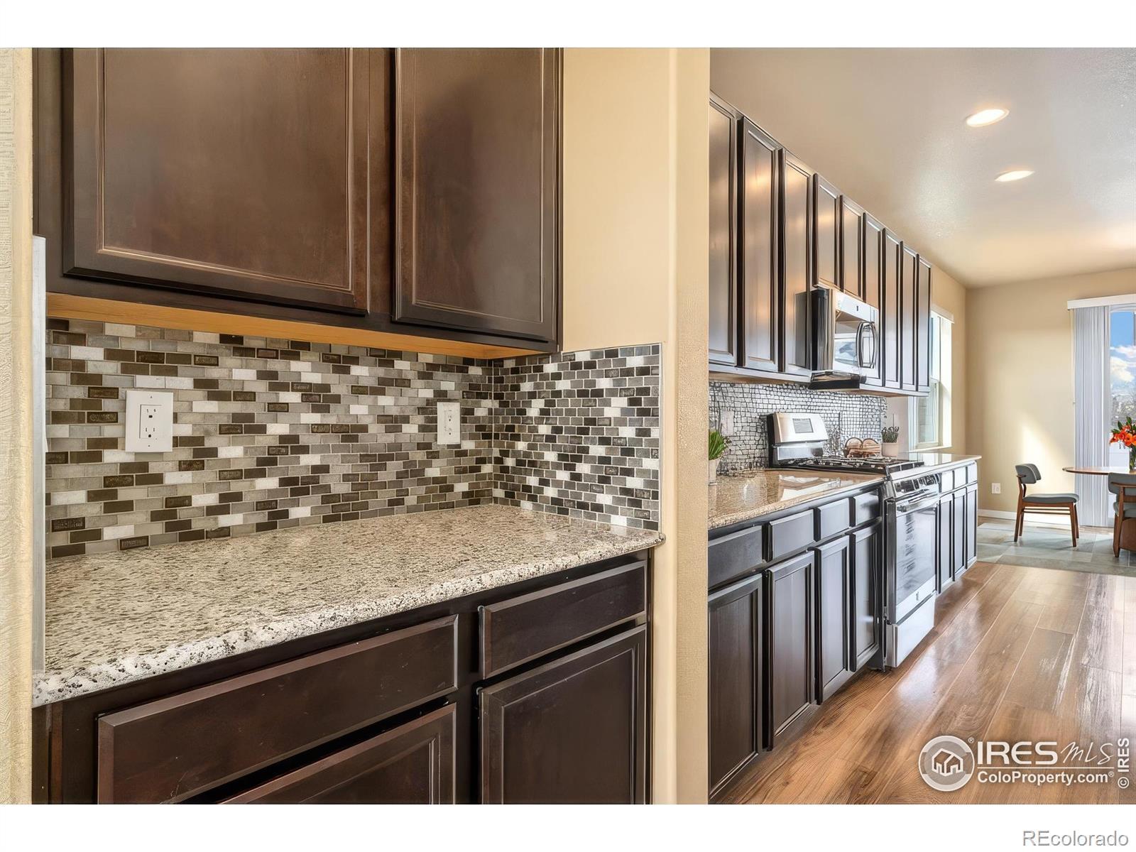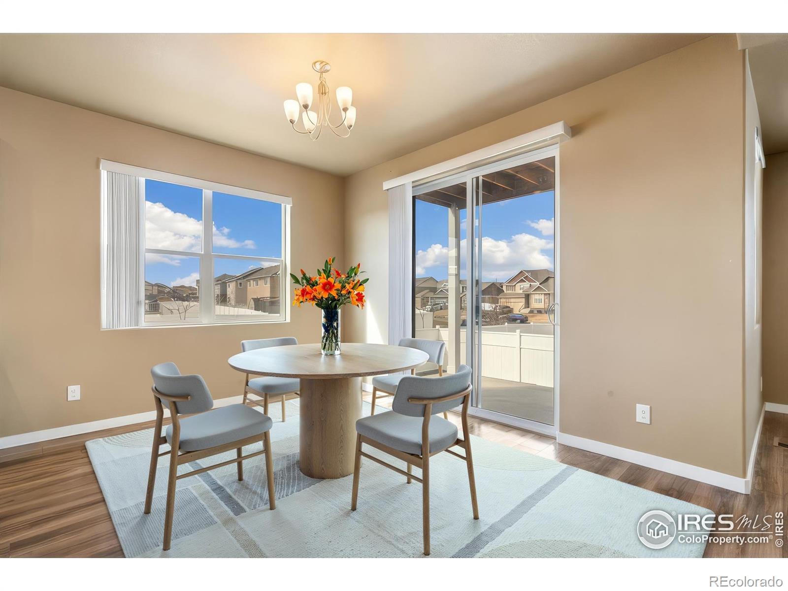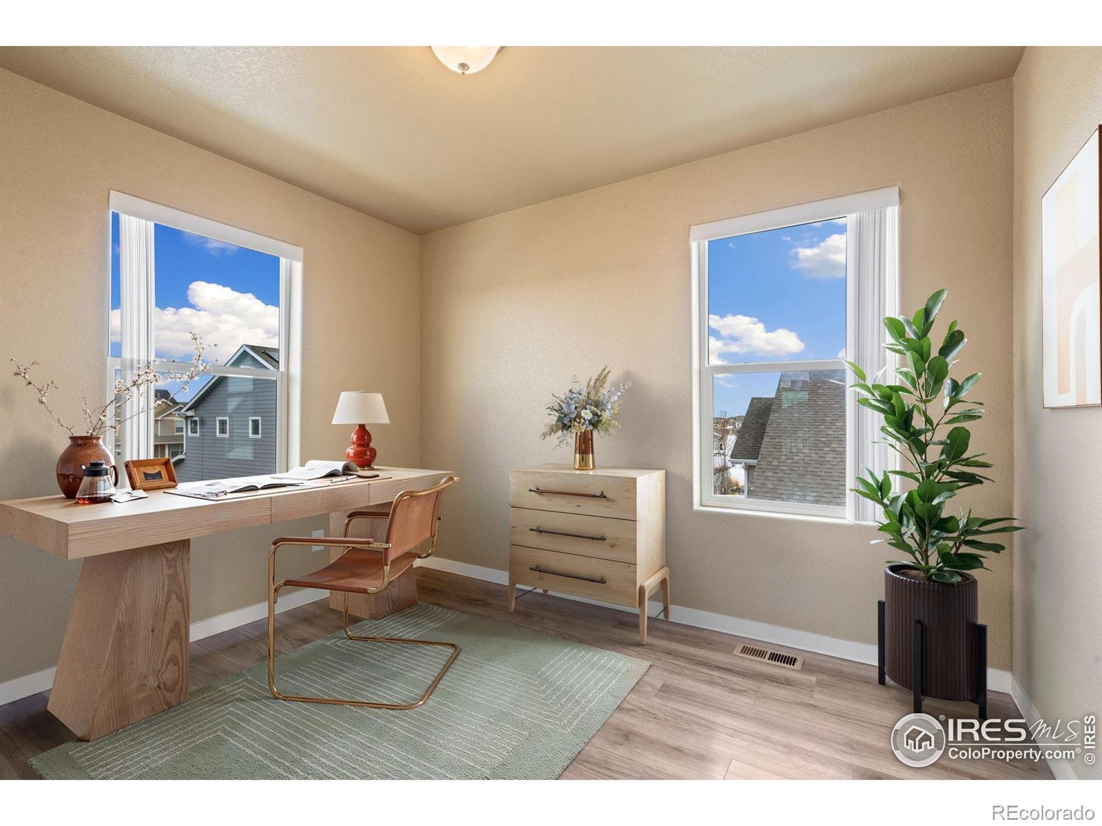 Built by quality home builder Horizon View Homes. PRICED TO SELL QUICKLY! A Stunning Corner - Lot Home with Mountain Views and Luxurious Features. A meticulously designed two-story home perfectly positioned on a coveted corner lot, offering open space views to the front and just steps from the neighborhood park. This is easily one of the most desirable locations in the community! Step inside to discover a spacious, thoughtfully crafted layout with LVP flooring throughout the whole home. The beautiful eat-in kitchen features a large island with seating, sleek stainless-steel appliances with a gas stove, and low-maintenance granite countertops - ideal for both everyday living and entertaining. The living room shines with its elegant coffered ceiling, adding a touch of classic luxury. Conveniently located off the garage entry is a built-in seating area, perfect for a stylish drop zone. The formal dining room provides a welcoming space for hosting special gatherings. Upstairs, you'll find three generously sized secondary bedrooms - perfect for guests, family, or a home office setup. ALL secondary bedrooms have a walk-in closet. The true gem is the primary suite, offering ample space, a private owner's retreat/sitting room (currently shown as an office but full of possibilities), and direct access to a west-facing private deck - the perfect spot to unwind and take in the stunning sunset mountain views. This home offers an unbeatable location, just moments from NorthGate Village and King Soopers Marketplace for all your shopping needs. The community is surrounded by gorgeous walking/biking trails for peaceful enjoyment. Enjoy easy access to Highway 34 and I-25 interchange - perfect for commuting or weekend getaways. Nestled within one of northern Colorado's top-rated school districts, making it an ideal place to plant roots and raise a family. Don't miss the chance to own this exceptional home where convenience meets community in an unbeatable location. Come see it today!