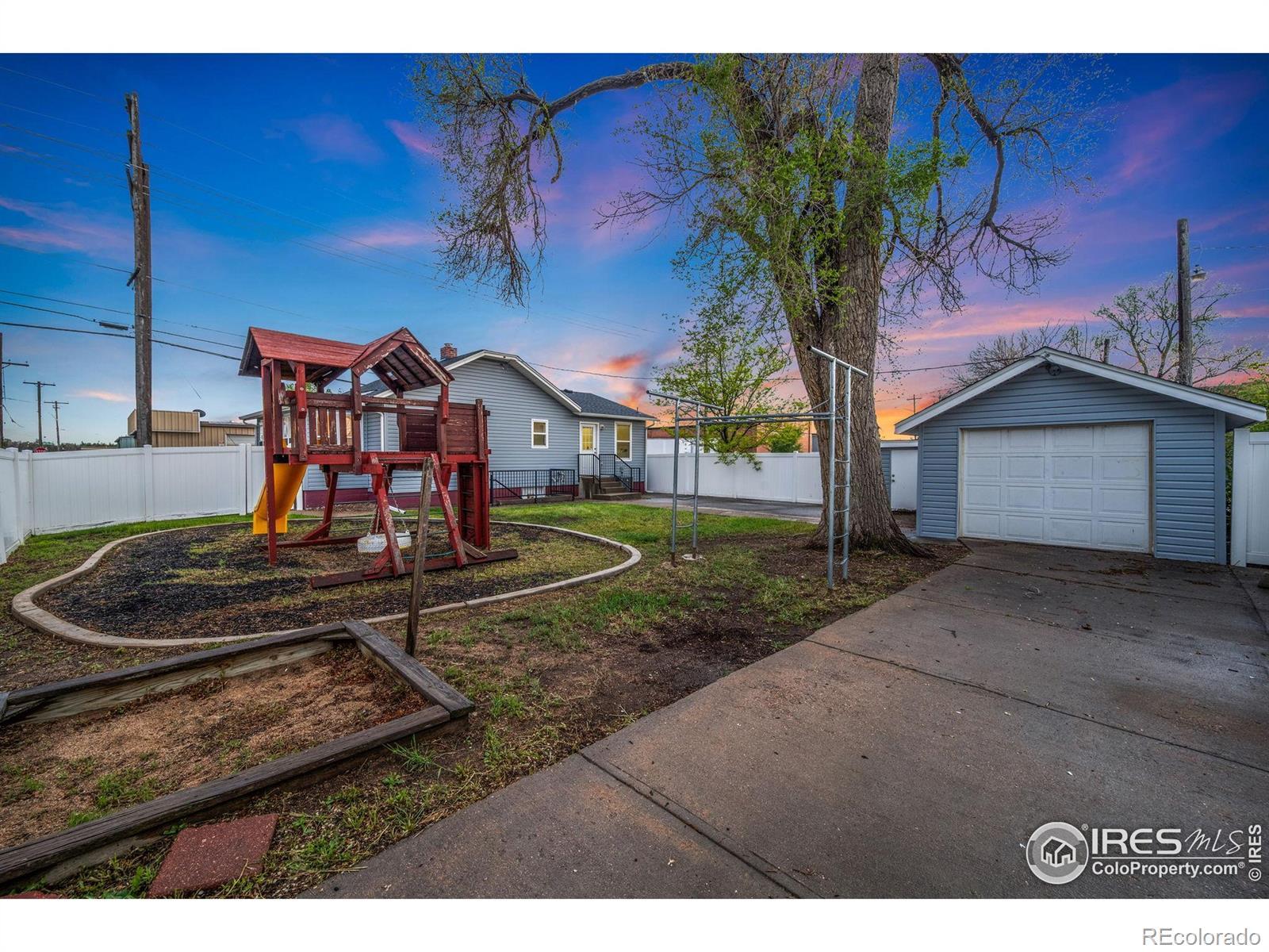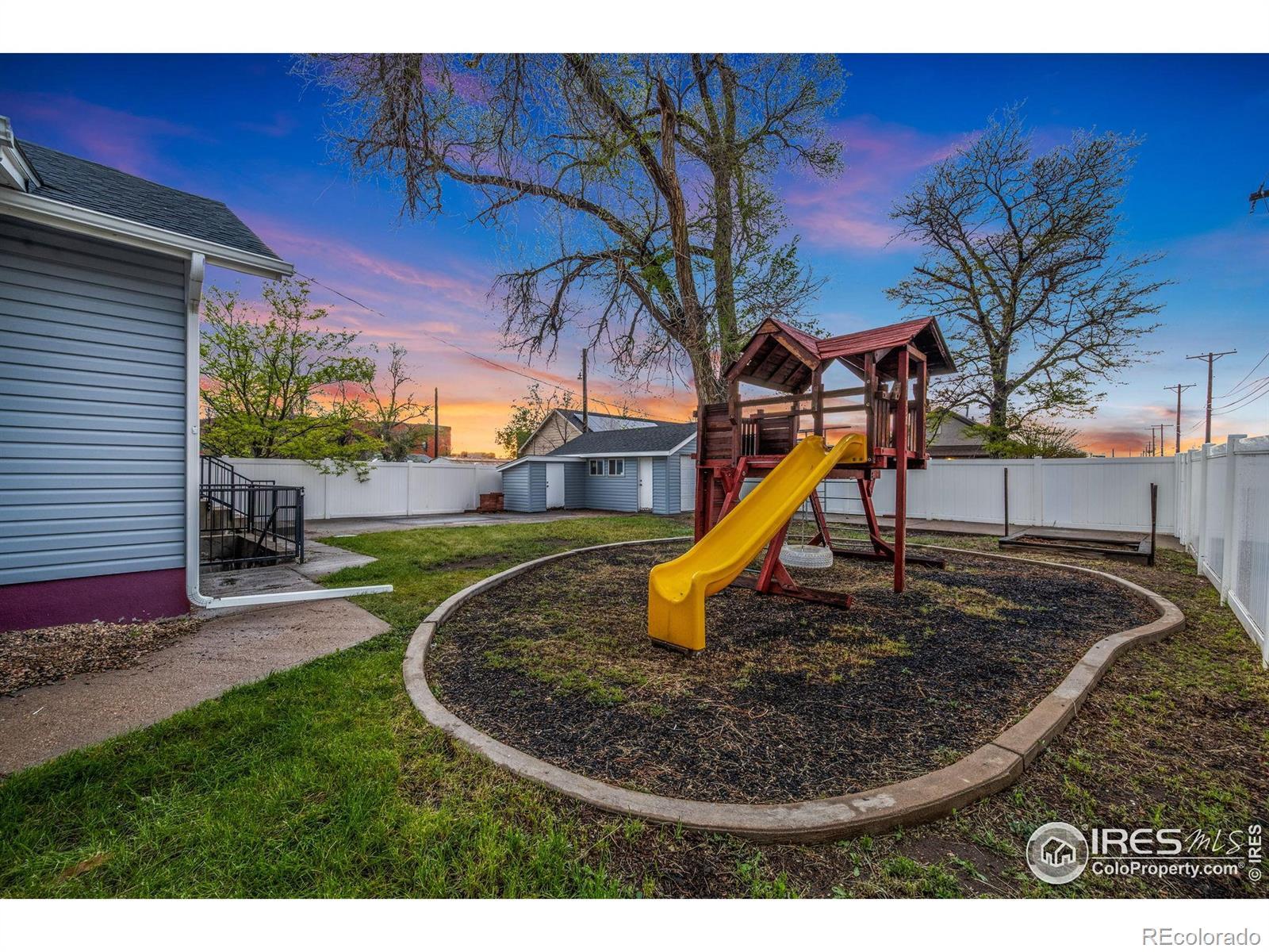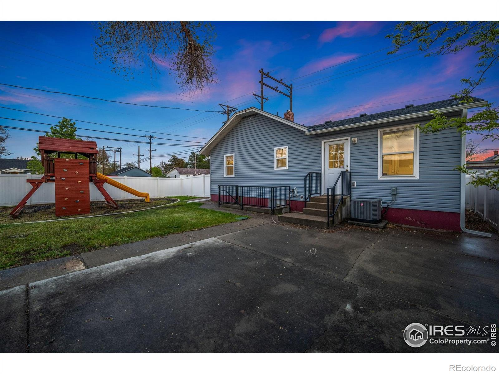 This central Greeley, ranch style home is charming. It features, 3 bedrooms, 2 bathrooms, and a detached garage and shed. It has NEW exterior paint, NEW siding and a NEW roof. The backyard is fully fenced for great privacy. And the playset is included. This home has A/C. And don't miss the covered front porch. This home is close to parks, schools and downtown Greeley shopping.