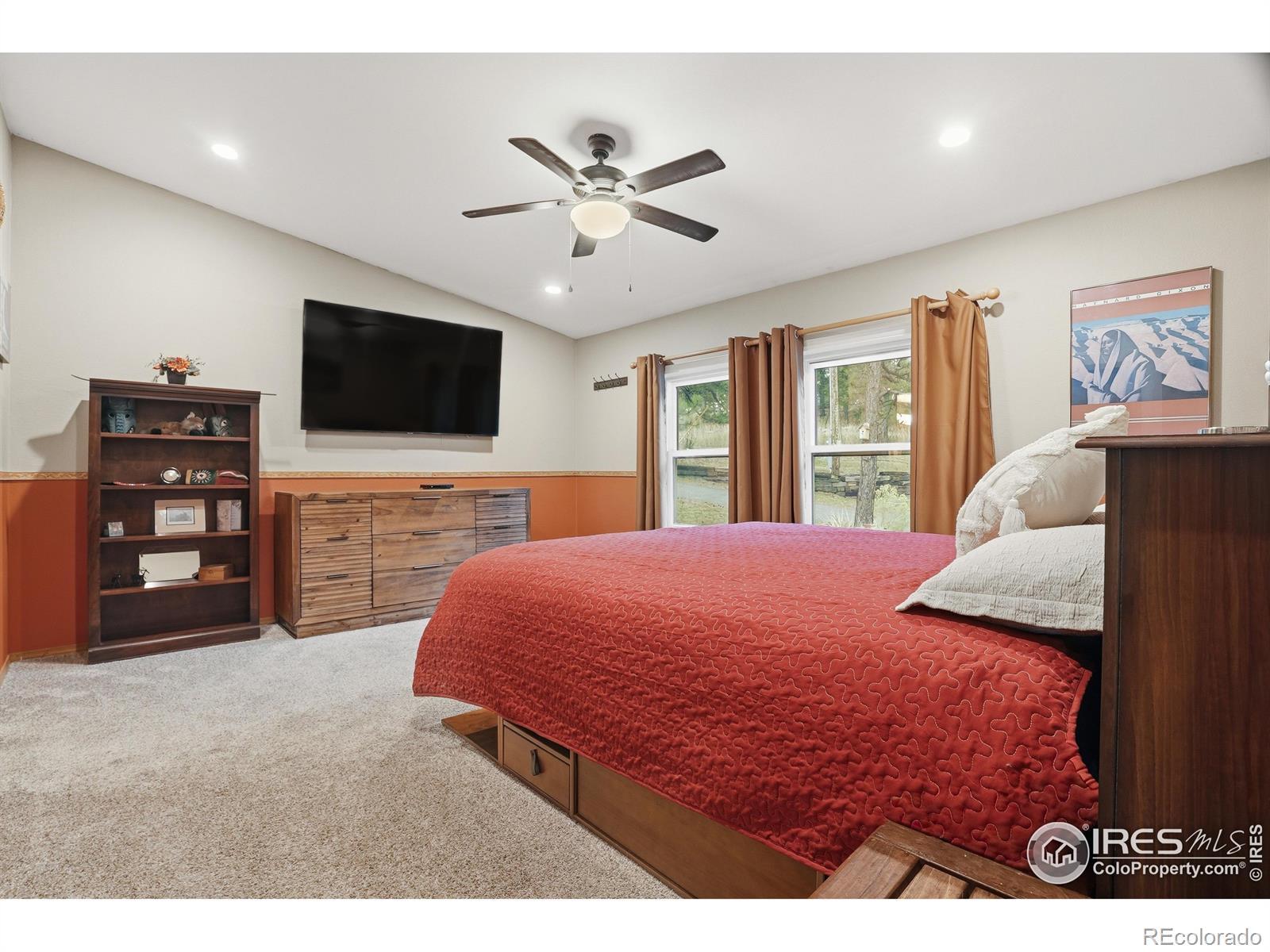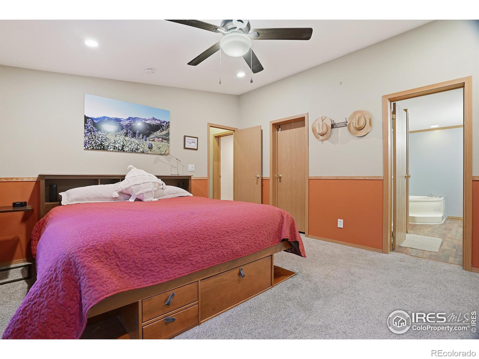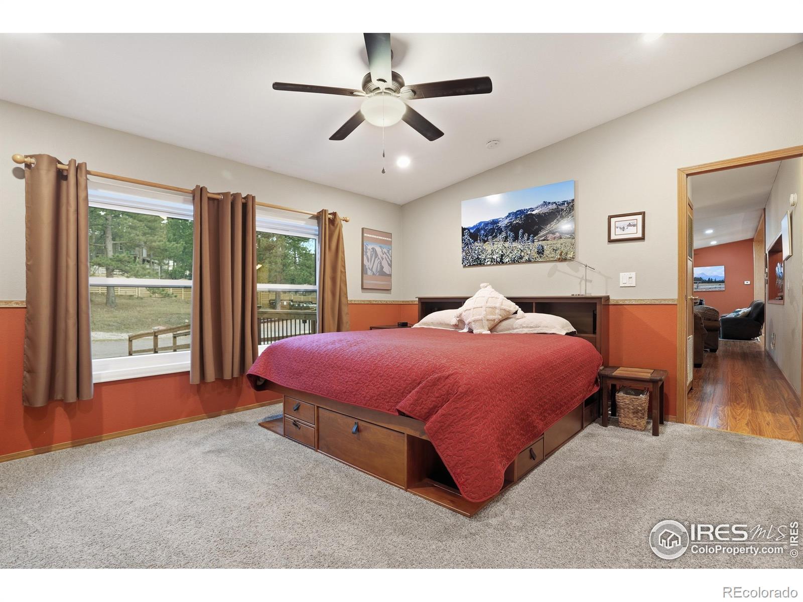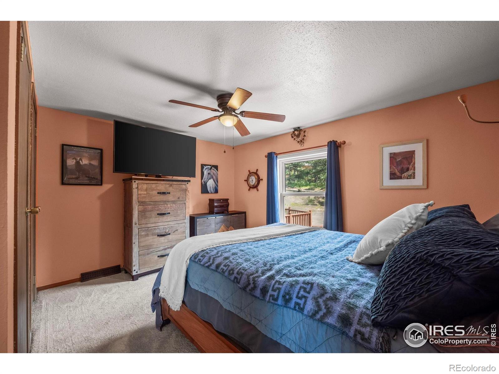 HUGE price improvement! Nestled in the popular North Carter Lake Community, walking distance the lake, you will find this large multi-generational home with a walk out basement! This ranch home has 3 LARGE and private primary suites (two with their own living rooms!) and 5 bathrooms! The 5+car heated garage/SHOP, includes a car lift; the tallest garage door is 12 ft. Bring all your toys! The mountain views are amazing! Many updates throughout- very well maintained- you can buy with confidence! You'll feel secluded yet only 15-20 minutes from Berthoud, Loveland and Longmont! Whole house generator, new windows, trees were just trimmed, new HVAC, newer roofs (House and Garage 2021), very efficient pellet stove and so much more. No HOA or metro tax. Check with the county about short-term rental possibilities. Large 12X10 shed and 12X8 loafing shed in the back. This is a must see!
