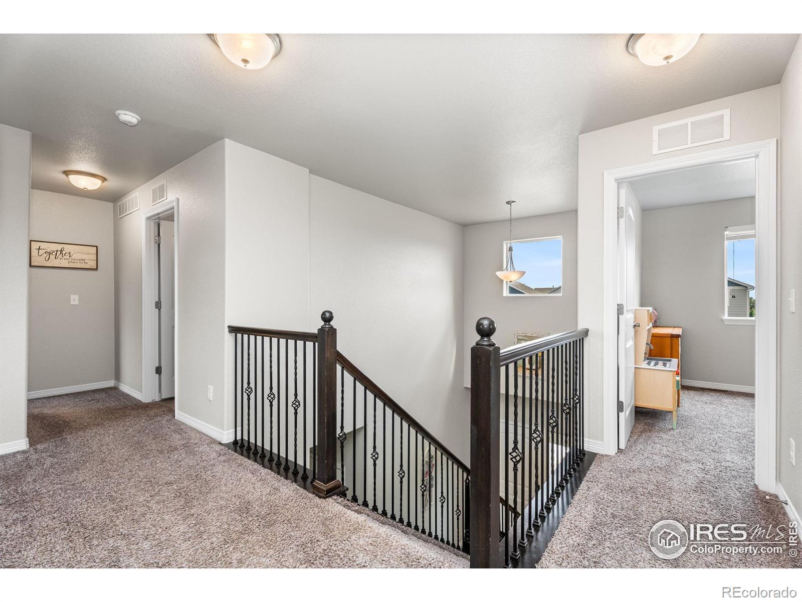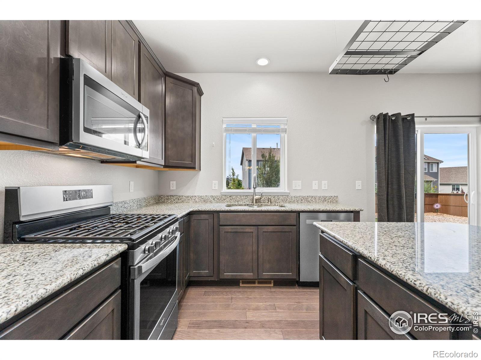 An exceptional opportunity to own a beautifully appointed home situated on a great corner lot in Northwest Loveland. With no neighbors to the West, this property offers rare privacy, great mountain views, and unrivaled access to beloved amenities. Just moments from sought-after Mahaffey Park, as well as neighborhood expansive green spaces, playgrounds, a dog park, and walking and biking paths. Nearby shopping, dining, and schools add everyday convenience.Inside, soaring ceilings and open living spaces create a warm and inviting environment. Rich wood flooring extends through the main living areas, while granite countertops lend style and durability throughout the kitchen and all bathrooms. The kitchen is a chef's delight, featuring soft-close cabinetry, stainless steel appliances, a gas cooktop, ample prep space, and a large island-perfect for entertaining or casual family meals. The flow from the kitchen to both the separate dining and living room creates the perfect floorplan. Upstairs, a bright loft offers flexible space for a home office, play area, or cozy reading nook. The spacious primary suite is a true retreat, complete with a generous walk-in closet, and a luxurious 5-piece bath with dual vanities, a soaking tub, and separate shower. Two additional bedrooms and the loft provide room for guests, hobbies, or work-from-home flexibility. Outside, the fully fenced yard is designed for both relaxation and play. A concrete patio awaits summer barbecues and mountain sunsets, while automatic irrigation keeps lush turf thriving with minimal effort. From morning coffee to evening stargazing, the private yard amplifies the home's connection to Colorado's natural beauty. A South-facing driveway with a 3-car garage offers ample storage for vehicles, tools, and outdoor gear. With mountain views, neighborhood charm, and high-end finishes at every turn, this home truly checks every box.