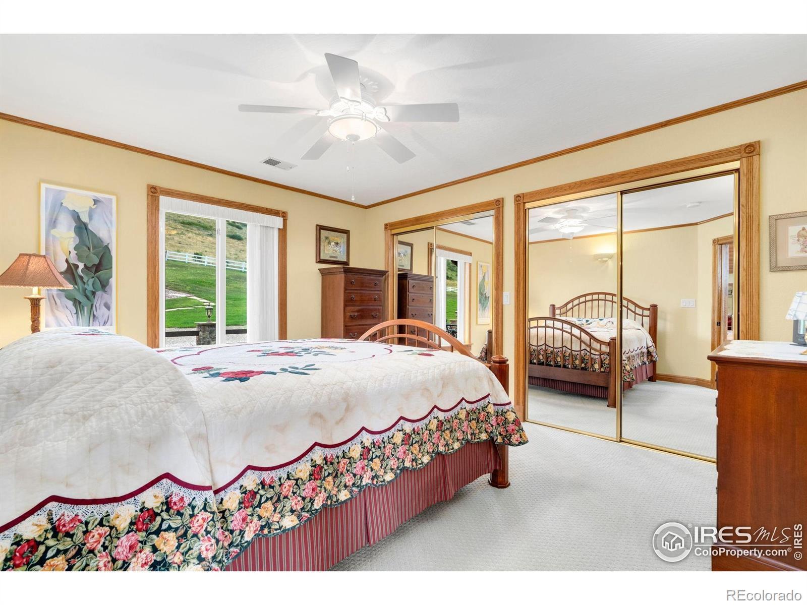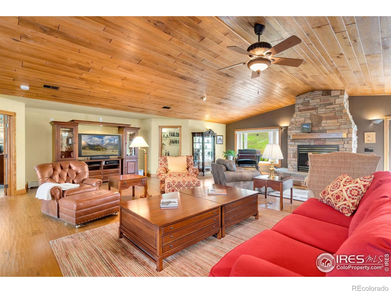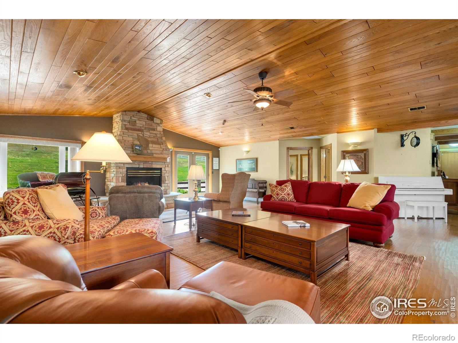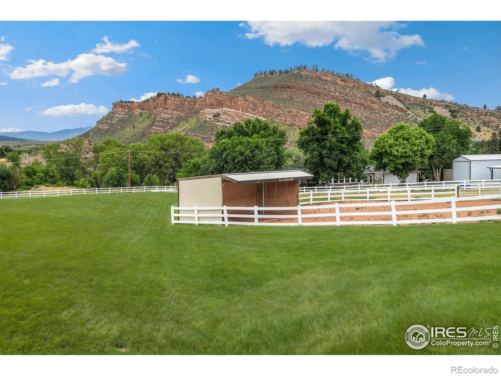 Discover your dream ranch home. Horse, animal enthusiast and serene nature retreat. Stunning large ranch home on nearly 9 acres close to Loveland and all amenities. Welcome to your personal sanctuary, where rustic elegance meets modern comfort! Ranch home with panoramic views offers a perfect blend of spacious living. Ideal for horse, animal lovers, hobby farm and nature enthusiasts alike. As you approach this impressive well maintained updated property you are greeted by a gated entrance, fully fenced property that opens to a lush pasture for horses and animals, complete with fully equipped barn, corral, tack room and loafing shed ensuring your animals have the best home possible. Step inside this stunning home and you will immediately appreciate the craftsmanship and thoughtful layout. The heart of the home features an open concept living area bathed in natural light, highlighted by an inviting fireplace that adds warmth and charm. Perfect for entertaining, the spacious great room seamlessly transitions to a gourmet kitchen, ample counter space, oversized island for casual meals and a dining room. Four generously sized bedrooms with two being primary suites. The two primary suites are designed for relaxation and views of the landscape, featuring ensuite bathrooms, walk-in closets, one features a cozy fireplace and water feature. Elevator access and exterior entrance to fully finished Rustic Western basement with a large non-conforming bedroom, ensuite bath, multi-purpose room and a bath. 2800 sq.ft. insulated shop/garage offers endless possibilities. Use as a workshop, garage or additional storage for all your toys and outdoor equipment. This exceptional property doesn't just offer a home; it invites you to embrace a lifestyle. Experience the magic of country living at its finest! Property has both a well for exterior watering and is on Little Thompson Water. Fire hydrant at entrance to the property. Don't miss the opportunity to make this property your own.