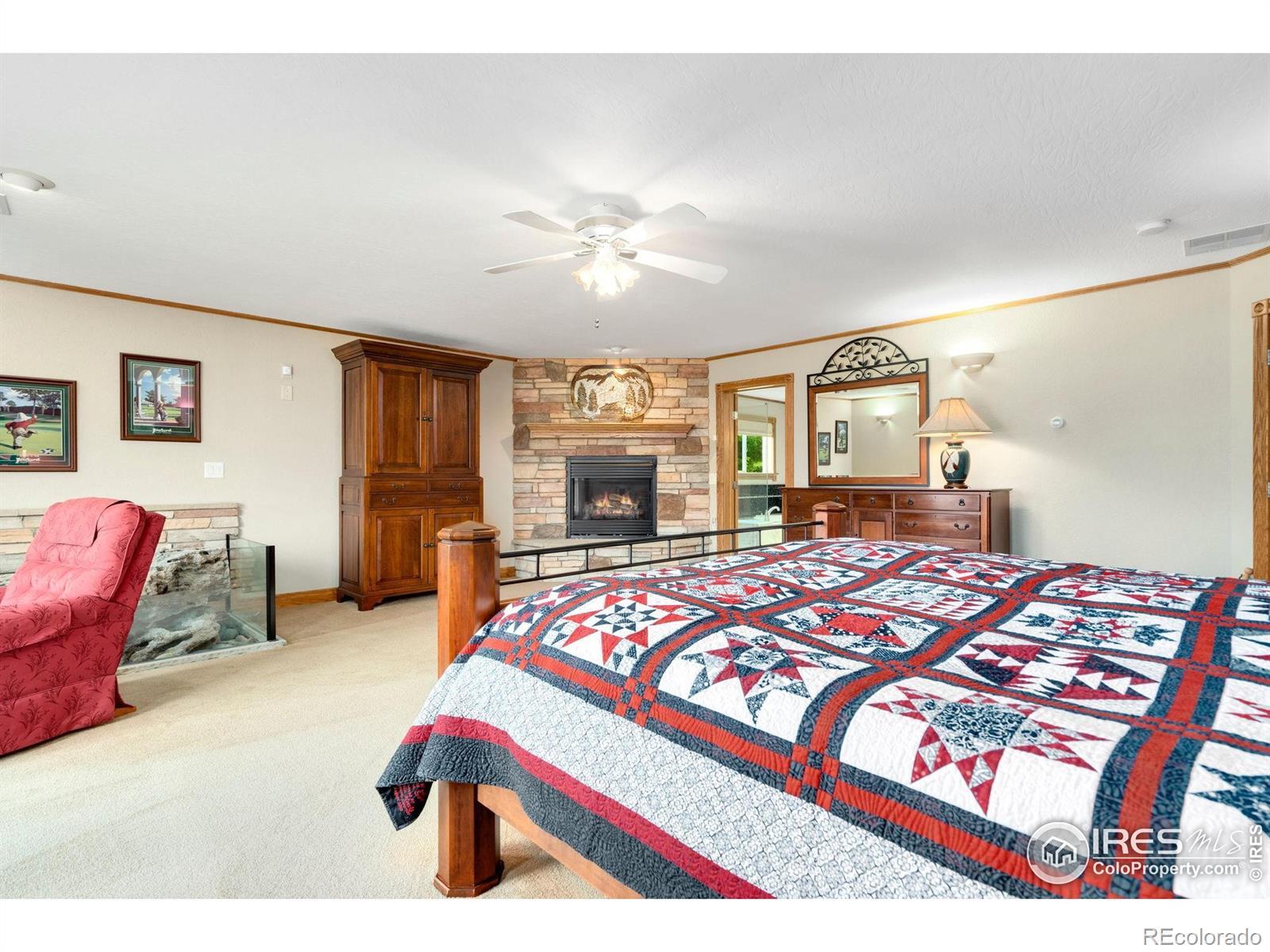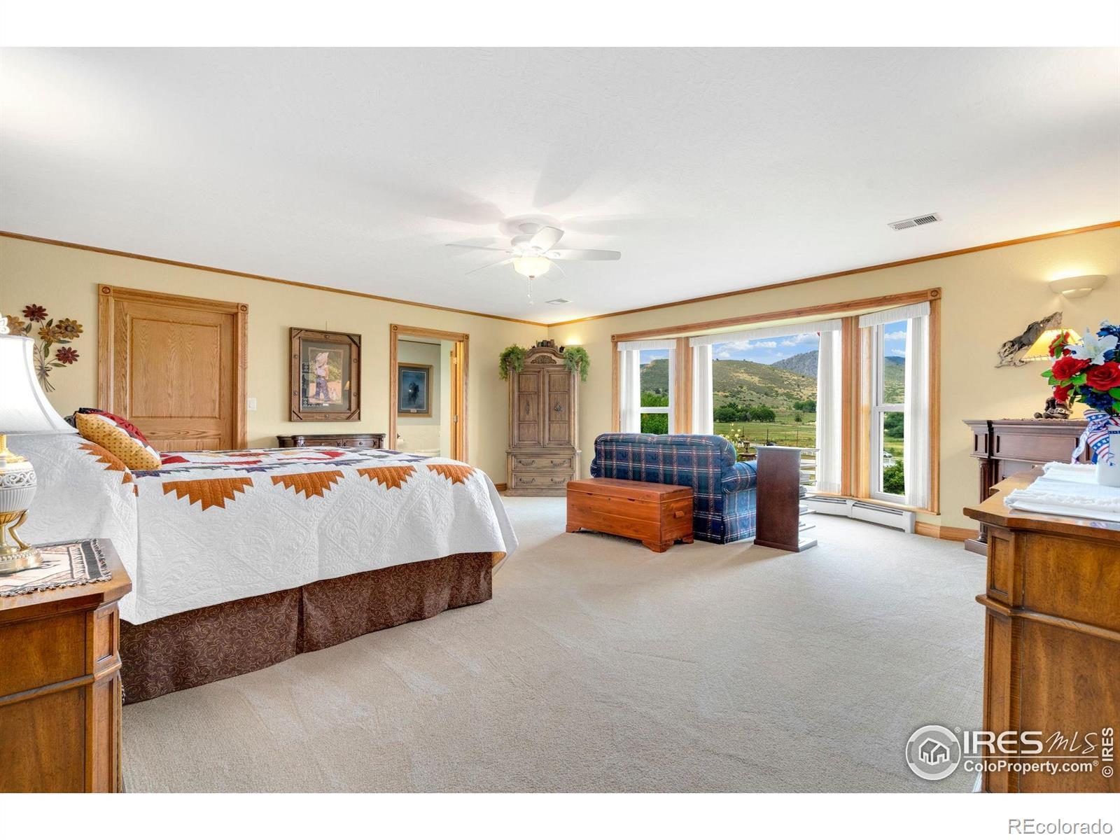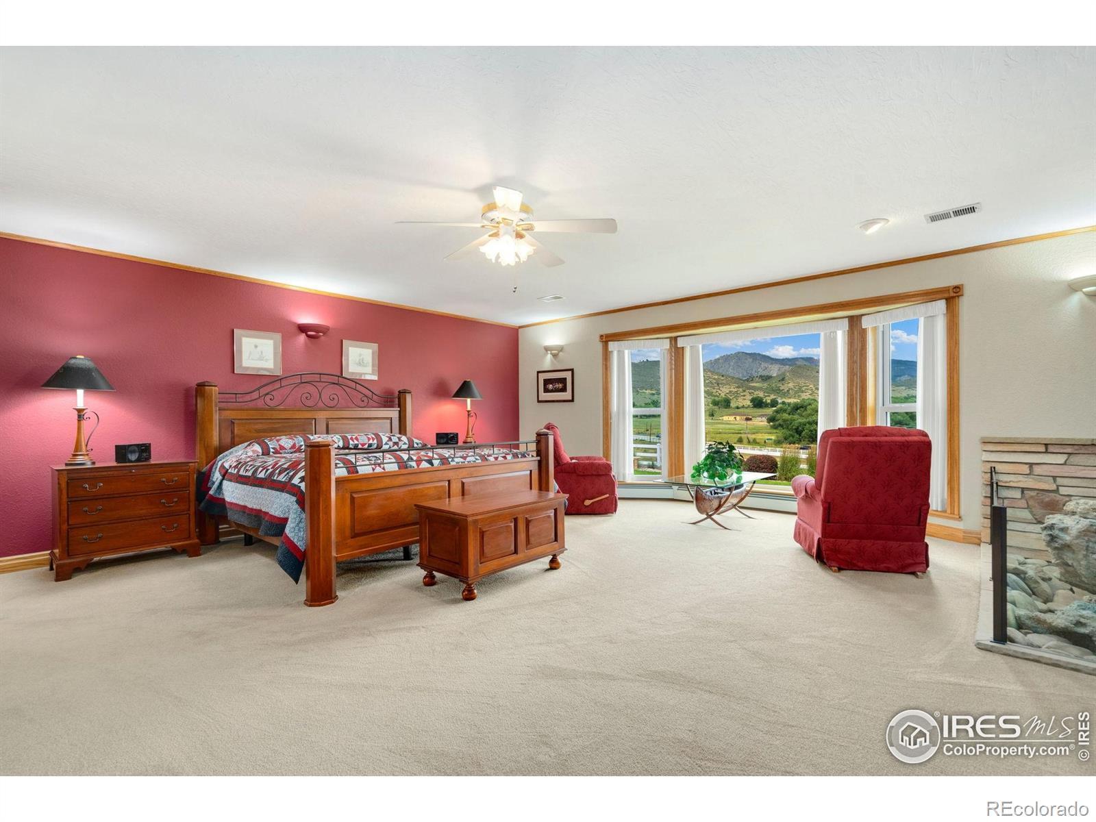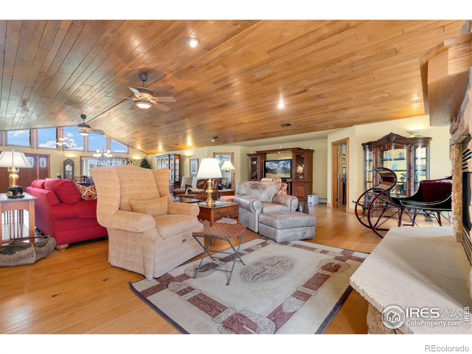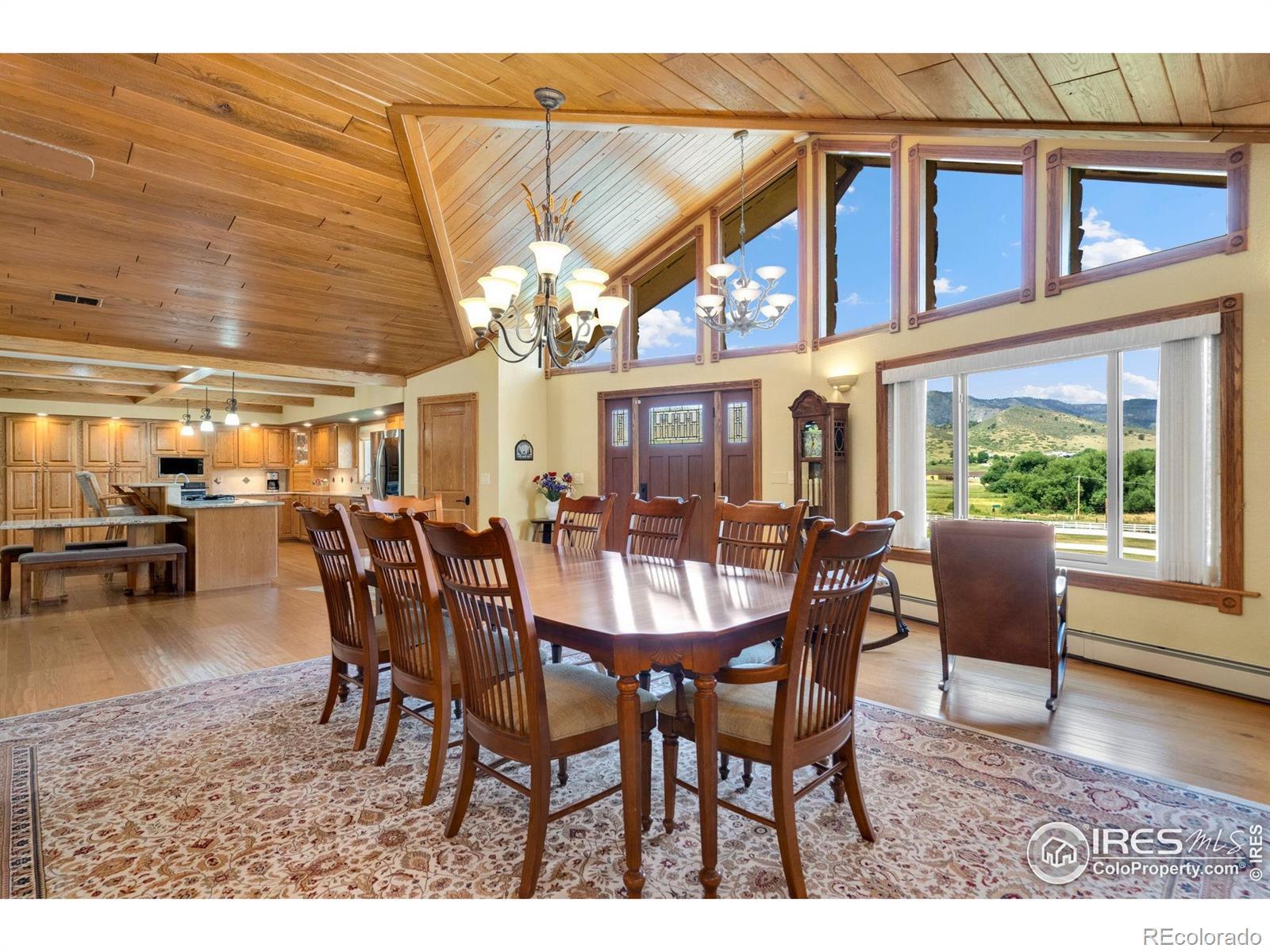 Discover your dream ranch home. Horse, animal enthusiast and serene nature retreat. Stunning large ranch home on nearly 9 acres close to Loveland and all amenities. Welcome to your personal sanctuary, where rustic elegance meets modern comfort! Ranch home with panoramic views offers a perfect blend of spacious living. Ideal for horse, animal lovers, hobby farm and nature enthusiasts alike. As you approach this impressive well maintained updated property you are greeted by a gated entrance, fully fenced property that opens to a lush pasture for horses and animals, complete with fully equipped barn, corral, tack room and loafing shed ensuring your animals have the best home possible. Step inside this stunning home and you will immediately appreciate the craftsmanship and thoughtful layout. The heart of the home features an open concept living area bathed in natural light, highlighted by an inviting fireplace that adds warmth and charm. Perfect for entertaining, the spacious great room seamlessly transitions to a gourmet kitchen, ample counter space, oversized island for casual meals and a dining room. Four generously sized bedrooms with two being primary suites. The two primary suites are designed for relaxation and views of the landscape, featuring ensuite bathrooms, walk-in closets, one features a cozy fireplace and water feature. Elevator access and exterior entrance to fully finished Rustic Western basement with a large non-conforming bedroom, ensuite bath, multi-purpose room and a bath. 2800 sq.ft. insulated shop/garage offers endless possibilities. Use as a workshop, garage or additional storage for all your toys and outdoor equipment. This exceptional property doesn't just offer a home; it invites you to embrace a lifestyle. Experience the magic of country living at its finest! Property has both a well for exterior watering and is on Little Thompson Water. Fire hydrant at entrance to the property. Don't miss the opportunity to make this property your own.