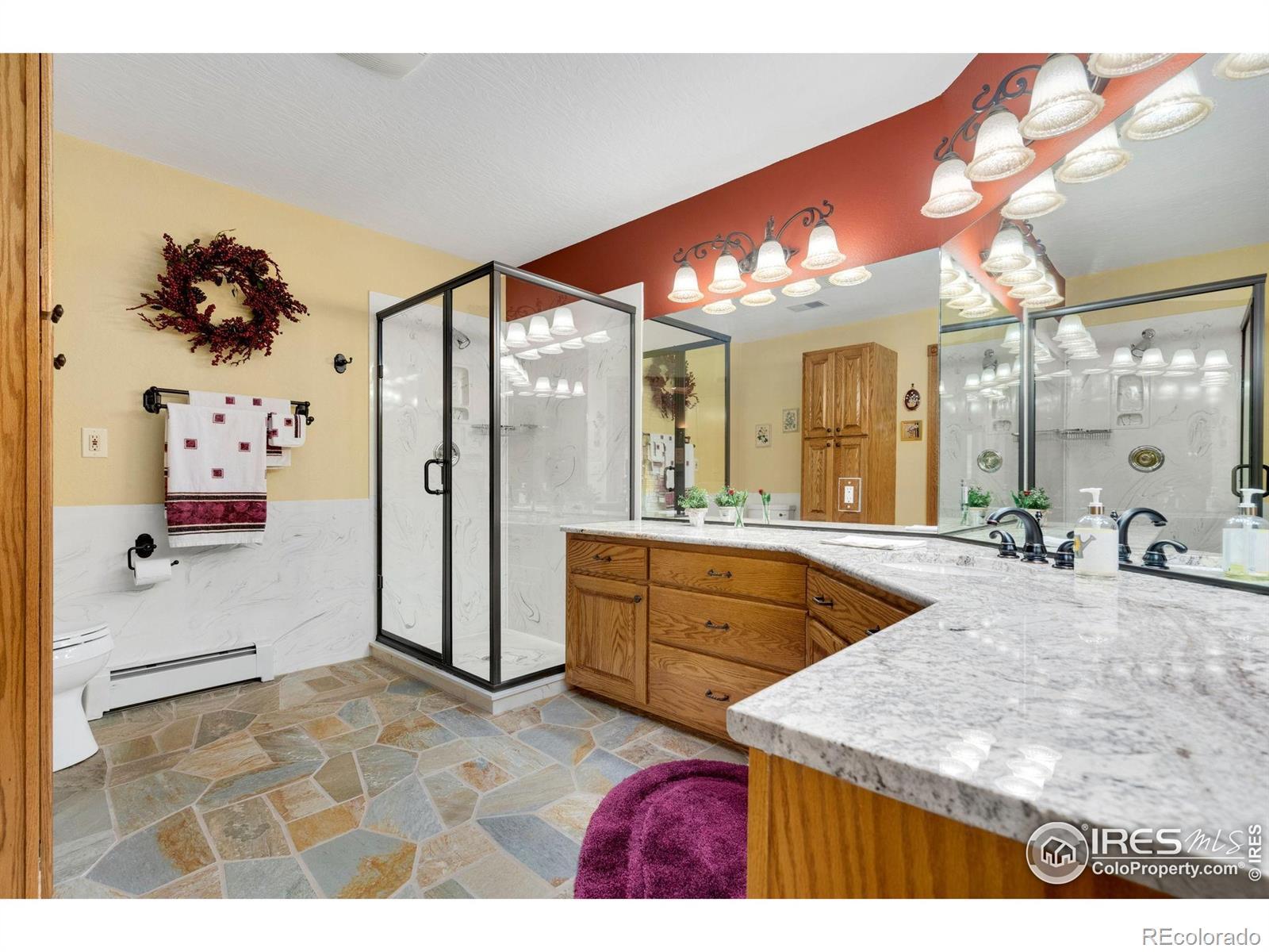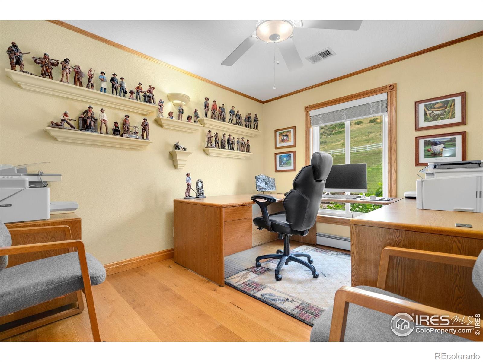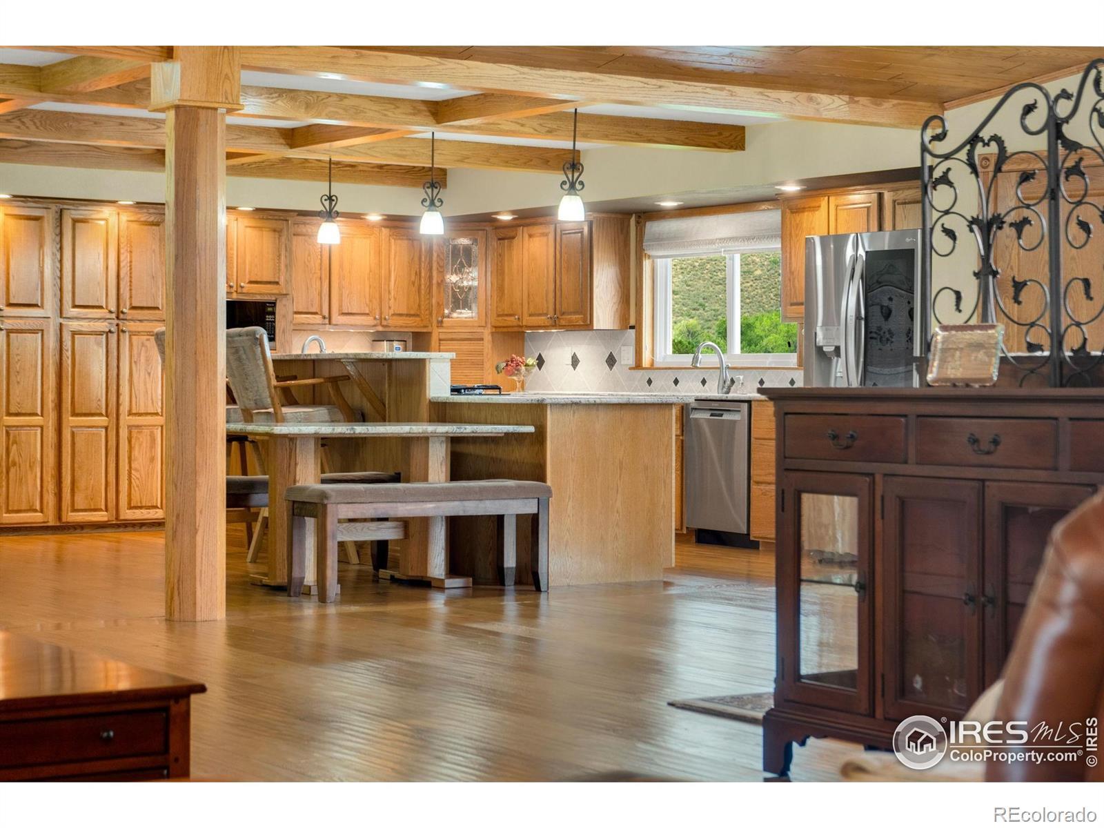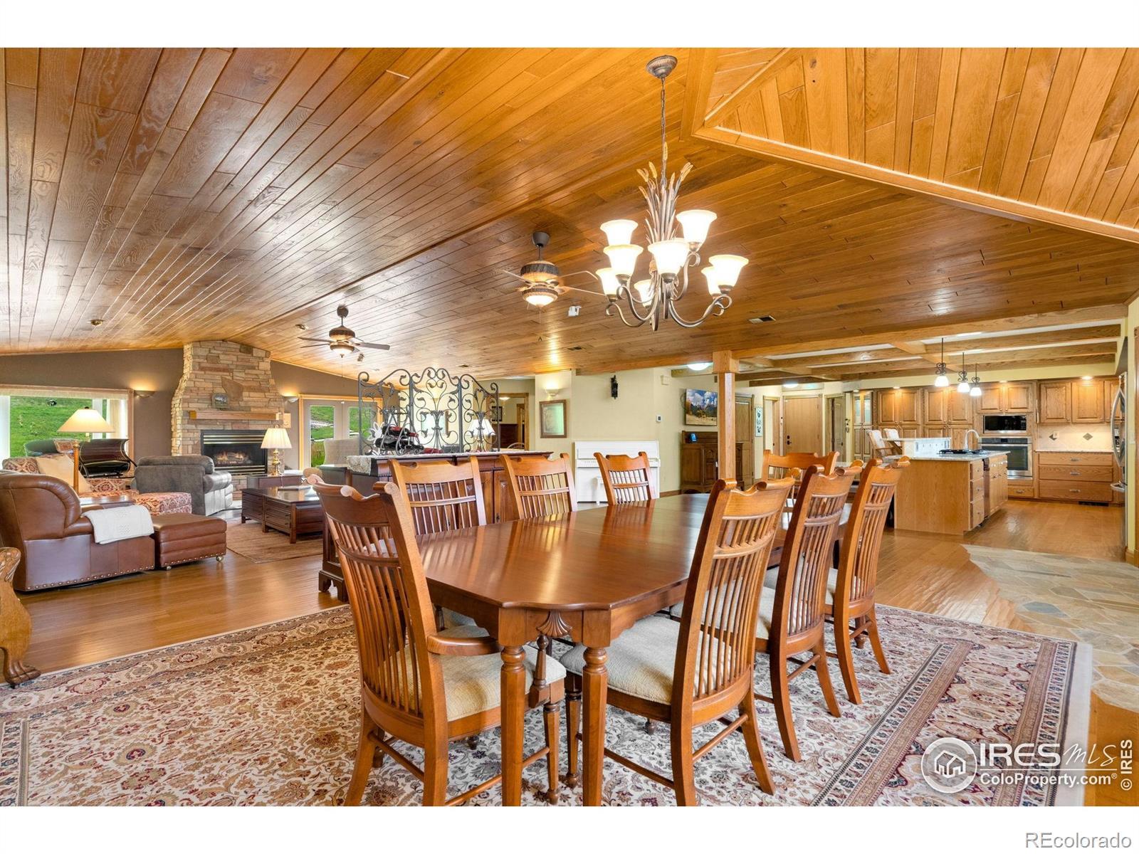 Discover your dream ranch home. Horse, animal enthusiast and serene nature retreat. Stunning large ranch home on nearly 9 acres close to Loveland and all amenities. Welcome to your personal sanctuary, where rustic elegance meets modern comfort! Ranch home with panoramic views offers a perfect blend of spacious living. Ideal for horse, animal lovers, hobby farm and nature enthusiasts alike. As you approach this impressive well maintained updated property you are greeted by a gated entrance, fully fenced property that opens to a lush pasture for horses and animals, complete with fully equipped barn, corral, tack room and loafing shed ensuring your animals have the best home possible. Step inside this stunning home and you will immediately appreciate the craftsmanship and thoughtful layout. The heart of the home features an open concept living area bathed in natural light, highlighted by an inviting fireplace that adds warmth and charm. Perfect for entertaining, the spacious great room seamlessly transitions to a gourmet kitchen, ample counter space, oversized island for casual meals and a dining room. Four generously sized bedrooms with two being primary suites. The two primary suites are designed for relaxation and views of the landscape, featuring ensuite bathrooms, walk-in closets, one features a cozy fireplace and water feature. Elevator access and exterior entrance to fully finished Rustic Western basement with a large non-conforming bedroom, ensuite bath, multi-purpose room and a bath. 2800 sq.ft. insulated shop/garage offers endless possibilities. Use as a workshop, garage or additional storage for all your toys and outdoor equipment. This exceptional property doesn't just offer a home; it invites you to embrace a lifestyle. Experience the magic of country living at its finest! Property has both a well for exterior watering and is on Little Thompson Water. Fire hydrant at entrance to the property. Don't miss the opportunity to make this property your own.