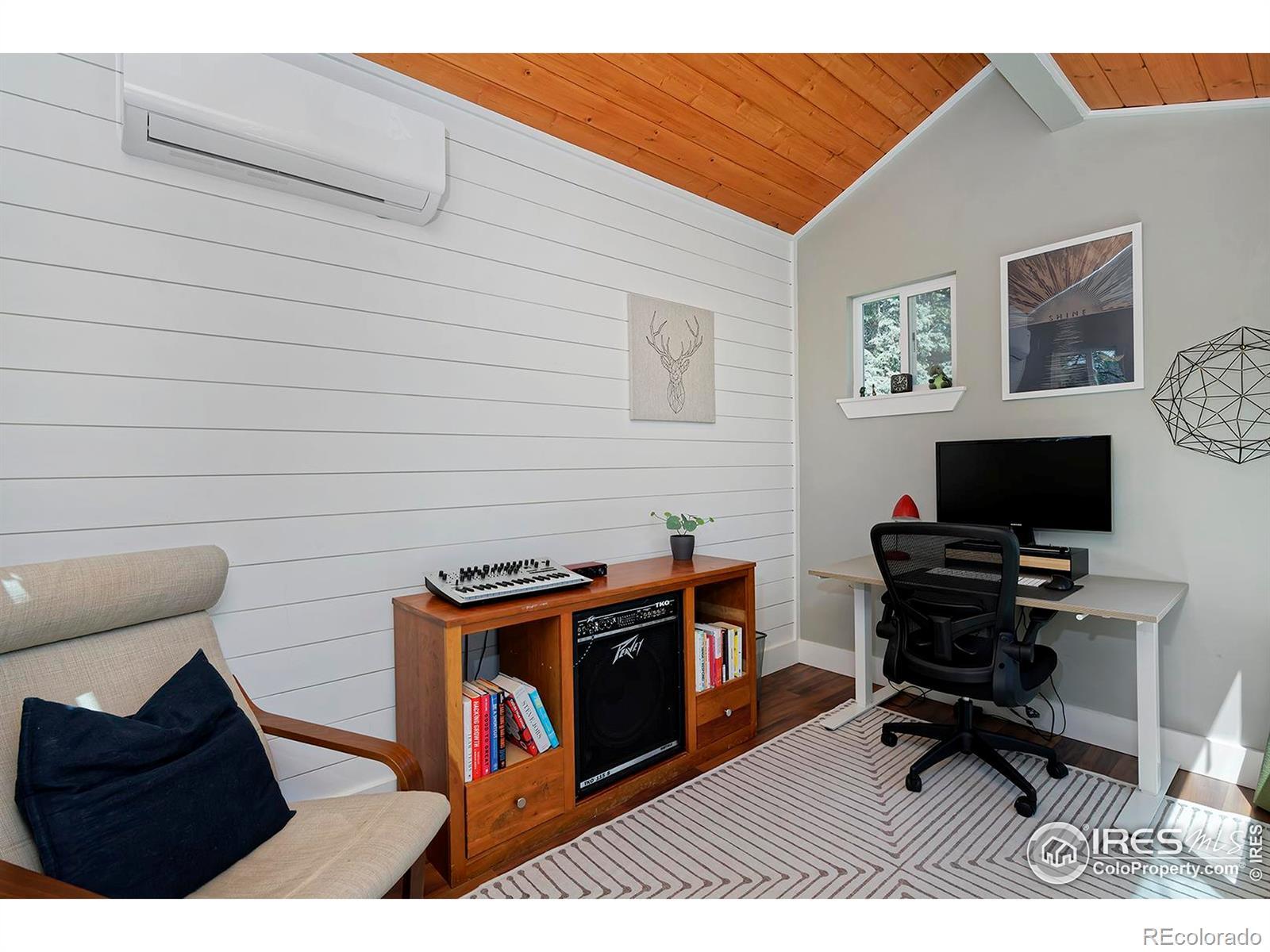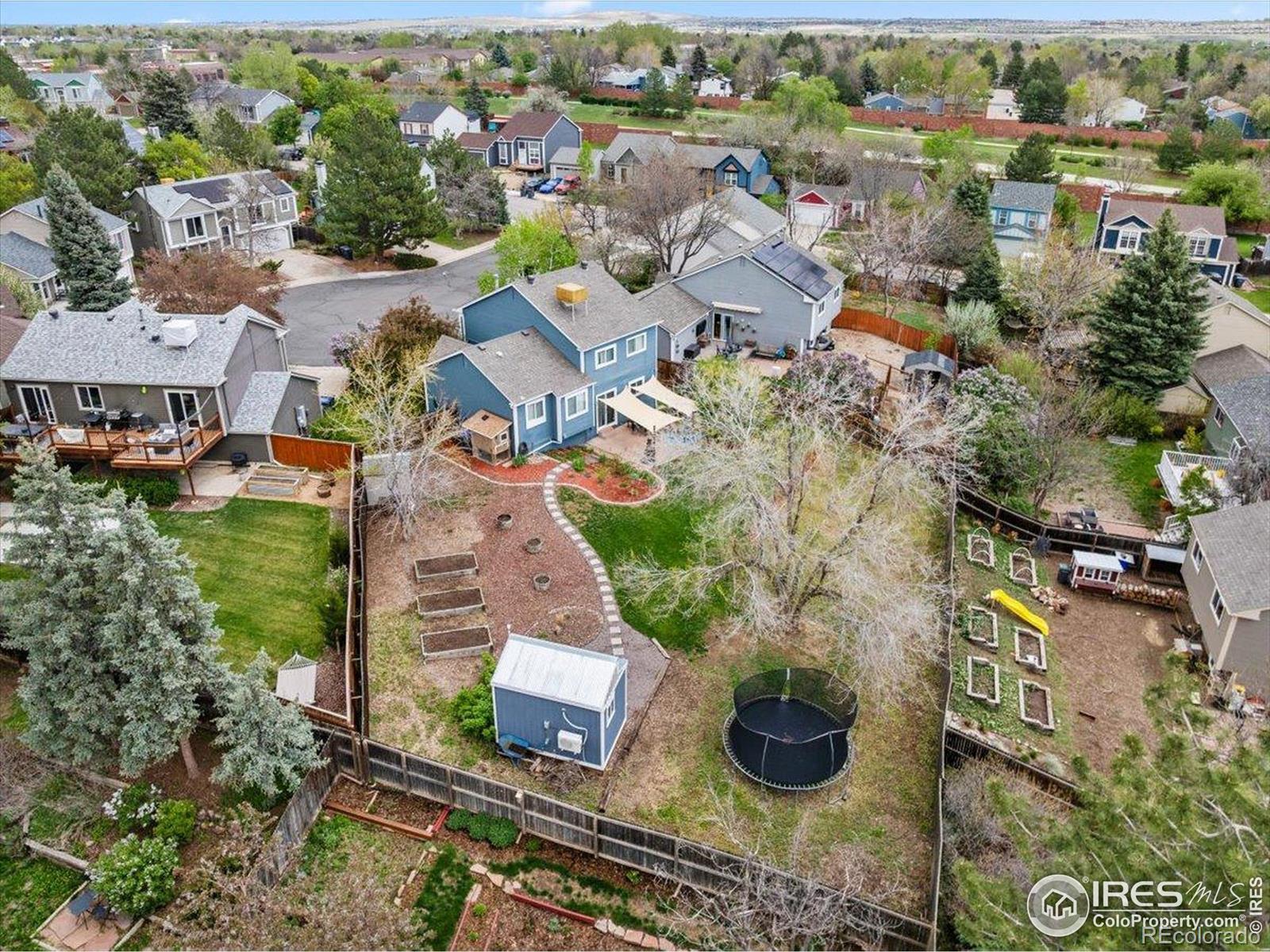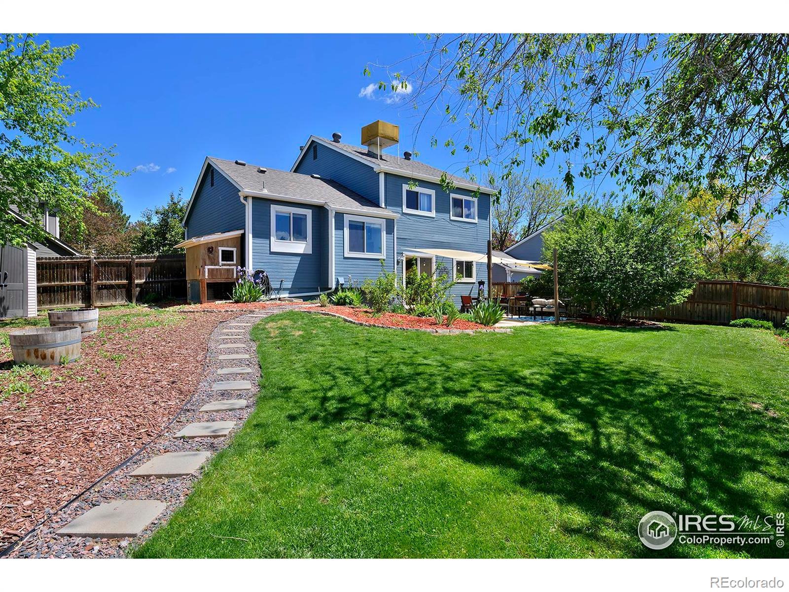 Serene and spacious, this fully remodeled tri-level home sits on a quiet cul-de-sac just minutes from Downtown Lafayette. A well-landscaped, massive yard with mature trees awaits your stamp. Continue cultivating the garden that currently includes culinary herbs as well as raspberry and strawberry bushes, relax on the paved back patio with a cup of coffee while the dogs romp around, or entertain friends and family with an inviting indoor/outdoor living area. Also in the yard, a detached, fully equipped studio with lofted ceilings makes for an ideal work-from-home office or private creative retreat. Inside the main house, you'll find extensive, tasteful updates - flawless hardwood floors, built-in cabinetry, and a gas range with ceiling-mounted hood ventilation in an airy kitchen. Laundry is conveniently located on the upper floor close to the bedrooms, and plenty of additional storage can be found in the roomy two-car garage. In this peaceful environment with friendly neighbors, you get the best of both worlds by also being centrally located with easy access to highways between Boulder and Denver. Less than a mile from Waneka Lake Park, a 147-acre wildlife refuge with a fitness trail and paddle-friendly lake, living here means you can bank on plenty of sunsets with Rocky Mountain views by the water. Detached studio not included in square footage.