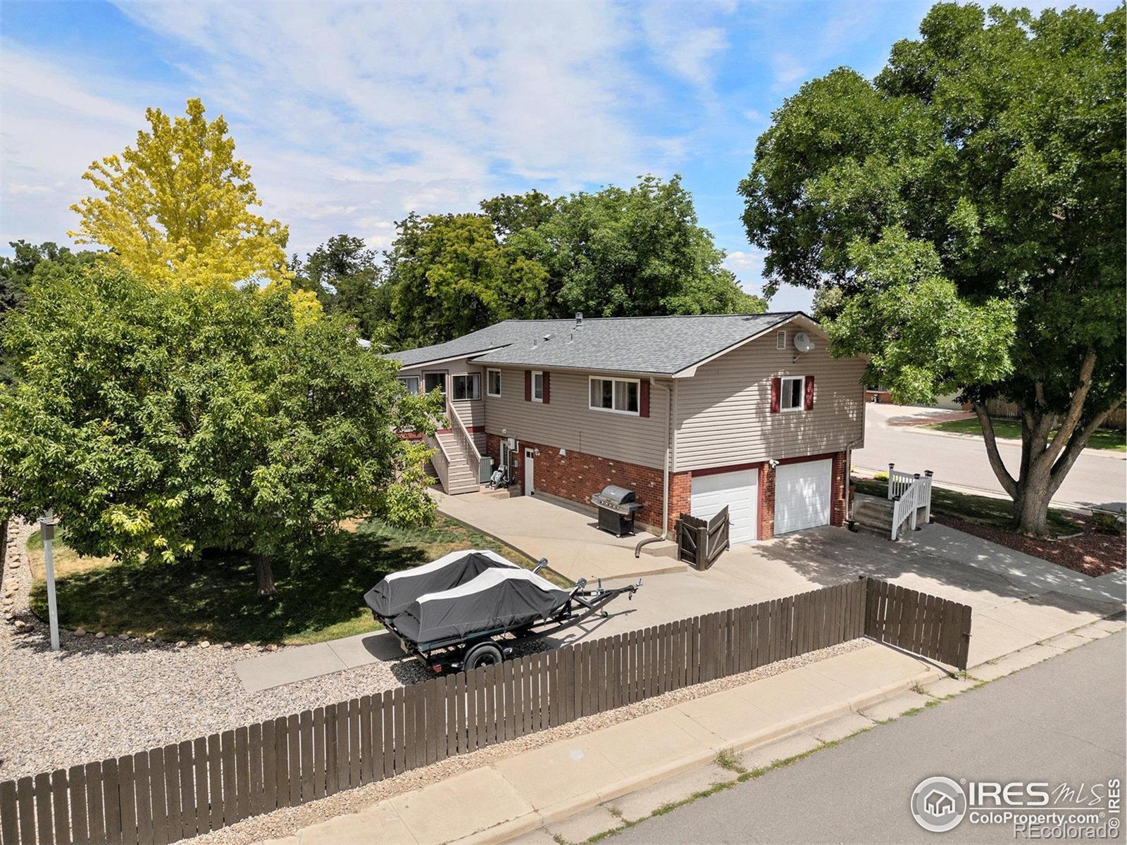 No HOA or METRO District! Great North Loveland Neighborhood with Wide, Shady Streets! Corner Lot with Large Cement Parking Area Behind the Fence for RV, Boat, Trailer, Work Vehicles, etc. Oversized 2 Car Attached Garage. 3 Bedrooms & 2 Baths on Upper Level with 3 Season Sunroom next to the Dining Room. Lower Level includes Family Room (and possibly 4th Bedroom), Half Bath & Laundry plus Direct Access to Garage, Mudroom Drop Zone & Door out to the Huge Patio. Beautiful Yard with Shed & Extra Storage Room next to the Patio. Make this Wonderful and Versatile Property YOURS!