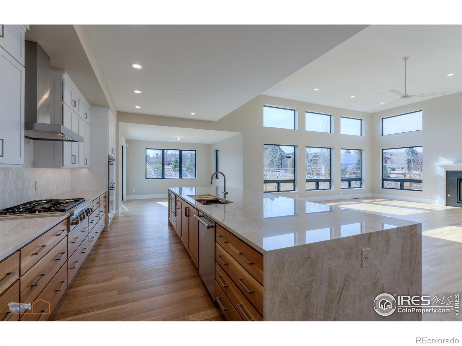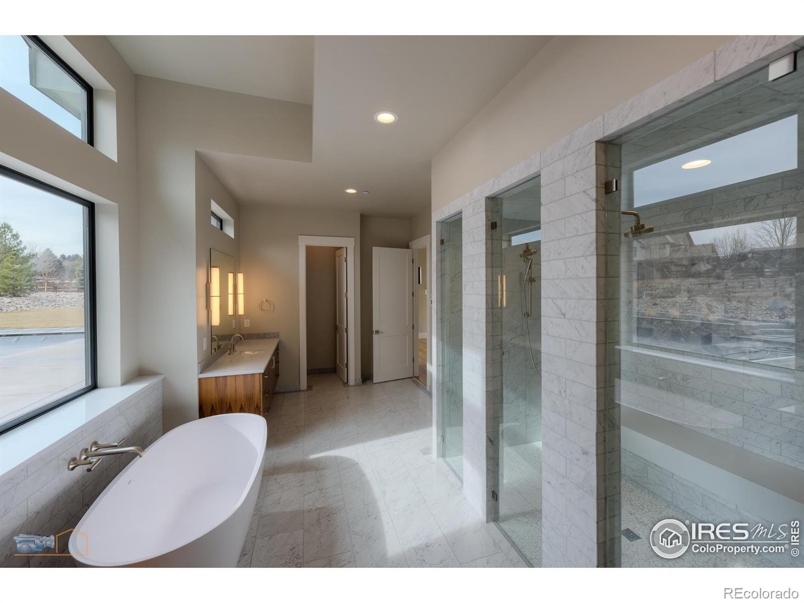 This Inviting NEW HOME in the heart of Niwot Hills, Niwot's premier subdivision, has 5 bedrooms, 7 baths & a pool with waterfalls, hot tub & a pool house. This is the latest home built by Bob Cahn Homes who has been building homes in the area for over 35 years. Features include Thermador Appliances in a cook's kitchen open to the great room, a family room off the entry that leads to the beautiful backyard and a primary suite with a sitting area also opens to the backyard. The primary bath features a radiant heated floor plus an oversized steam shower with marble tile & towel warmer. There is geothermal heating and cooling, 24.6 KW solar system, extensive white oak hardwood flooring, four car garage and an oversized mudroom/laundry. In addition to the 5,883 square foot main floor, including pool house is the 1,757 square foot upper level with a recreation room, wet bar and two ensuite bedrooms. Landscaping is included in this wonderful new home. There are extensive walking/biking trails that go through the neighborhood and connect to trails throughout Niwot and beyond. Contact Builder/Agent with any questions. New Home with landscaping and pool.