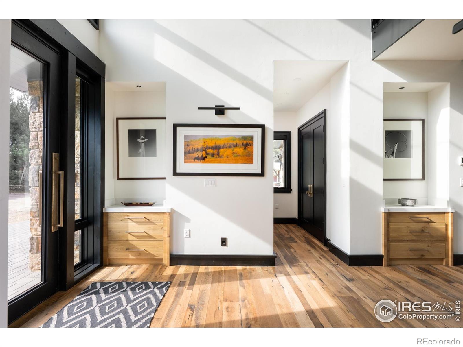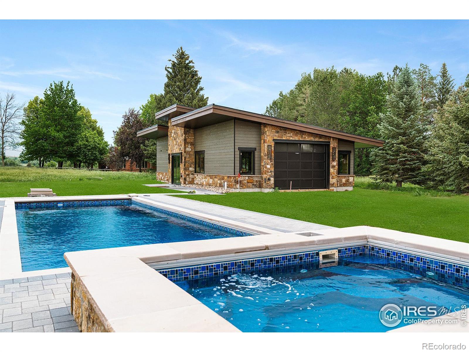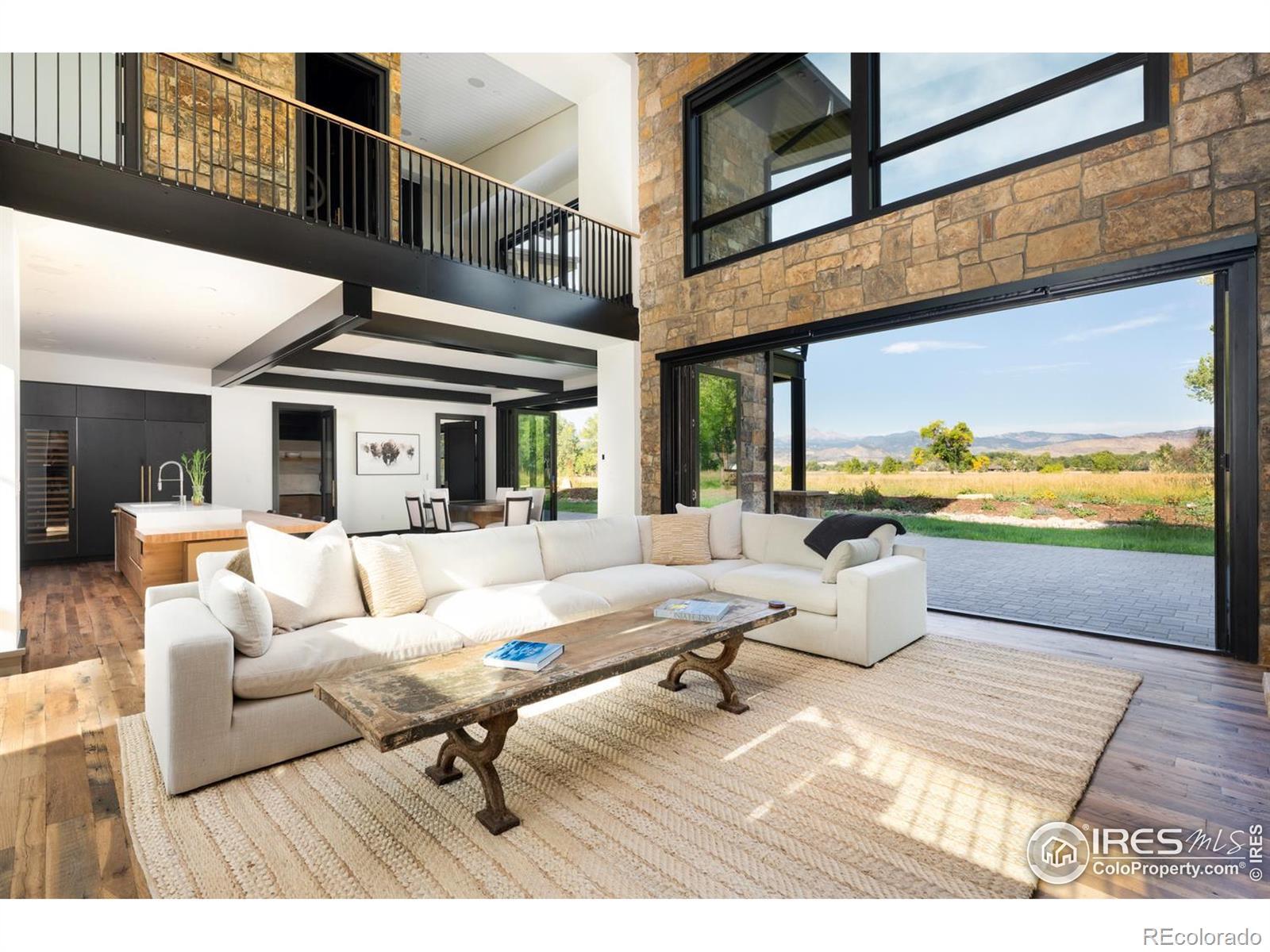 Lakeside living near Boulder is virtually unheard of, making 12357 N 75th Street one of the most exceptional opportunities in the region. Set on 7 lush, irrigated acres with direct access to a private lake and sweeping views of Longs Peak and the entire Front Range, this Boulder County estate offers natural beauty, luxury, and privacy just 20 min. from downtown Boulder. At the heart of the property is a newly constructed 5,754 SF residence, thoughtfully designed for elevated indoor-outdoor living. Expansive accordion glass doors and floor-to-ceiling windows capture breathtaking views, bringing the landscape into every room. Every element has been curated to support a life of ease, comfort, and refined style. The kitchen is a standout, equipped with Sub-Zero and Wolf appliances, a steam oven, a striking steel range hood, wine storage, and a fully appointed cook-in butler's pantry. A dramatic open-hearth fireplace anchors the great room, where rich textures, such as handcrafted cabinetry, reclaimed wood beams, and custom steel elements, create depth and sophistication. The home features four spacious bedrooms and six bathrooms, including a luxurious primary suite with a private loft, balcony, coffee bar, double-sided steel fireplace, spa bath with a soaking tub and steam shower, and a custom-designed walk-in closet. A dining room, private home office, and generous laundry room round out the home's well-appointed interior. Step outside to a true lifestyle haven. A heated pool and spa, lakeside firepit, and expansive patios offer multiple venues for entertaining or unwinding in total privacy. Direct lake access provides the rare ability to paddleboard, canoe, or enjoy peaceful moments beside the water. The estate also includes a newly constructed agricultural barn, an original carriage house, and a freestanding art studio. Just down the road, the charming enclave of Hygiene offers a taste of small-town life, boutique shops, and close-knit community feel. Home completed