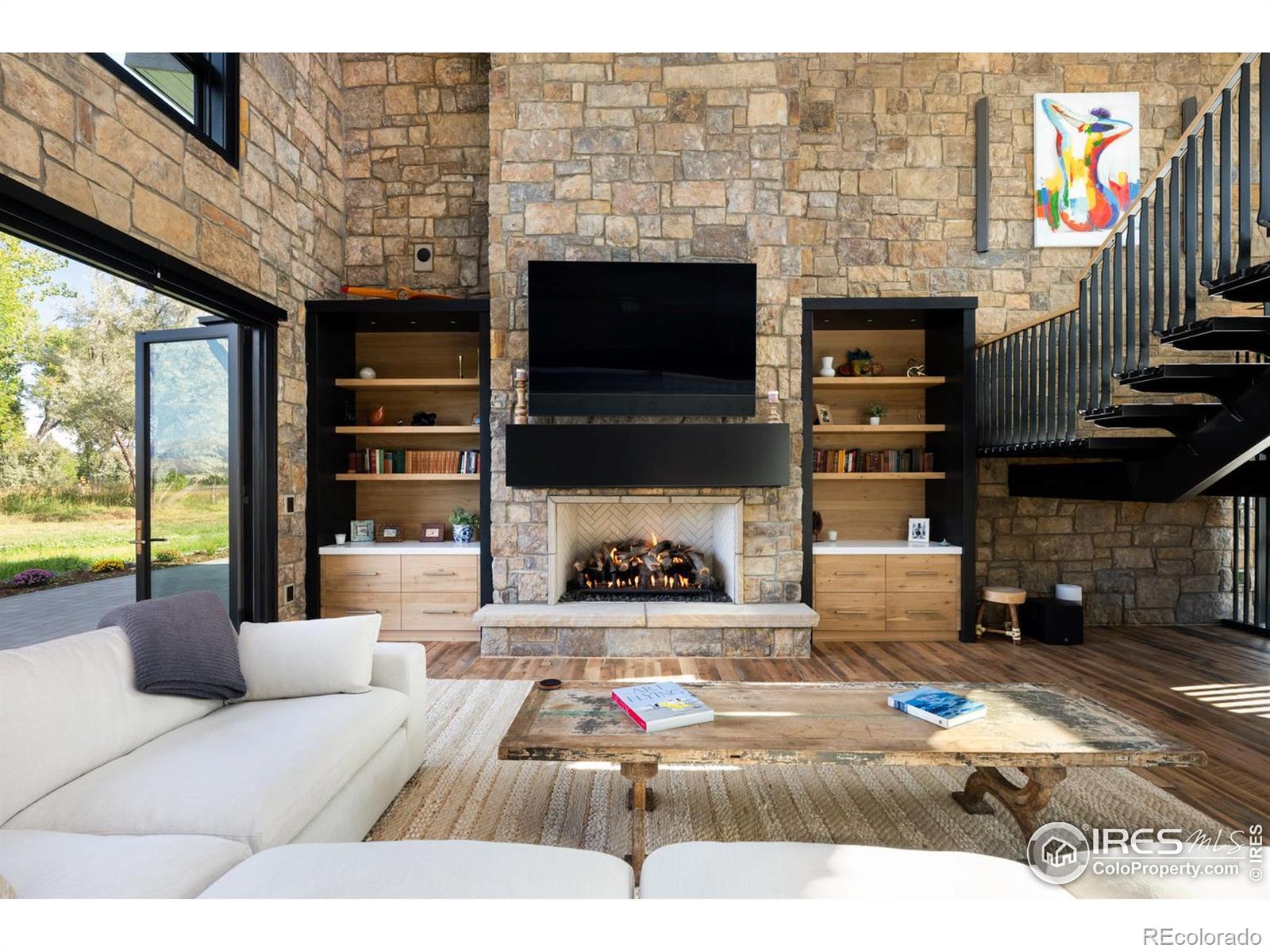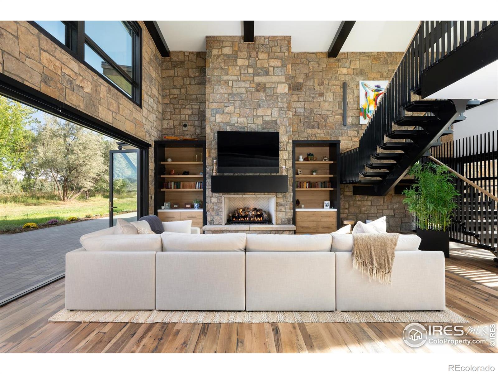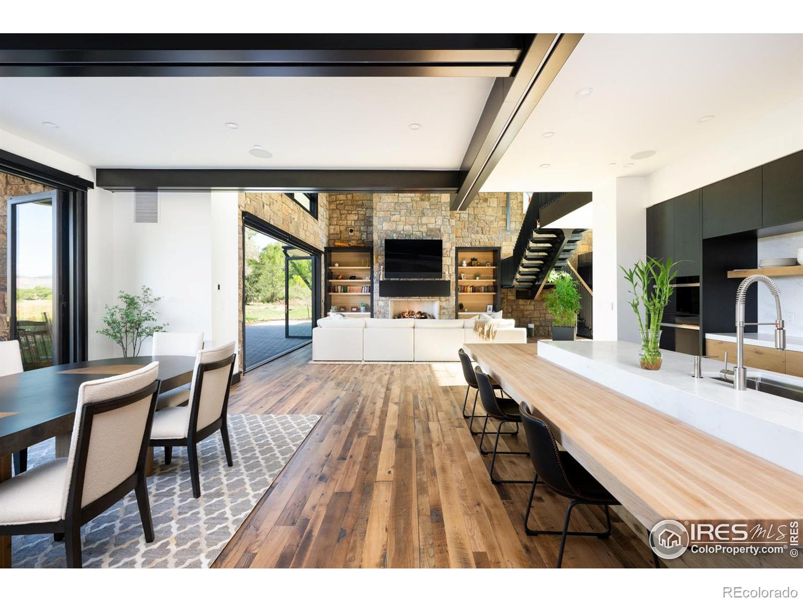 Lakeside living near Boulder is virtually unheard of, making 12357 N 75th Street one of the most exceptional opportunities in the region. Set on 7 lush, irrigated acres with direct access to a private lake and sweeping views of Longs Peak and the entire Front Range, this Boulder County estate offers natural beauty, luxury, and privacy just 20 min. from downtown Boulder. At the heart of the property is a newly constructed 5,754 SF residence, thoughtfully designed for elevated indoor-outdoor living. Expansive accordion glass doors and floor-to-ceiling windows capture breathtaking views, bringing the landscape into every room. Every element has been curated to support a life of ease, comfort, and refined style. The kitchen is a standout, equipped with Sub-Zero and Wolf appliances, a steam oven, a striking steel range hood, wine storage, and a fully appointed cook-in butler's pantry. A dramatic open-hearth fireplace anchors the great room, where rich textures, such as handcrafted cabinetry, reclaimed wood beams, and custom steel elements, create depth and sophistication. The home features four spacious bedrooms and six bathrooms, including a luxurious primary suite with a private loft, balcony, coffee bar, double-sided steel fireplace, spa bath with a soaking tub and steam shower, and a custom-designed walk-in closet. A dining room, private home office, and generous laundry room round out the home's well-appointed interior. Step outside to a true lifestyle haven. A heated pool and spa, lakeside firepit, and expansive patios offer multiple venues for entertaining or unwinding in total privacy. Direct lake access provides the rare ability to paddleboard, canoe, or enjoy peaceful moments beside the water. The estate also includes a newly constructed agricultural barn, an original carriage house, and a freestanding art studio. Just down the road, the charming enclave of Hygiene offers a taste of small-town life, boutique shops, and close-knit community feel. Home completed
