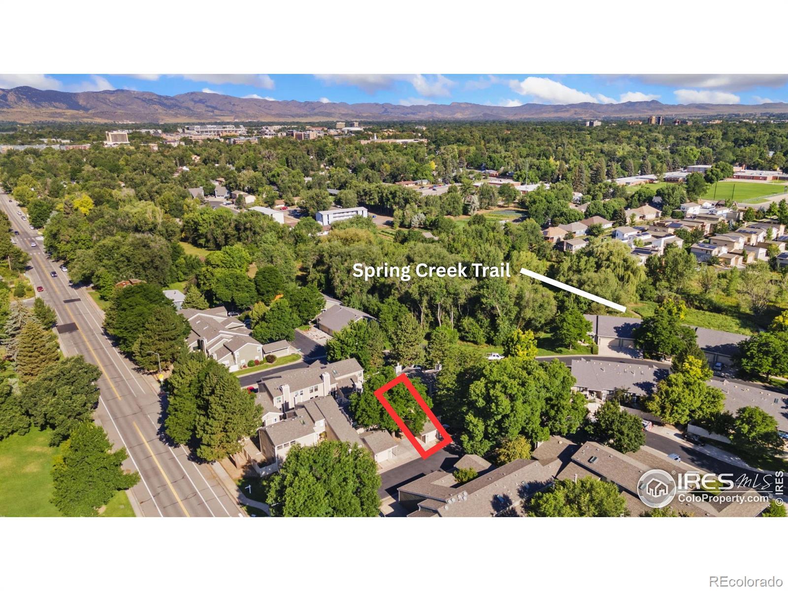 Low-maintenance living meets Colorado charm. Tucked into a quiet, tree-lined community just steps from the Spring Creek Bike Trail, this spacious 3-bedroom, 2.5-bath townhome offers the perfect blend of privacy, functionality, and lifestyle. Inside, you'll find a light-filled layout with fresh neutral tones, vaulted ceilings, and an inviting brick fireplace that sets a cozy tone in the main living area. The large primary suite features its own ensuite bathroom, while two additional bedrooms offer flexible space for guests, a home office, or family. Enjoy the ease of an attached garage, plus additional guest parking for convenience. Out back, unwind or entertain in your privately fenced patio, perfect for morning coffee, summer BBQs, or a peaceful evening retreat. With close proximity to CSU, easy access to Old Town Fort Collins, and miles of trails just outside your door, this location is ideal for both active lifestyles and relaxed living. Whether you're seeking a low-maintenance primary home, a turnkey rental investment, or a blend of both, this property offers exceptional potential.