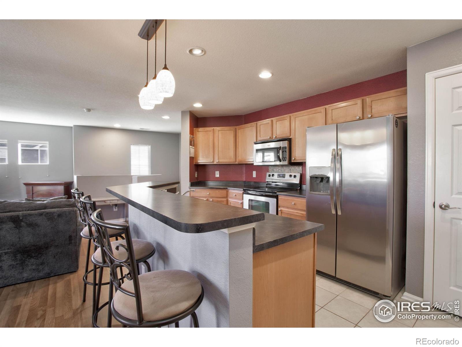 Seller will pay up to $5,000 towards buyers closing costs and/or interest rate buy down. Welcome to this inviting two-bedroom, two full bathroom corner condo with an attached garage and all the living space on one convenient level. The spacious kitchen is a culinary haven, featuring a breakfast bar with pendant lighting, stainless steel appliances, cabinets with pull-out shelving and an open layout that seamlessly connects to the dining room and living room. Go out onto the balcony from the dining area to enjoy beautiful Colorado and get some fresh air. The primary bedroom is a retreat with ensuite bath and a spacious walk-in closet. An additional bedroom and full bath provide flexibility and convenience. Washer and dryer are included. Located in a fantastic spot with easy access to Denver, DIA, shopping, dining, parks and more, this home offers a lifestyle of convenience and comfort. Plus, enjoy peace of mind with a one-year home warranty included.