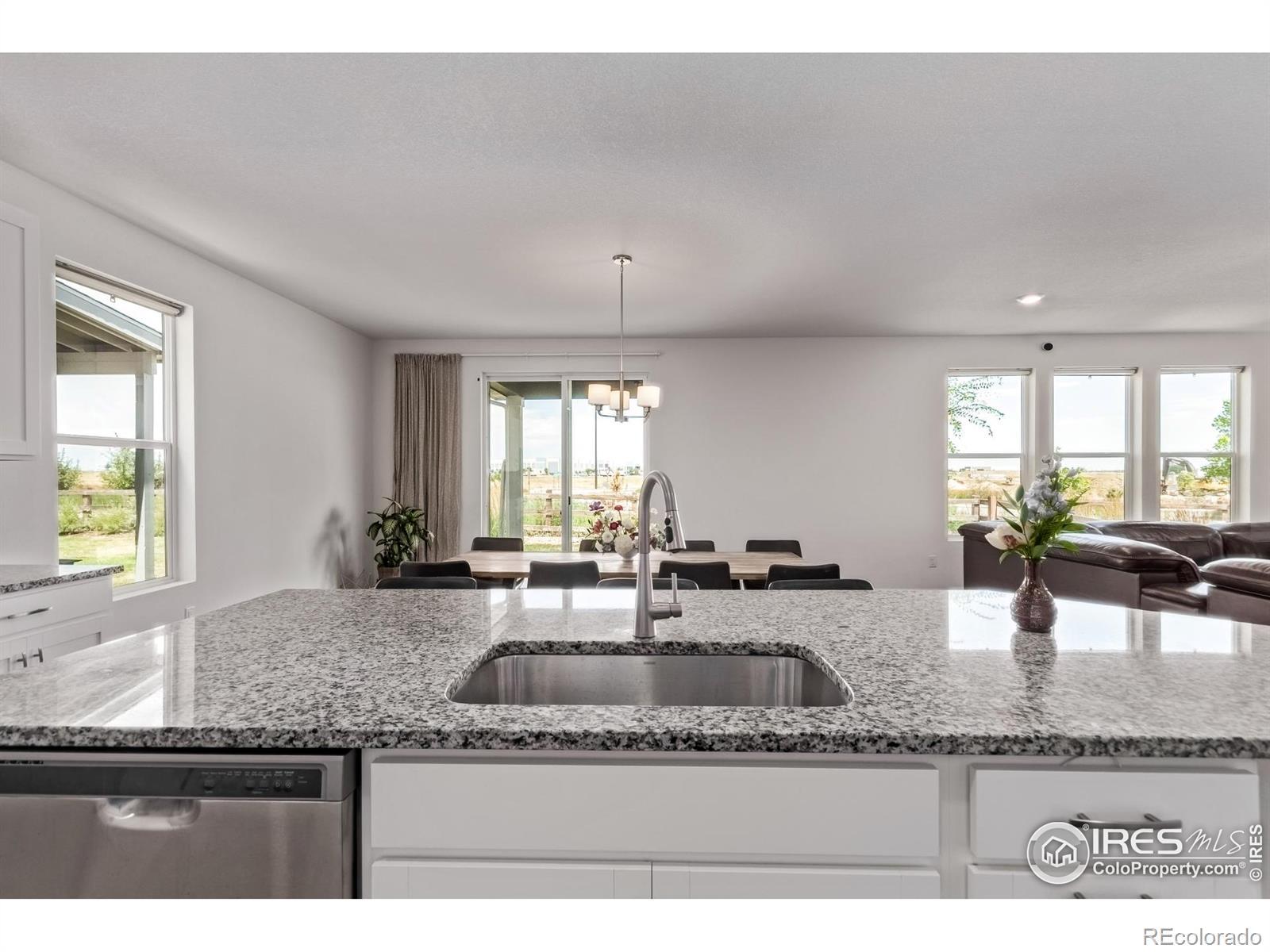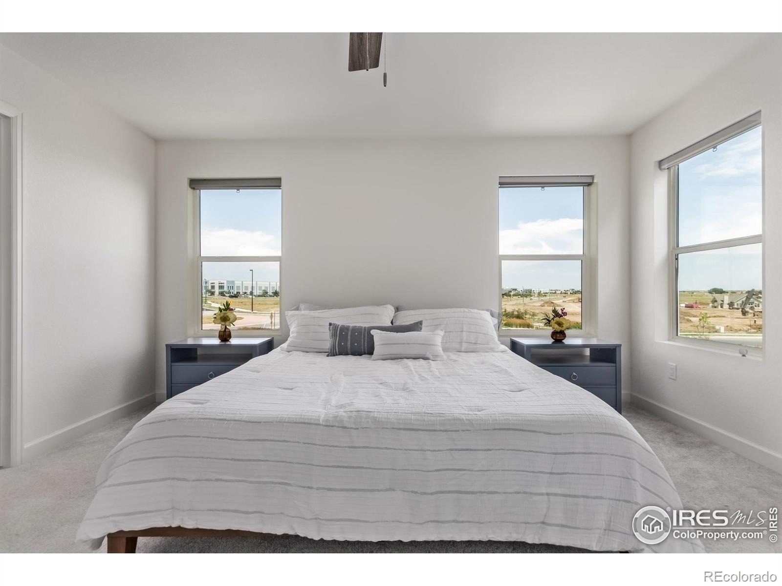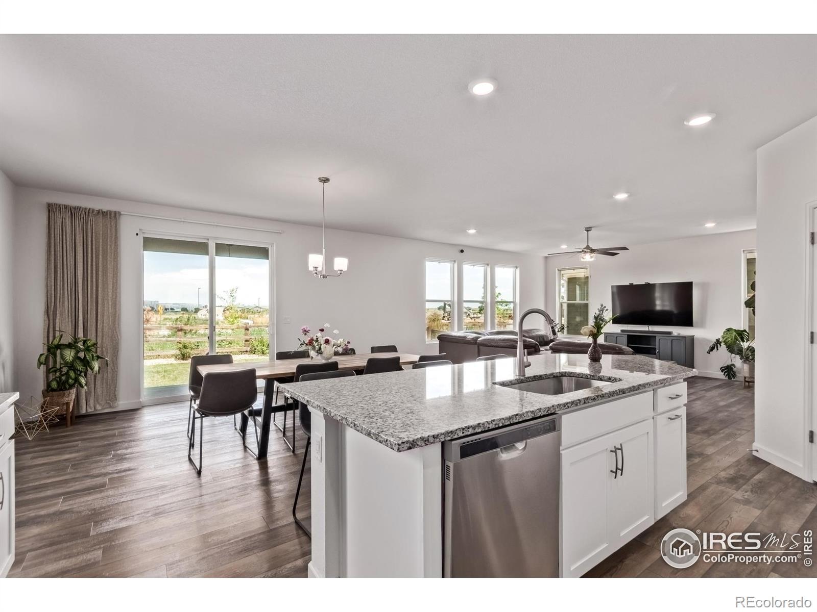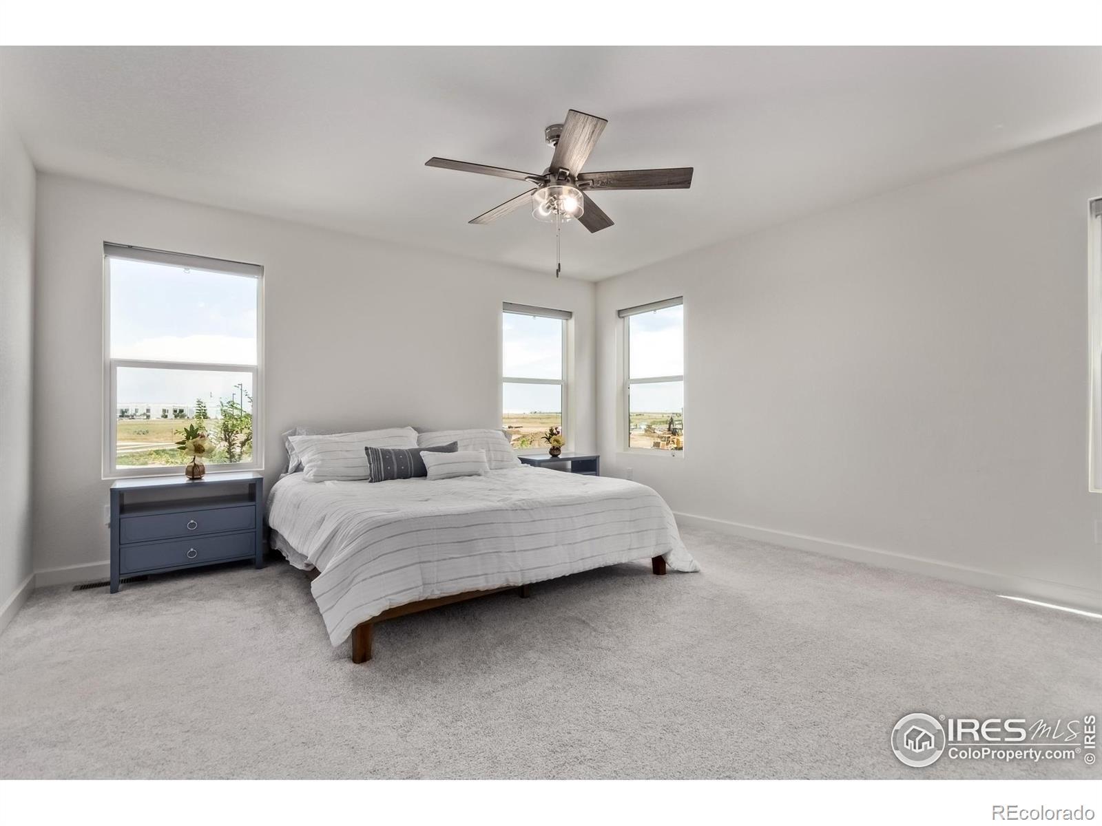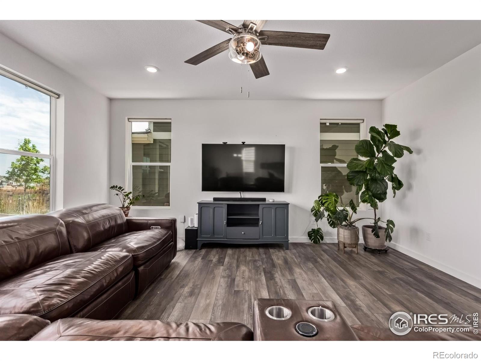 Welcome to lakeside living at its best in the heart of The Lakes at Centerra. This better-than-new two-story backs to a greenbelt and offers 4 bedrooms plus a versatile den and loft. Natural light pours through tall ceilings, highlighting wide-plank flooring and a neutral palette ready for your style. The chef's kitchen features granite counters, stainless smart appliances, and a massive island perfect for both prep and gathering. Work from home in the main-floor office, host game nights in the loft, then retreat to your spacious primary suite with dual sinks, walk-in shower, and closet built for real life. Practical perks include solar panels, energy efficient appliances, LED lighting, Tesla charger, 9' ceilings, and an extended garage. Outside, relax on the covered patio with no neighbors behind you, only open space and trails. At The Lakes, you'll enjoy 275 acres of lakes and wetlands, neighborhood trails that link to the Loveland Recreation Trail, and Boyd Lake State Park minutes away. High Plains School (K-8) and the High Plains Environmental Center are right in the community. Shopping, dining, and even a new In-N-Out are only a short drive, with I-25 and UCHealth Medical Center less than 10 minutes away. It's all here: style, convenience, and Northern Colorado's outdoor lifestyle wrapped into one.