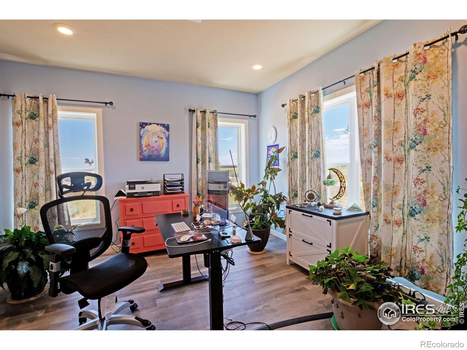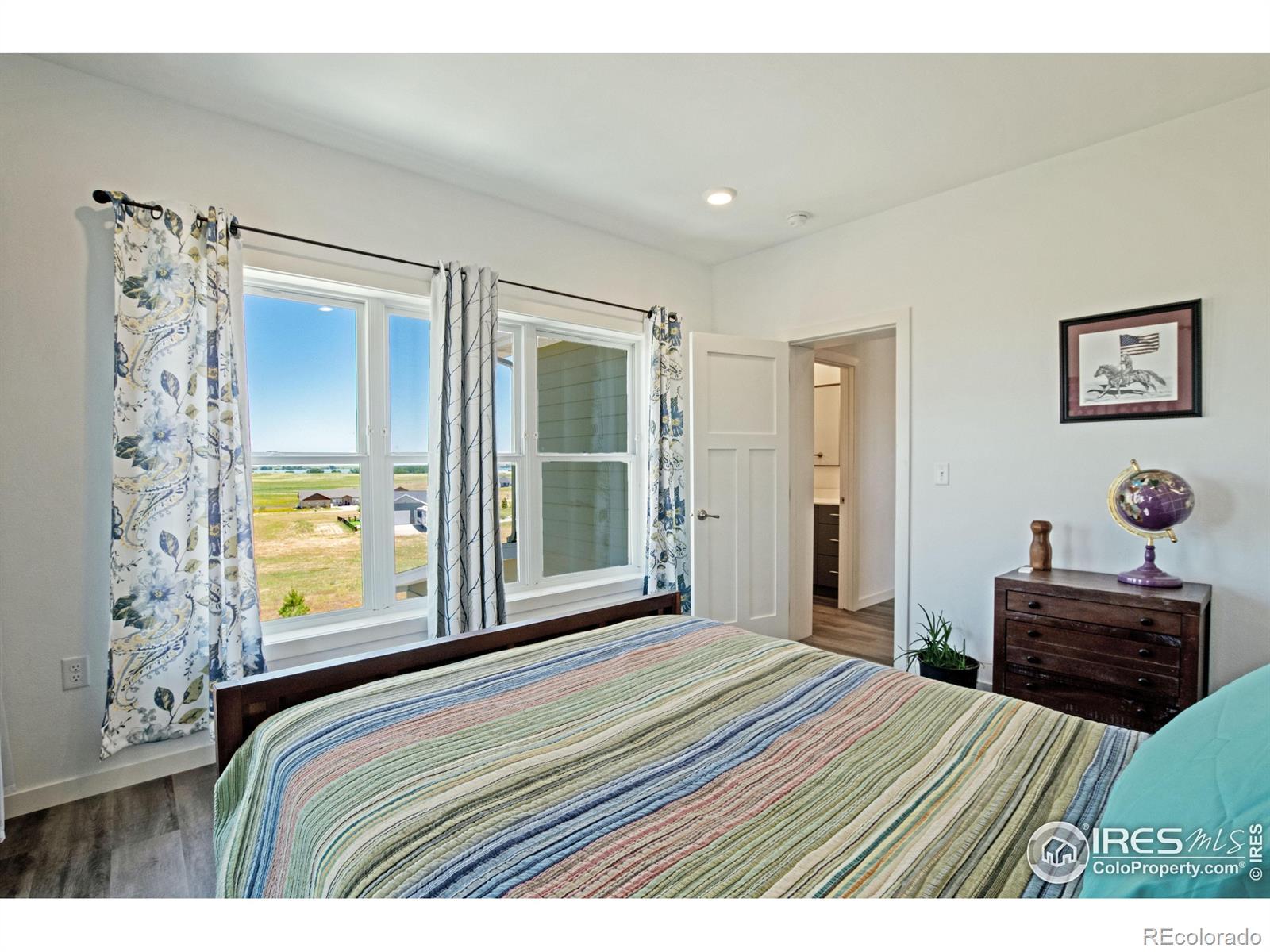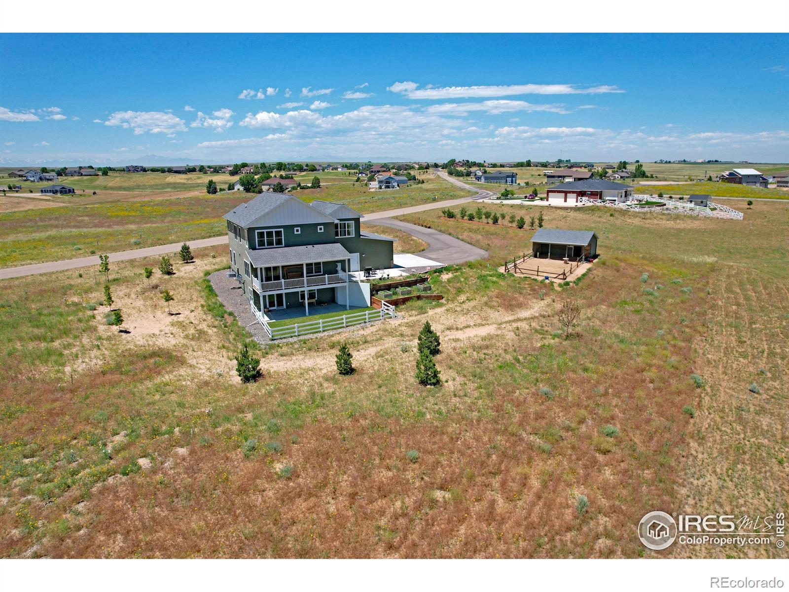 Seller offering a $10,000.00 concession. Multi-generational/multifamily/Home office possibilities! Breathtaking Views - Equestrian Property - Resort-Style Amenities!!! Immaculate 5-bdrm, 4-bath custom home with a 4-car garage on 2.2 acres with panoramic lake and mountain views. This 2022, one-owner property is smoke-free, pet-free, and chemical-free, offering pristine living in a peaceful, upscale subdivision. Features include in-floor radiant heat on all levels, gas fireplace, multiple mini splits for zone heating, central air, oversized attached garage w/ both hot and cold water, electric vehicle charger, maple cabinetry, granite and marble countertops, stainless steel appliances, walk-out basement, amazing deck, fire sprinkler system throughout, keypad entry, security cameras, and radon system to add safety and convenience. Exterior includes garden area with 3 raised beds, sprinkler system, barn & paddock w/ full time automatic watering system, with room to build a 2,500 sq ft outbuilding and/or 720 sq ft garden shed-ideal for toys & hobbies. Community amenities: bridle paths, arena, round pen, miles of horse trails, pool, tennis and pickleball/basketball courts, Lake Christina, the neighborhood lake for fishing & canoeing, event spaces, playground, and a private ski and hunting club at neighboring Milton Reservoir. Low monthly utility bills, income from oil/gas surface payments. Luxury, land, and lifestyle-all in one. Bright basement perfect for home business office and entertaining clients, multi-generational living and even multi-family. Enter basement off of garage via secluded enclosed foyer or walk out basement. Seller is motivated to sell. Price and improvements! See broker comments!