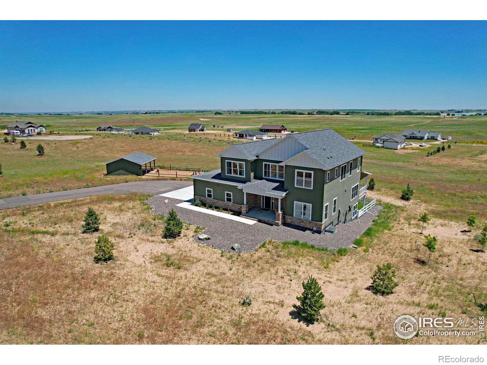Move in today! Multi-generational/multifamily possibilities! Breathtaking Views - Equestrian Property - Resort-Style Amenities!!! Immaculate 5-bdrm, 4-bath custom home with a 4-car garage on 2.2 acres with panoramic lake and mountain views. This 2022, one-owner property is smoke-free, pet-free, and chemical-free, offering pristine living in a peaceful, upscale subdivision. Features include in-floor radiant heat on all levels, gas fireplace, multiple mini splits for zone heating, central air, oversized attached garage w/ both hot and cold water, electric vehicle charger, maple cabinetry, granite and marble countertops, stainless steel appliances, walk-out basement, amazing deck, fire sprinkler system throughout, keypad entry, security cameras, and radon system to add safety and convenience. Exterior includes garden area with 3 raised beds, sprinkler system, barn & paddock w/ full time automatic watering system, with room to build a 2,500 sq ft outbuilding and/or 720 sq ft garden shed-ideal for toys & hobbies. Community amenities: bridle paths, arena, round pen, miles of horse trails, pool, tennis and pickleball/basketball courts, Lake Christina, the neighborhood lake for fishing & canoeing, event spaces, playground, and a private ski and hunting club at neighboring Milton Reservoir. Low monthly utility bills, income from oil/gas surface payments. Luxury, land, and lifestyle-all in one. Bright basement perfect for home business office and entertaining clients, multi-generational living and even multi-family. Enter basement off of garage via secluded enclosed foyer or walk out basement. Seller is motivated to sell. Price and improvements! See broker comments!