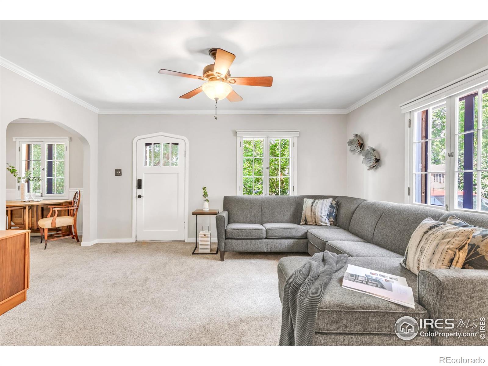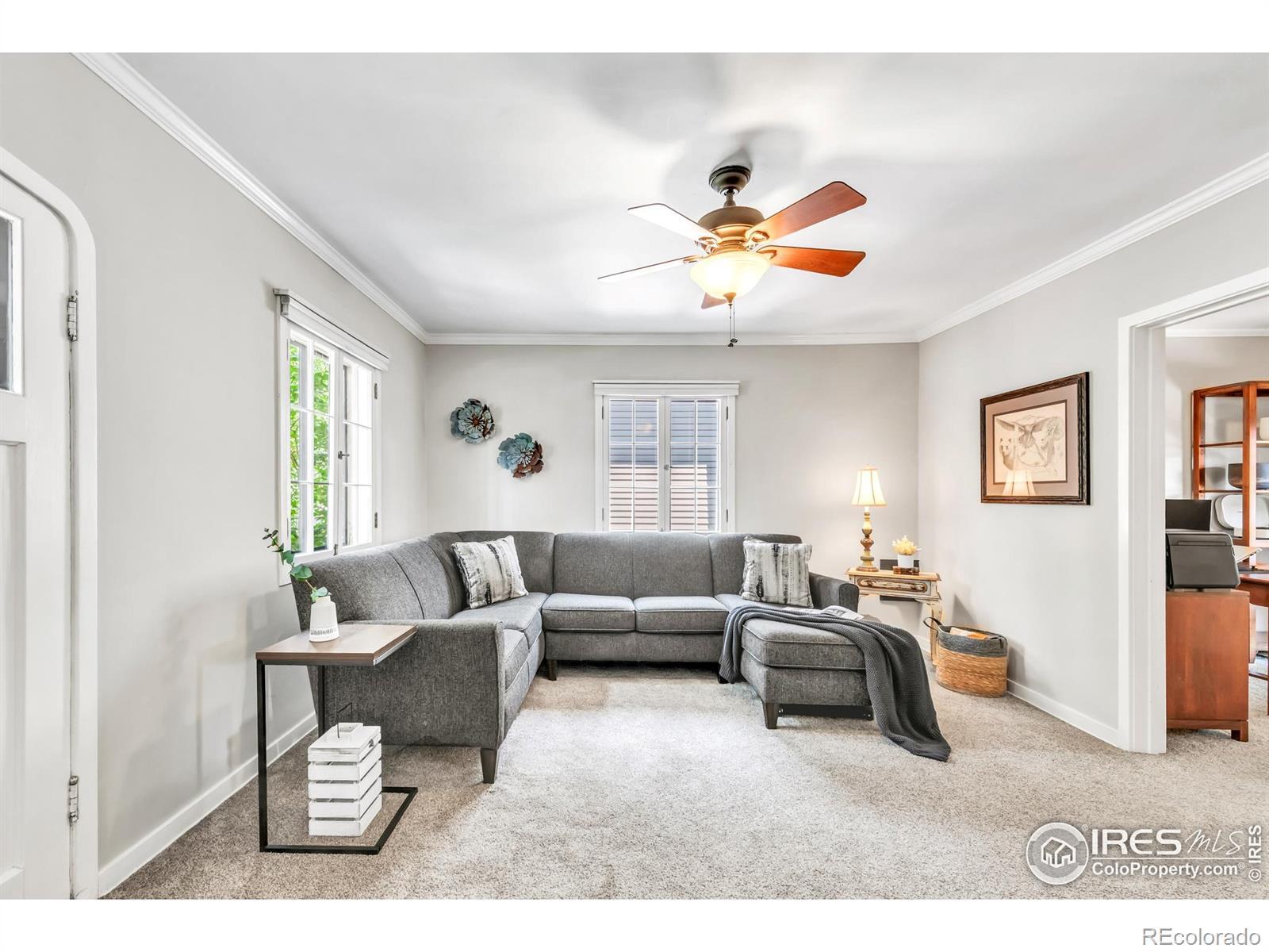 Nestled on a picturesque, tree-lined street in the heart of Old Town Longmont, this enchanting 1938 Tudor-style home melds timeless character with modern livability. Loved and meticulously maintained, original arched doorways, gleaming hardwood floors and built-ins adorned with antique brass hardware evoke nostalgic charm. A spacious living room flows into a bright kitchen featuring stainless steel appliances, vibrant tile and tall cabinetry. Two comfortable bedrooms are complemented by a full bath, while a finished basement offers a third non-conforming bedroom or flexibility for a rec room, home office or studio. Don't forget to peek in the garage to see the additional studio/workspace for your creative projects! Fresh paint, newer carpet, added insulation and a regularly serviced furnace ensure year-round comfort, not to mention updated electrical (2024) throughout the home. Outside, a professionally landscaped, fully enclosed yard features irrigated flowerbeds, a newer reinforced fence and an expansive stone terrace - an idyllic setting for entertaining or quiet evenings under the stars. The oversized detached garage is drywalled with ample natural light, designed to complement the home's architecture. Additional highlights include a mudroom with side-door access, a radon system, sump pump and a brand-new roof + gutters (2023). Situated on a quiet street with easy access to Roosevelt Park, shops, restaurants and community events, this move-in-ready gem is Old Town living at its finest. *Lender paid incentives of up to $7,000, being offered. Buyer(s) can use these funds towards interest rate buydowns, closing costs, and/or prepaids. Buyer(s) must be purchasing the home as a primary residence and using a conventional, FHA, or VA loan.*