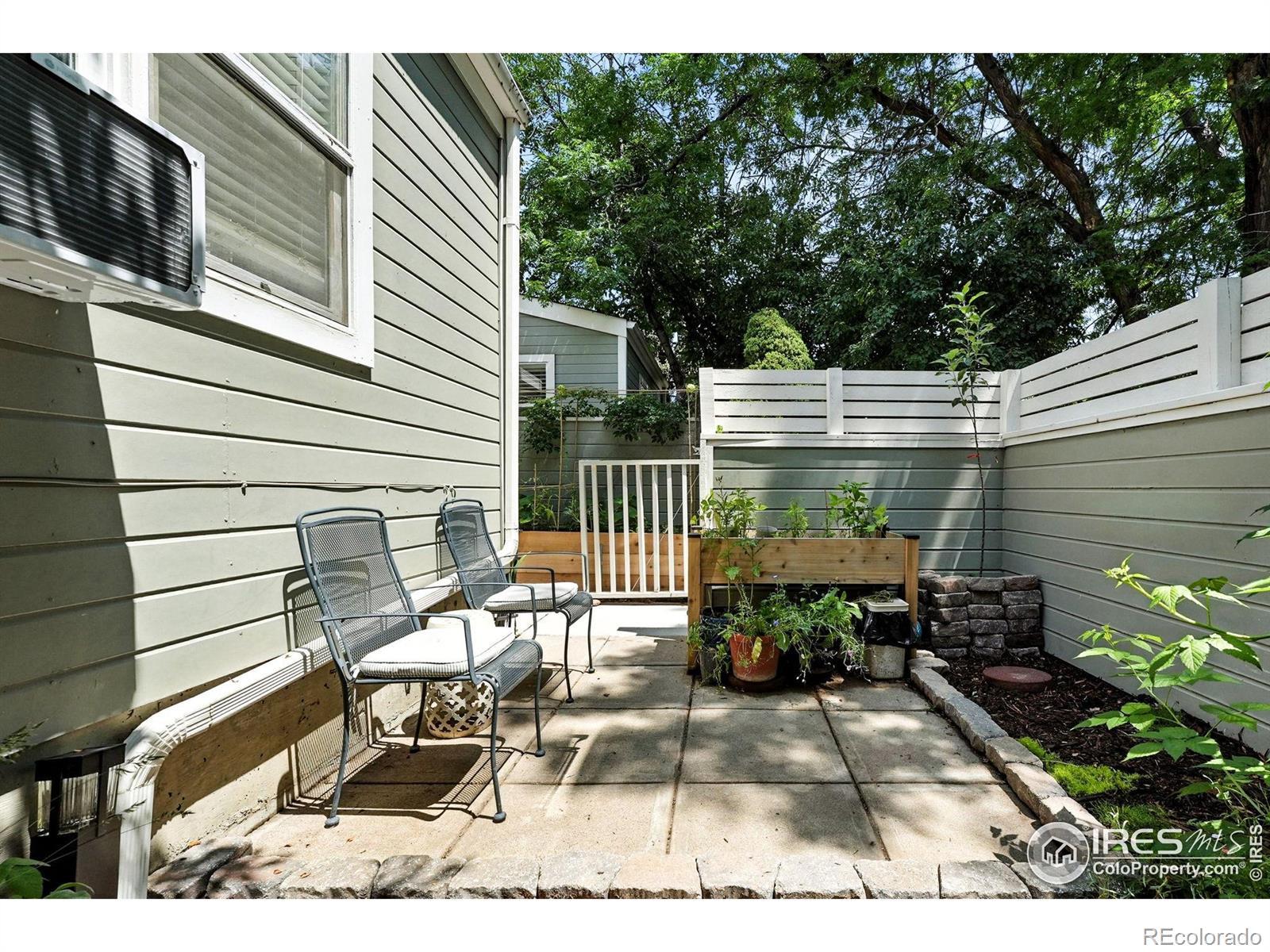 Impeccably maintained and ideally situated, this light-filled residence offers a refined retreat for those seeking the Boulder lifestyle without the burden of constant upkeep. Step inside to find a home that has been thoughtfully upgraded throughout, blending style and function with ease. Recent enhancements include new indoor lighting and fans, modern door hardware, updated kitchen and bathroom fixtures, and custom backsplashes in both the kitchen and guest bath. The kitchen has been further elevated with a new induction oven, microwave, added disposal, and a professionally flushed line system backed by a 2-year warranty. New bathroom mirrors and kitchen knobs add personality and polish throughout.The sun-soaked, south-facing living room features vaulted ceilings and a cozy fireplace, while two tranquil bedrooms and beautifully renovated bathrooms offer a private escape. Outside, enjoy two private patios, a custom garden, and a fenced-in outdoor lounge/dining area with secure storage. Plus, enjoy covered parking and new AC units in every room for year-round comfort.Top it all off with access to a serene community pool just a short stroll away. This is Boulder living - turnkey, elevated, and effortlessly stylish.