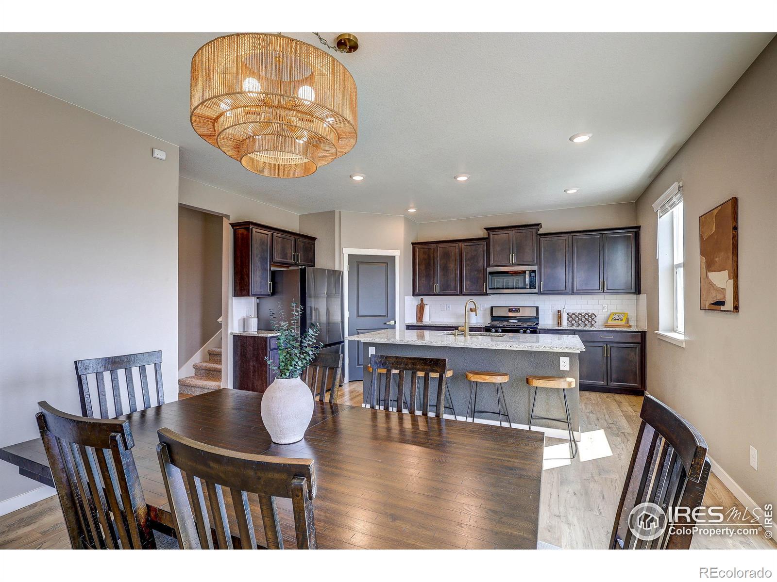 SELLER IS OFFERING A $5k BUYER FINANCE CREDIT. Better than new with designer features, this 4-bedroom, 3-bathroom home is move-in ready and located in a growing neighborhood with convenient access to parks, schools, and shopping. Designed with both style and practicality in mind, the home offers an open-concept floor plan ideal for everyday living and entertaining. The large kitchen island provides ample space for meal prep and gatherings. A front entry versatile den or living area adds flexibility to the layout, while the garage entrance opens into a well-organized storage and closet zone. Upstairs features a spacious landing area, a large laundry room, and a private primary suite. The primary suite includes a double vanity, a large walk-in closet, and a bath designed for comfort. Three additional bedrooms offer plenty of space for family or guests. The walkout basement presents opportunities for future expansion, with rough-in plumbing already in place for an additional bathroom and plenty of room for storage or more living space. Enjoy the outdoors from the newly constructed south-facing deck, overlooking a fenced backyard with open space and a park. The driveway and entry have been seal coated for added safety. Located just over half a mile from Severance High School and close to Overlook Park, grocery stores, and public transportation, this home combines suburban living with nearby conveniences. Don't miss this opportunity to settle in a quality-built home with room to grow. Schedule your tour today. Seller would be willing to negotiate a Buyer credit towards a financing credit.