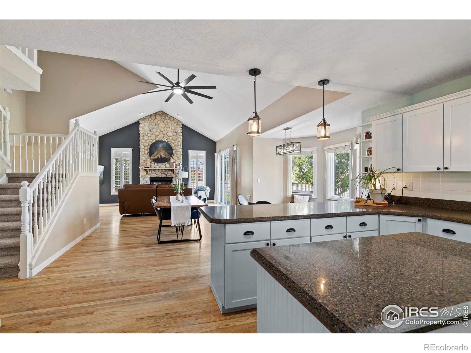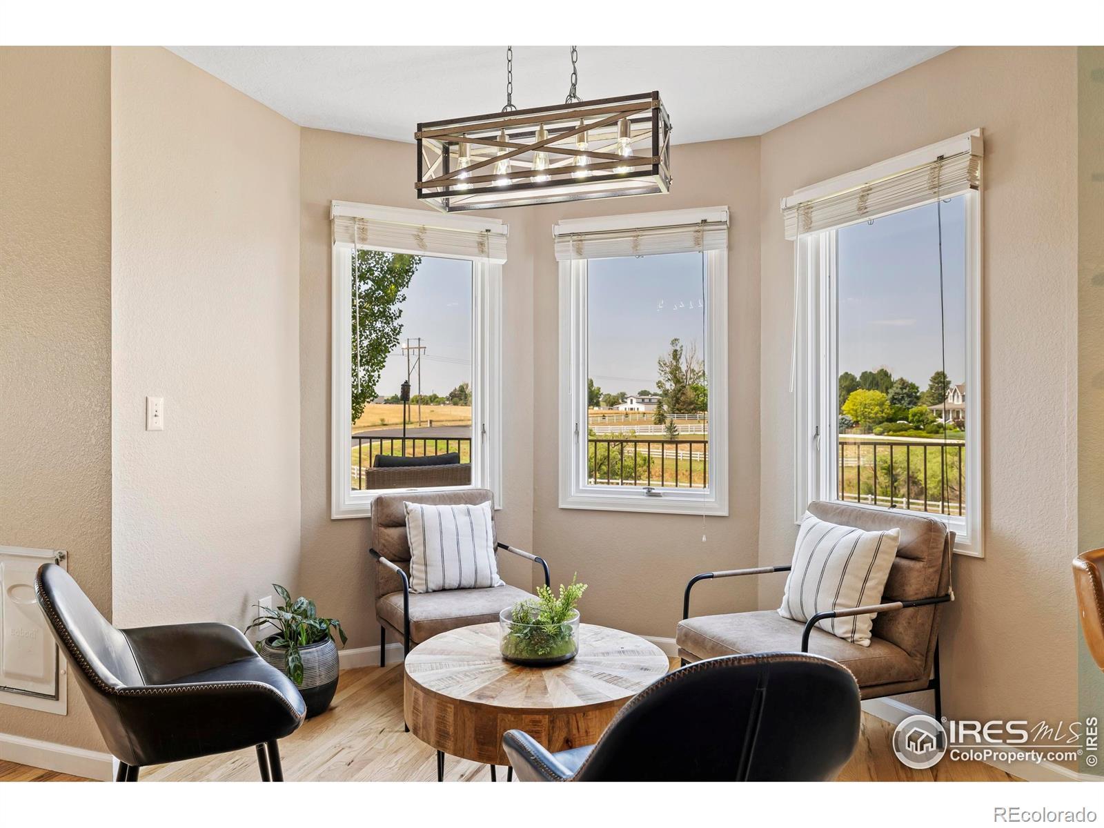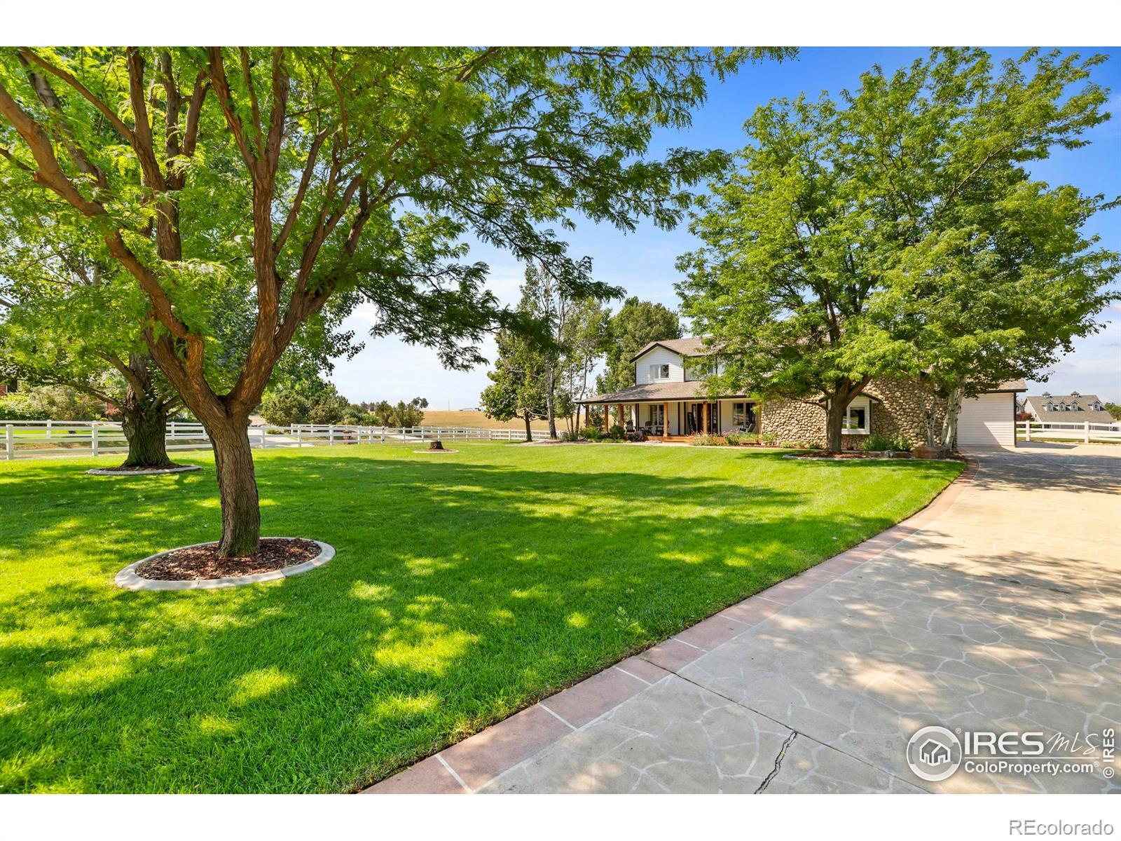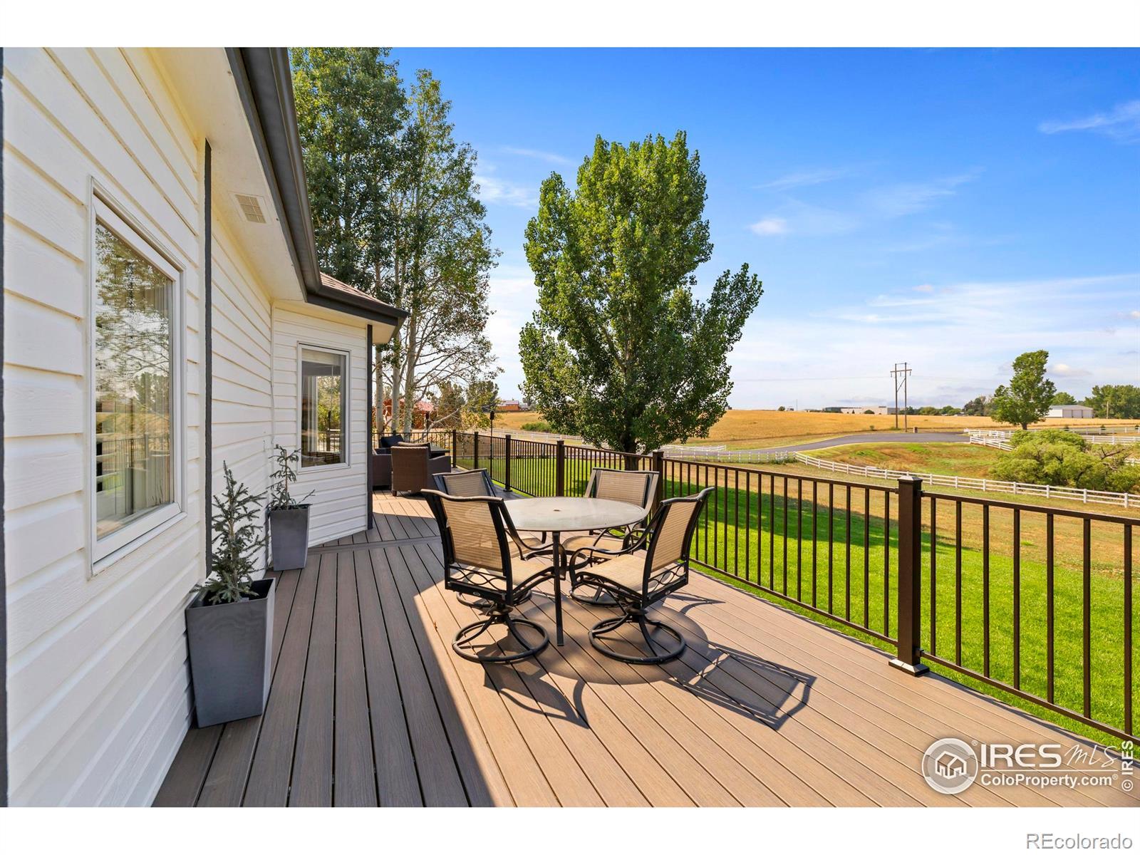 Tucked in the serene and spacious Windsong Ranch neighborhood, this beautifully updated and meticulously cared-for home offers mature landscaping, and the inviting charm on nearly 2 acres of in-town horse property with unobstructed mountain views. From the moment you arrive, you'll appreciate the long driveway the leads to an oversized 3-car garage with ample space for vehicles, toys, or a workshop.Inside, real wood floors flow throughout the main level, complemented by vaulted ceilings and a striking stone fireplace that creates a warm, elegant atmosphere. The updated kitchen and fixtures, along with newer appliances, offer turnkey convenience.Downstairs, the walk-out basement with brand new carpet is an ideal retreat for kids or guests, opening directly to the fully fenced backyard.Enjoy Colorado's sunshine and natural beauty from four separate outdoor living areas! A welcoming front patio perfect for sunrise coffee. Spacious back patio designed for entertaining. A lower patio with hot tub and seamless backyard access. And, a private deck off the primary suite to soak in sunsets and mountain views!Other highlights include, new roof (2020), furnace, A/C, and water heater replaced in 2019. This is a rare opportunity to enjoy the peace and privacy of a rural setting with all the conveniences of an in-town location. Move-in ready and built to impress-this one is a must-see!