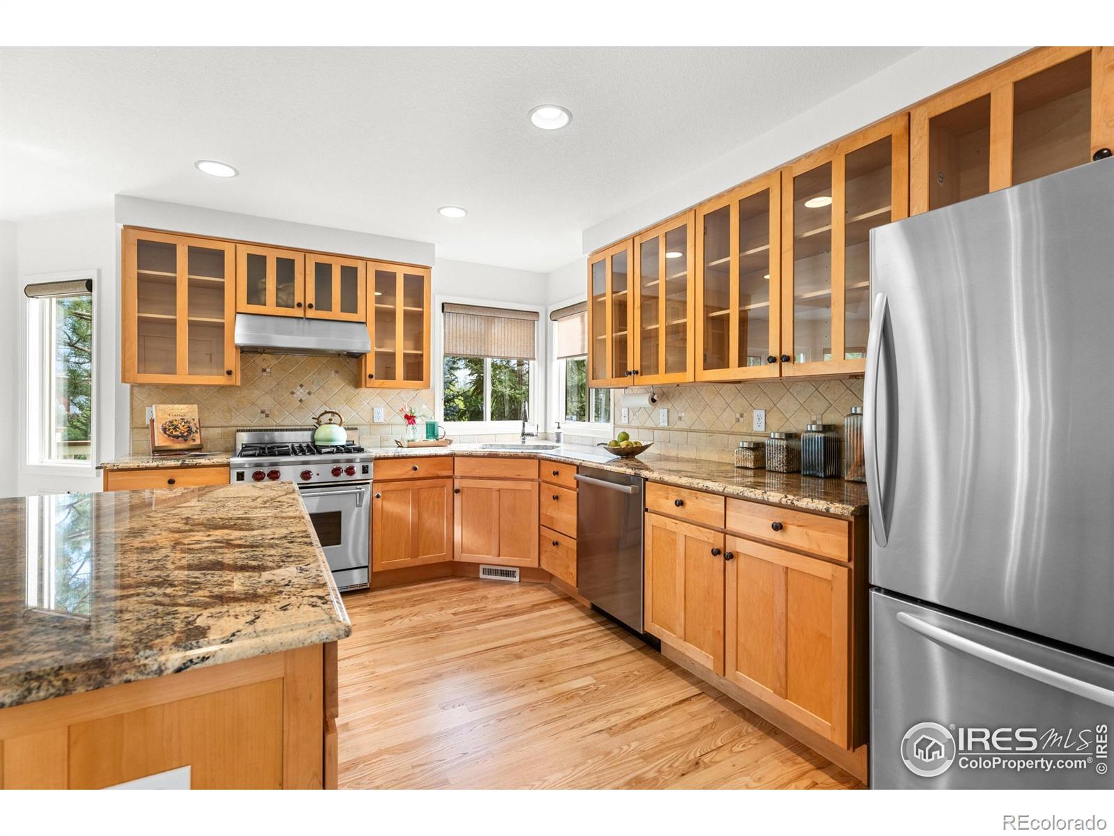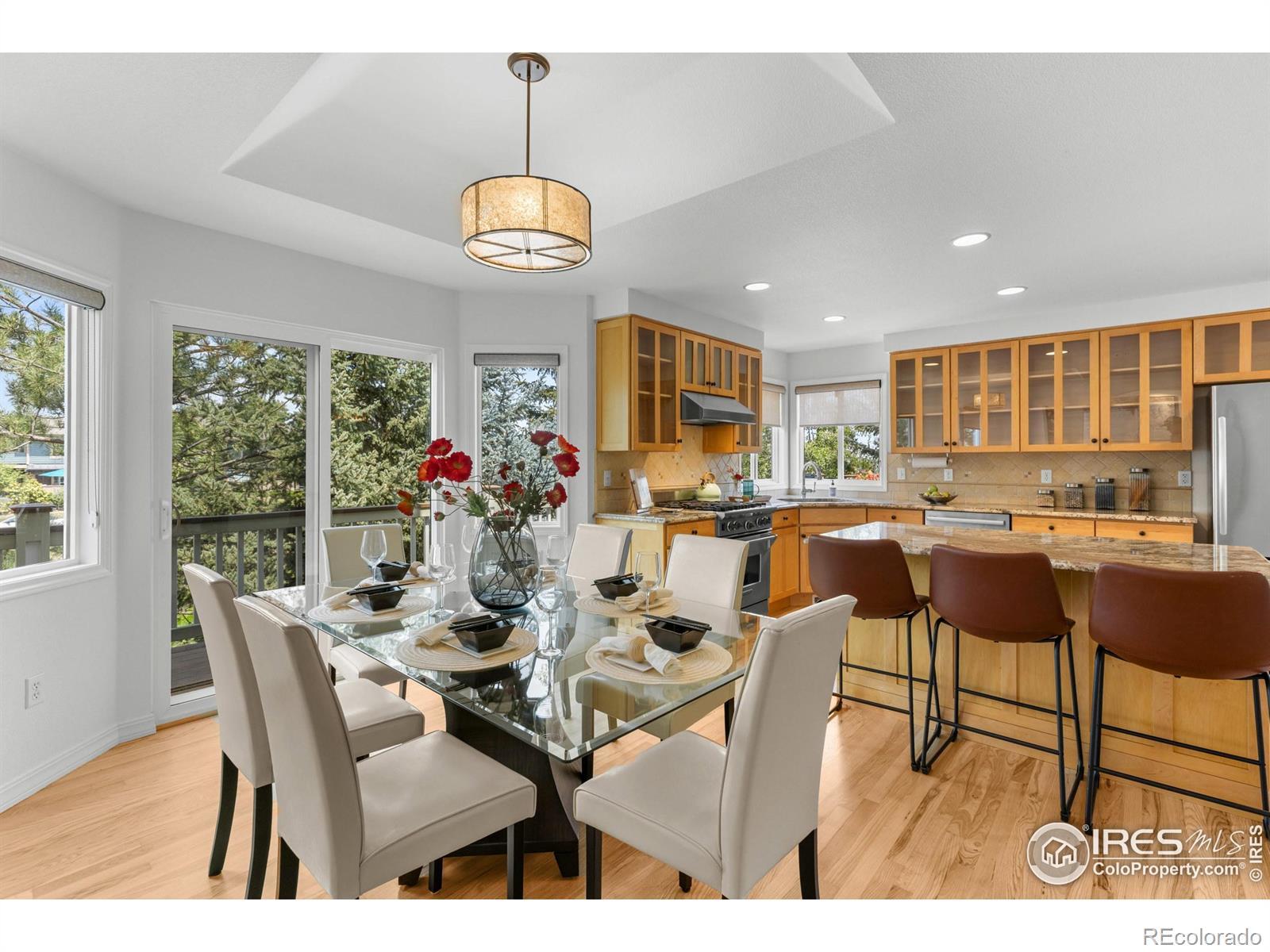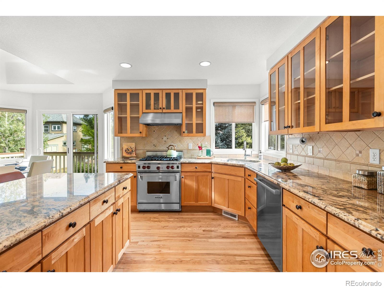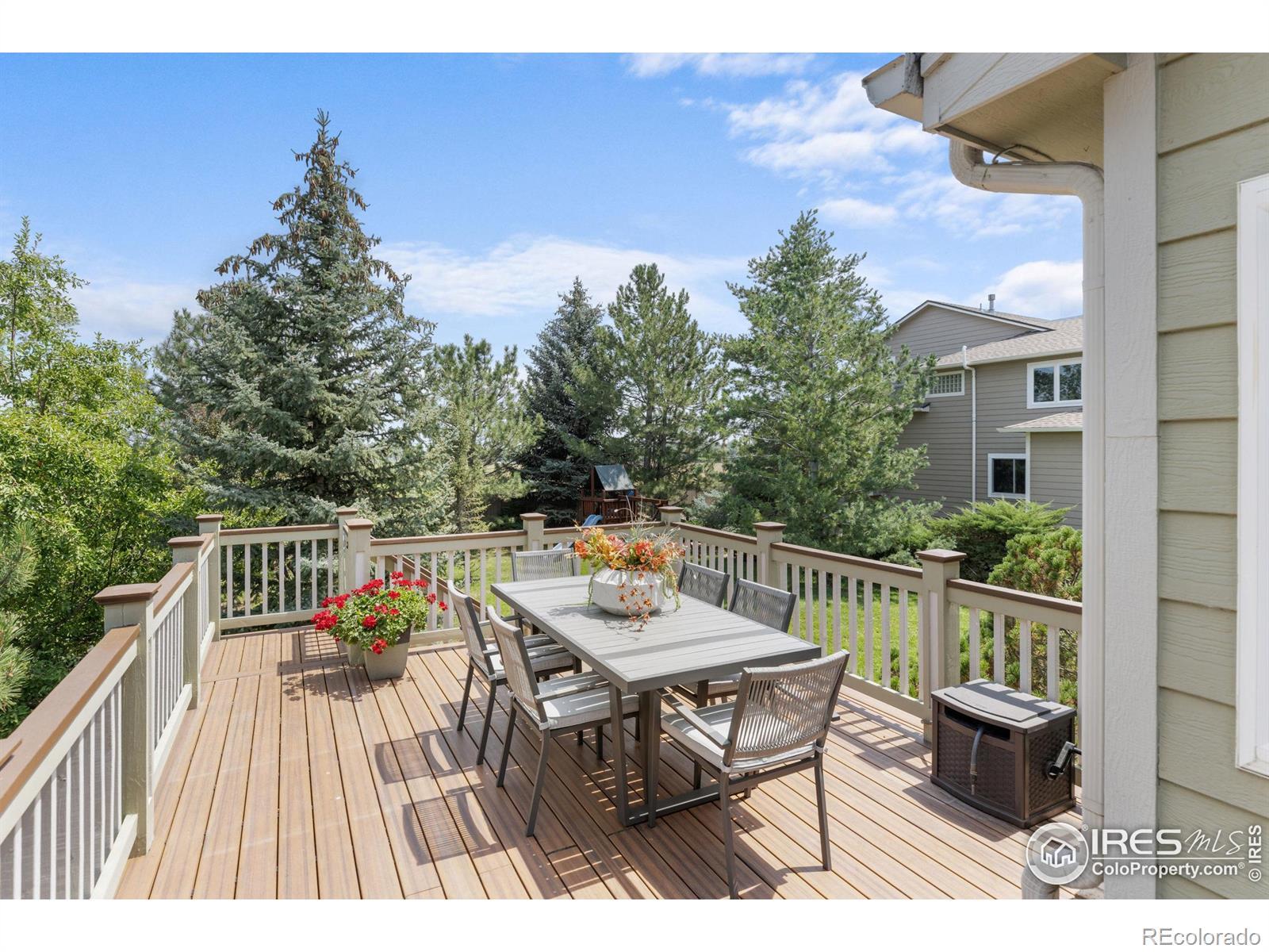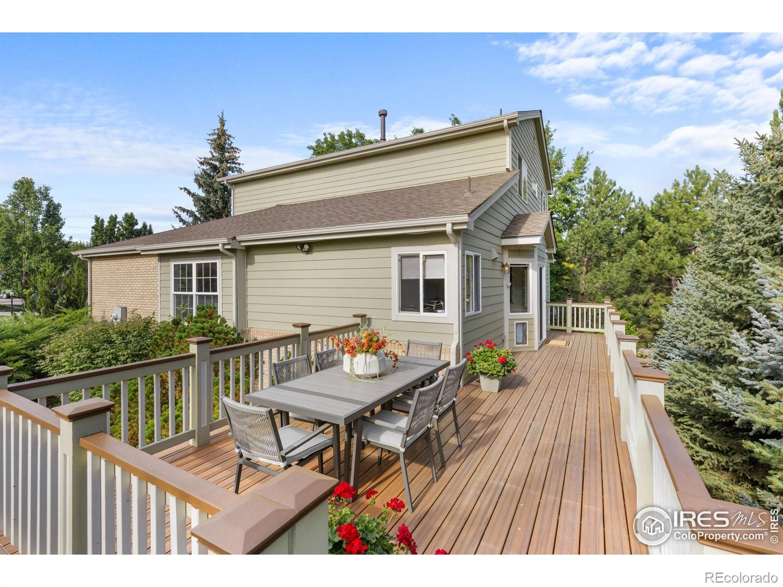 DOUBLE LOT in Four Mile Creek provides privacy and space like no other lot in the neighborhood. You will appreciate this south facing home with an abundance of natural light that backs to HOA owned open space surrounded by mature and beautiful trees! It's so unique for this location, must see & easy to show! This home has been meticulously maintained and has new paint throughout, new flooring, new roof and newer HVAC. A gorgeous kitchen will please any home chef with a Wolf Range & hood, all SS appliances, kitchen island + eat in kitchen area with direct access to a huge deck built by Melton Design Build, a high-end local builder! This move-in ready home has an expansive wrap around deck on the north and east sides that is the envy of all who see it. Perfect to enjoy throughout spring, summer and fall! Sitting on nearly 1/3 of an acre and perfectly situated on the lot, you will enjoy so much yard and garden space; throw the football around, kick the soccer ball or plant the garden of your dreams - there is room! MUST SEE! With 3 bedrooms upstairs and a 4th in the DAYLIGHT basement - there is plenty of room for family & guests alike. The finished DAYLIGHT basement is huge, light & bright and gives you so much additional room with so much natural light, it's so inviting! There's a 4th large bedroom, full bath + enough space for a rec room, home office, workout room and more. Four Mile Creek is a highly desirable neighborhood with community activities, parks, a playground, access to bike and walking paths/trails with great neighborhood schools! Great for cyclists, runners, walkers and anyone enjoying all that Boulder has to offer!