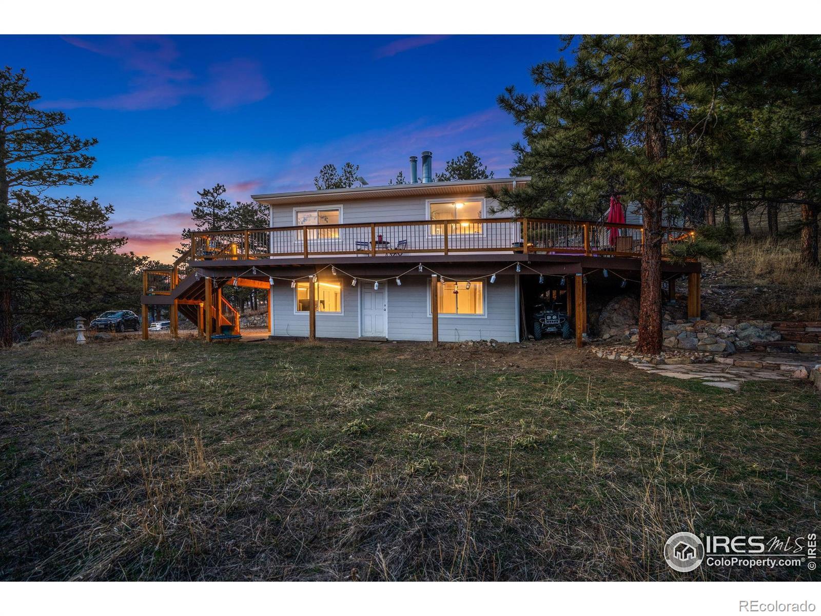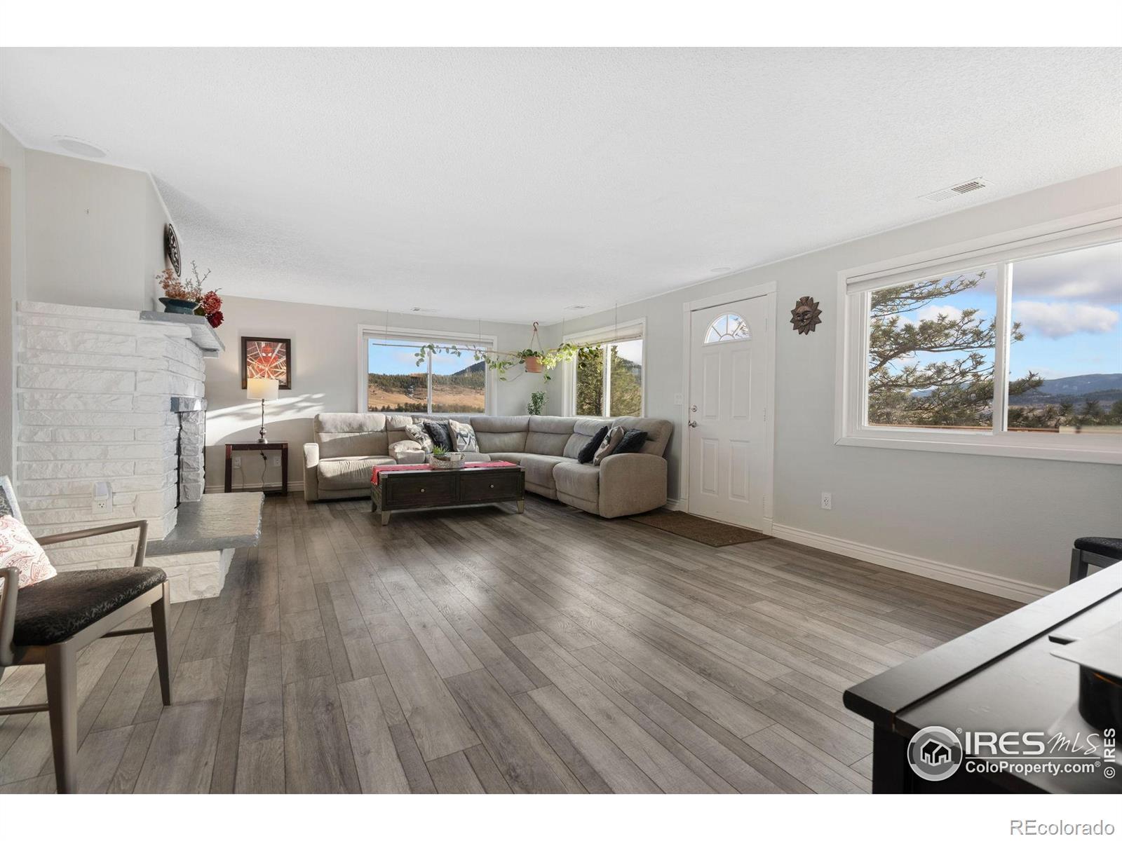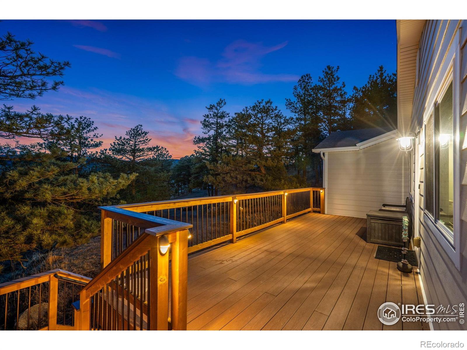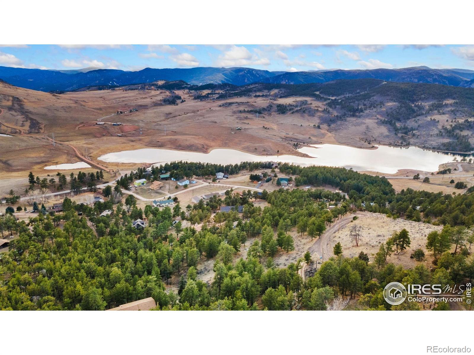 Enjoy breathtaking views in every direction from this private 2 acre mountain retreat nestled on the hillside overlooking Pinewood Reservoir. Not only is the scenery amazing, but the raised ranch home has undergone many upgrades that are sure to impress. The exterior has all new siding as well as a new wraparound trex deck & staircase to the front door. Step inside the bright & open living room with new luxury vinyl plank floors & cozy wood burning fireplace. Beautifully remodeled kitchen with custom alder soft close cabinets, drawers with pull-outs, high end stainless appliances with double ovens, & under cabinet lighting. The Primary suite is masterfully remodeled to include a massive walk-in closet that leads into a luxurious 5-piece "spa-like" bathroom with copper sinks, granite counters, oversized glass shower with pebble floor, & jetted tub with friction heater. Large secondary bedroom with built-in closet shelving has its own full bathroom. The walkout basement with brand new carpet includes a spacious rec room, bedroom, & attached remodeled 3/4 bathroom. Don't miss the detached bonus bedroom/studio with 2 heaters & electricity perfect for hobbies or guests. 2 year old furnace/AC unit, 1 year old water heater, & newly inspected/pumped septic system for peace of mind. Pinewood Reservoir includes a list of activities such as fishing, paddle boarding, kayaking, camping, hiking, picnicking, & more. With no HOA plus a quick drive into Loveland, this property is the perfect blend of remote living while still being close to town.