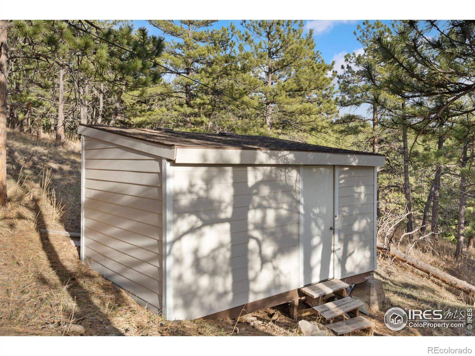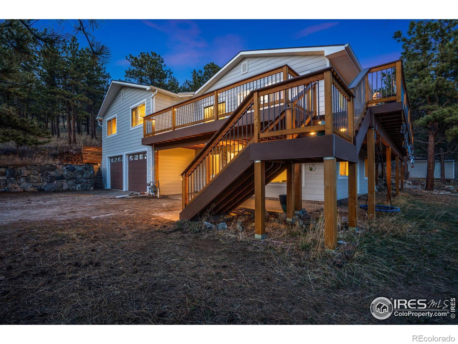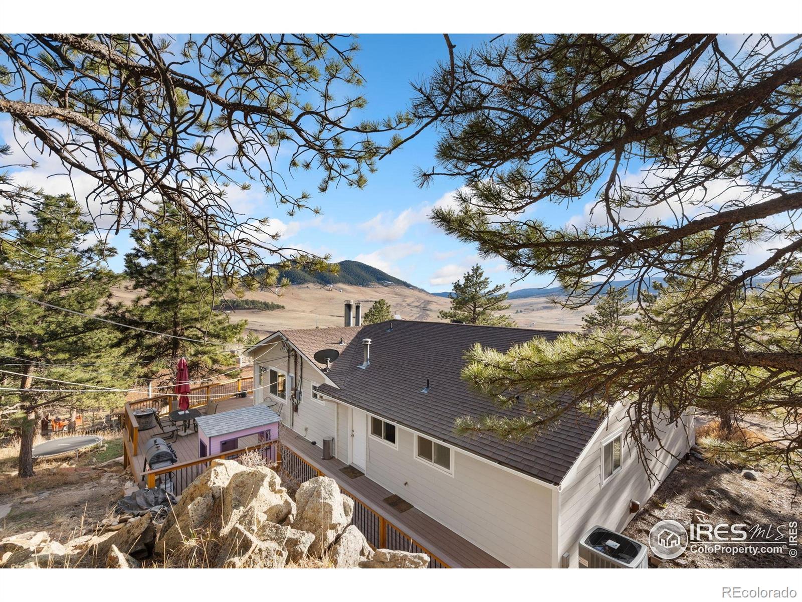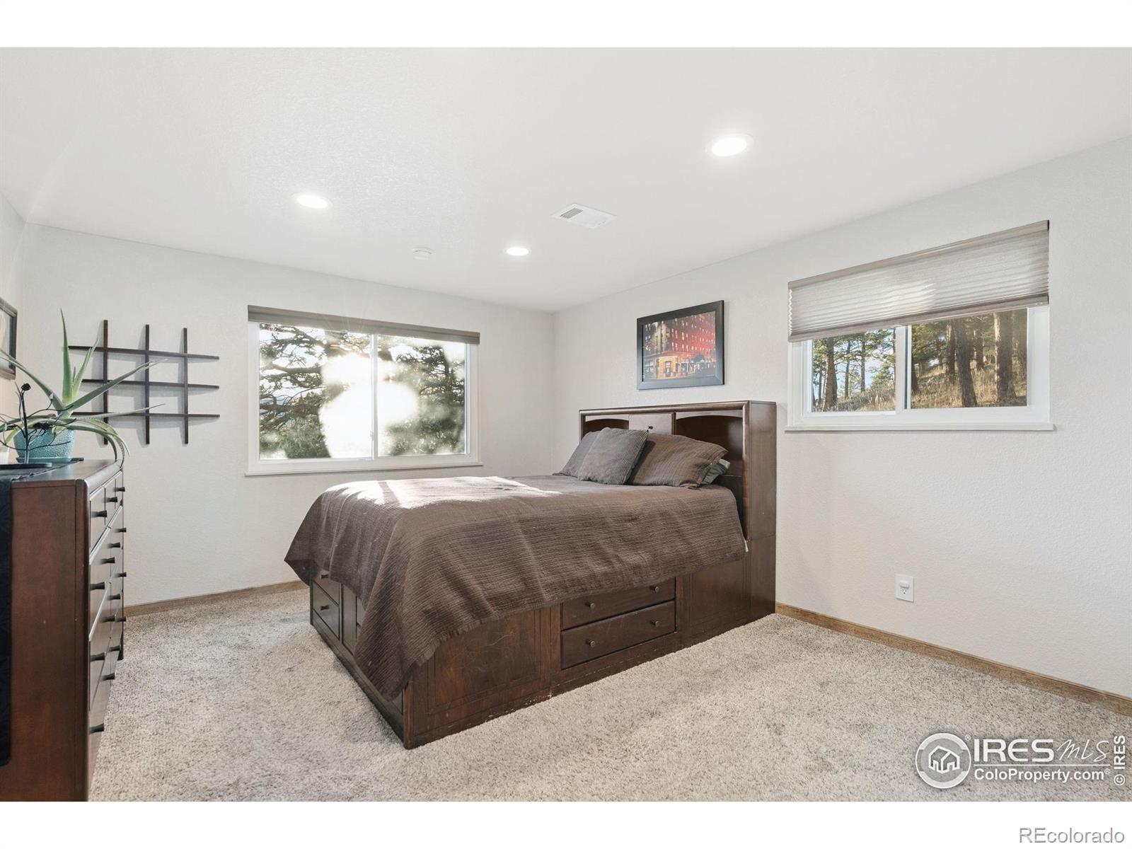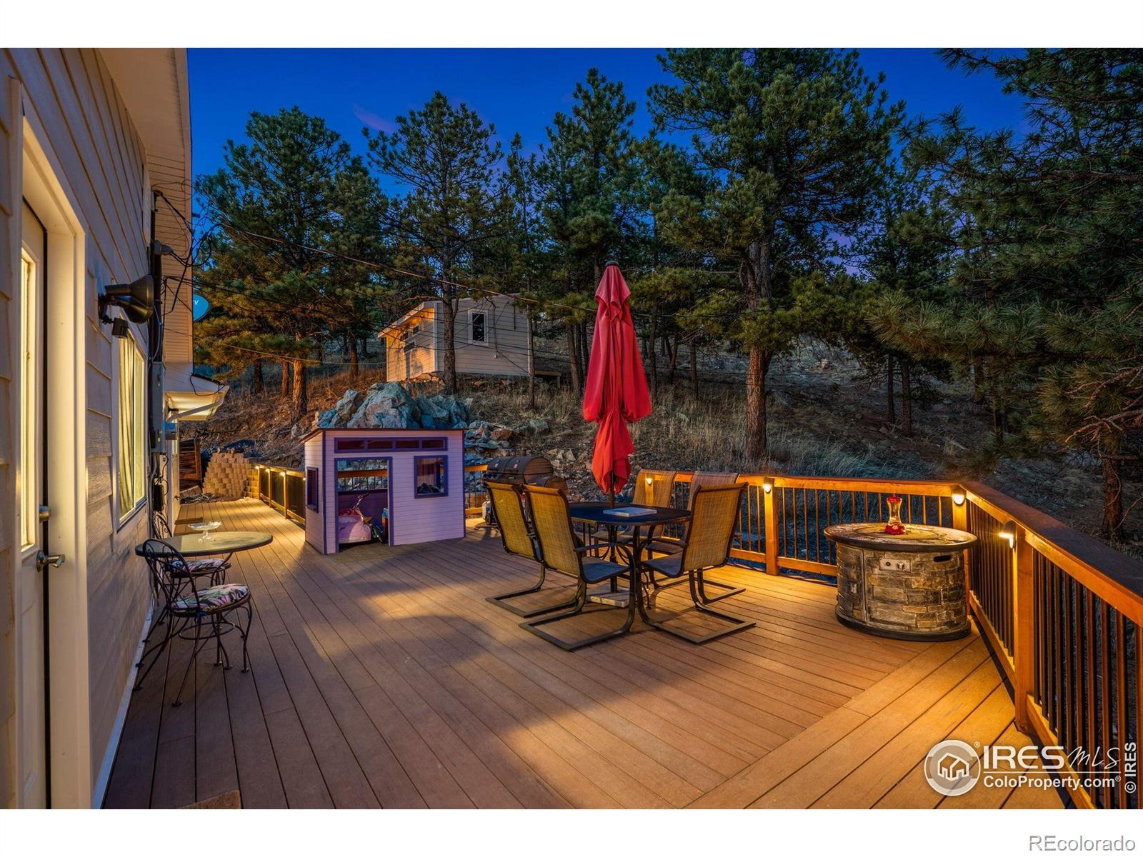 Enjoy breathtaking views in every direction from this private 2 acre mountain retreat nestled on the hillside overlooking Pinewood Reservoir. Not only is the scenery amazing, but the raised ranch home has undergone many upgrades that are sure to impress. The exterior has all new siding as well as a new wraparound trex deck & staircase to the front door. Step inside the bright & open living room with new luxury vinyl plank floors & cozy wood burning fireplace. Beautifully remodeled kitchen with custom alder soft close cabinets, drawers with pull-outs, high end stainless appliances with double ovens, & under cabinet lighting. The Primary suite is masterfully remodeled to include a massive walk-in closet that leads into a luxurious 5-piece "spa-like" bathroom with copper sinks, granite counters, oversized glass shower with pebble floor, & jetted tub with friction heater. Large secondary bedroom with built-in closet shelving has its own full bathroom. The walkout basement with brand new carpet includes a spacious rec room, bedroom, & attached remodeled 3/4 bathroom. Don't miss the detached bonus bedroom/studio with 2 heaters & electricity perfect for hobbies or guests. 2 year old furnace/AC unit, 1 year old water heater, & newly inspected/pumped septic system for peace of mind. Pinewood Reservoir includes a list of activities such as fishing, paddle boarding, kayaking, camping, hiking, picnicking, & more. With no HOA plus a quick drive into Loveland, this property is the perfect blend of remote living while still being close to town.