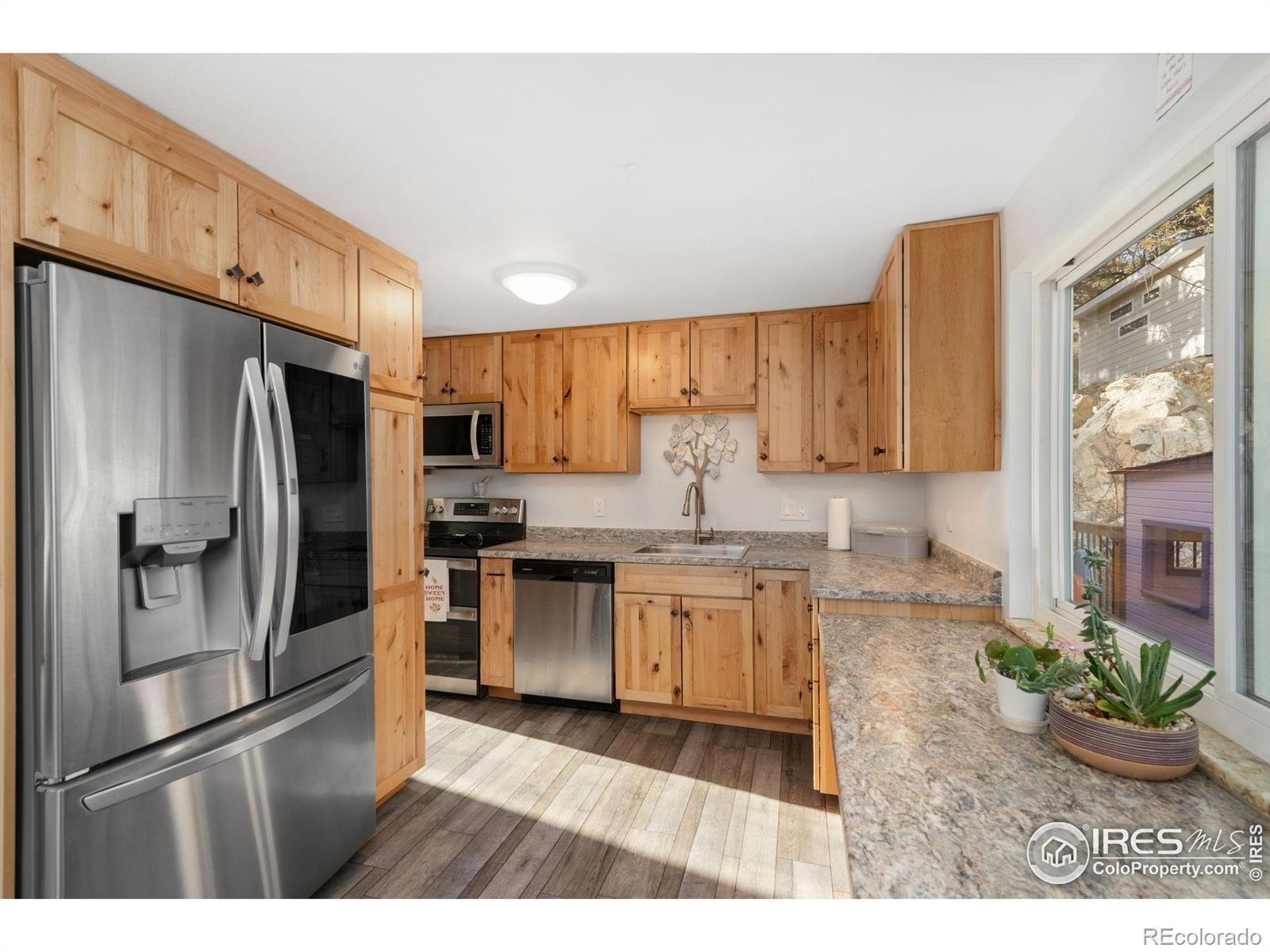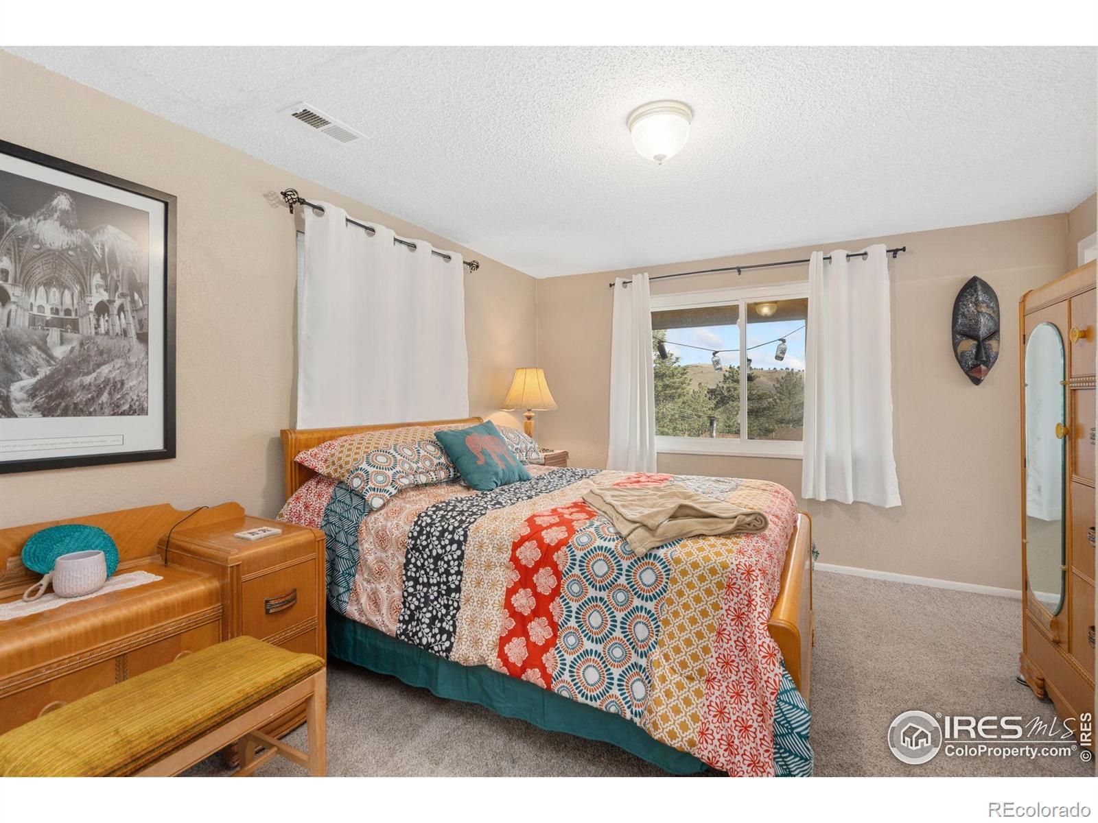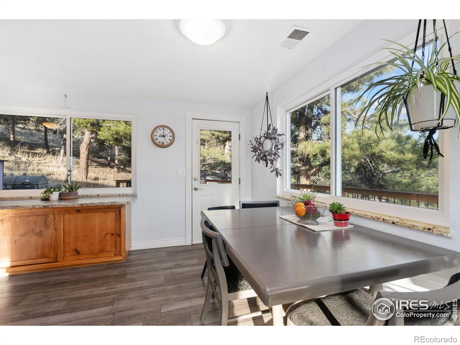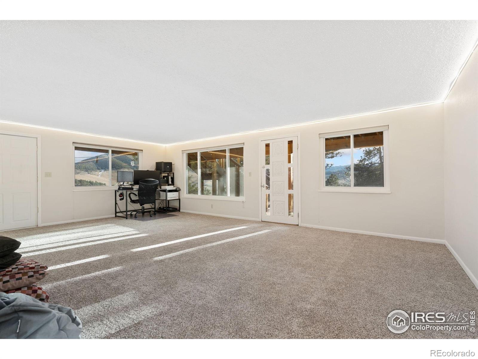 Enjoy breathtaking views in every direction from this private 2 acre mountain retreat nestled on the hillside overlooking Pinewood Reservoir. Not only is the scenery amazing, but the raised ranch home has undergone many upgrades that are sure to impress. The exterior has all new siding as well as a new wraparound trex deck & staircase to the front door. Step inside the bright & open living room with new luxury vinyl plank floors & cozy wood burning fireplace. Beautifully remodeled kitchen with custom alder soft close cabinets, drawers with pull-outs, high end stainless appliances with double ovens, & under cabinet lighting. The Primary suite is masterfully remodeled to include a massive walk-in closet that leads into a luxurious 5-piece "spa-like" bathroom with copper sinks, granite counters, oversized glass shower with pebble floor, & jetted tub with friction heater. Large secondary bedroom with built-in closet shelving has its own full bathroom. The walkout basement with brand new carpet includes a spacious rec room, bedroom, & attached remodeled 3/4 bathroom. Don't miss the detached bonus bedroom/studio with 2 heaters & electricity perfect for hobbies or guests. 2 year old furnace/AC unit, 1 year old water heater, & newly inspected/pumped septic system for peace of mind. Pinewood Reservoir includes a list of activities such as fishing, paddle boarding, kayaking, camping, hiking, picnicking, & more. With no HOA plus a quick drive into Loveland, this property is the perfect blend of remote living while still being close to town.
