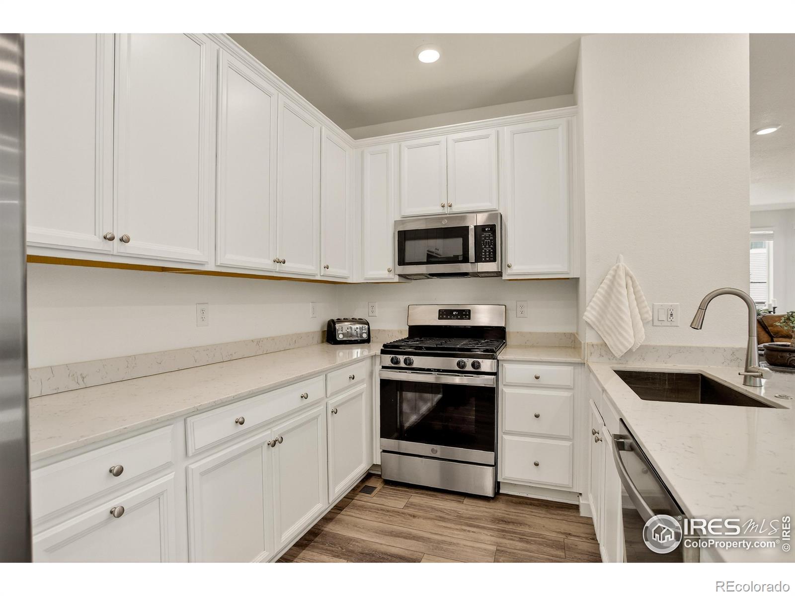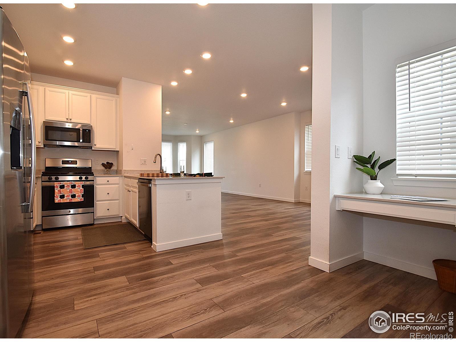 Amazing deal - Price reduced 35k! Newer paired home in Erie's Compass neighborhood - West of County Line Road so Boulder County in the desired Boulder Valley School District! Over 1500 finished sq. feet with 3 beds, 3 baths & oversized 2-car attached garage. You'll love the trex deck, astroturf yard plus a covered front porch. LVP on the whole first floor. Open & bright kitchen w/ ss appliances, quartz counters, gas range/oven, pantry & built-in desk. Upstairs bathrooms also have quartz counters. Upgrades - 42 inch cabs & 2 inch blinds. Monthly HOA fee includes trash, alley snow removal & several neighborhood parks & walking trails! Full basement (w/9 foot ceilings) to finish for more space & already has radon mitigation. Great location - close to Boulder, Denver, I25 and DIA.