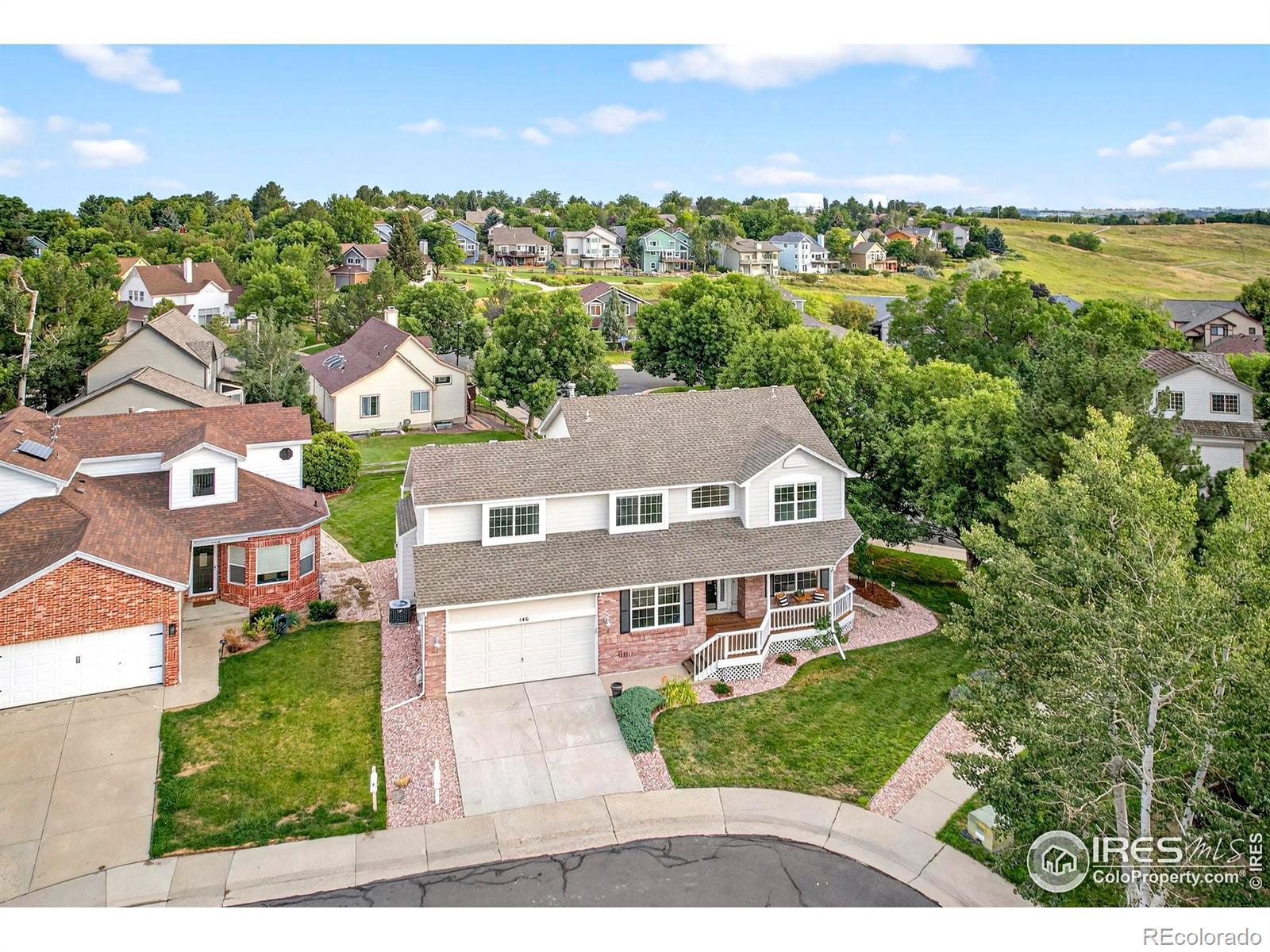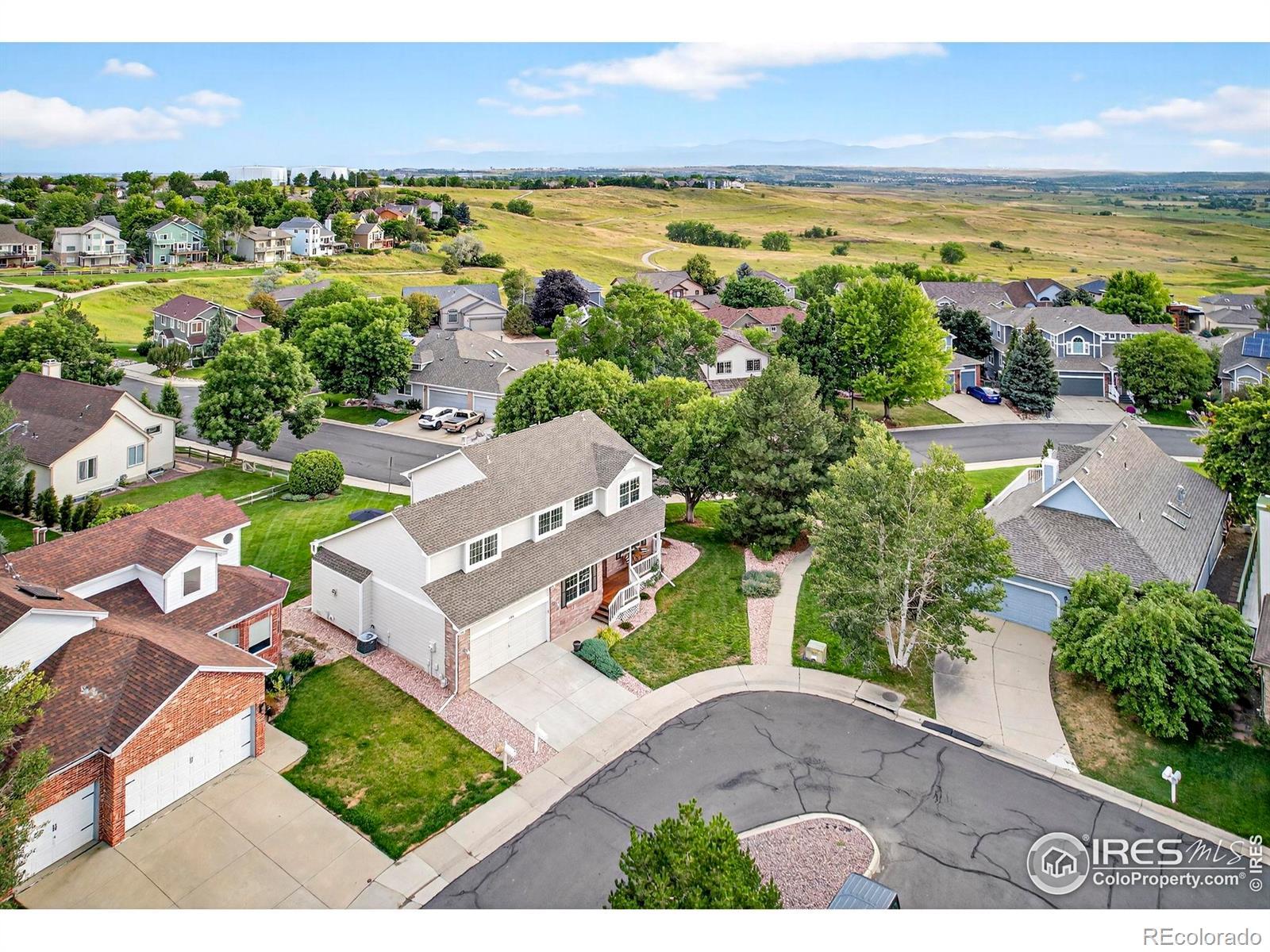 Perfectly positioned on a quiet cul-de-sac, this beautifully cared-for home offers timeless appeal and checks every box for today's buyer. With 4 bedrooms, 3 baths, a main floor study, plus formal and casual living spaces, it will be easy to settle in and feel right at home. Fresh paint, new carpet, and newly refinished hardwood floors give the home a crisp, updated feel-plus the peace of mind of a brand-new roof to be installed with a contract before closing. Stylish yet comfortable, the vaulted family room features a striking chandelier, a gas fireplace framed by built-in bookshelves, and easy access to the large deck and generous backyard. The crisp white kitchen is light, bright, and designed for both everyday living and easy entertaining. It boasts an induction stove/range, granite countertops and a brand-new smart stainless refrigerator. The dedicated main floor study offers a quiet space for work, while the private powder bath and main floor laundry (with included washer and dryer) add everyday convenience. Upstairs, the primary suite feels like a true retreat with a soaking tub, radiant heated floors, a marble double vanity, and a spacious walk-in closet. The secondary bedrooms are surprisingly generous, and the upper-level layout includes a laundry chute-a fun and functional touch. The unfinished basement adds future potential, and thoughtful upgrades throughout the home enhance comfort and convenience: coffered and vaulted ceilings, high baseboards, central A/C, Ecobee smart thermostat, smart garage door opener, gas grill, front and back sprinkler system, newer exterior paint, and a darling front porch. The 2-car attached garage completes the package. And best of all, this home is nestled in one of Broomfield's most treasured neighborhoods-offering access to miles of scenic trails and top-rated Boulder Valley schools. With fresh updates, timeless appeal, and a layout that fits just right, plus low taxes and HOA this is one you won't want to miss!