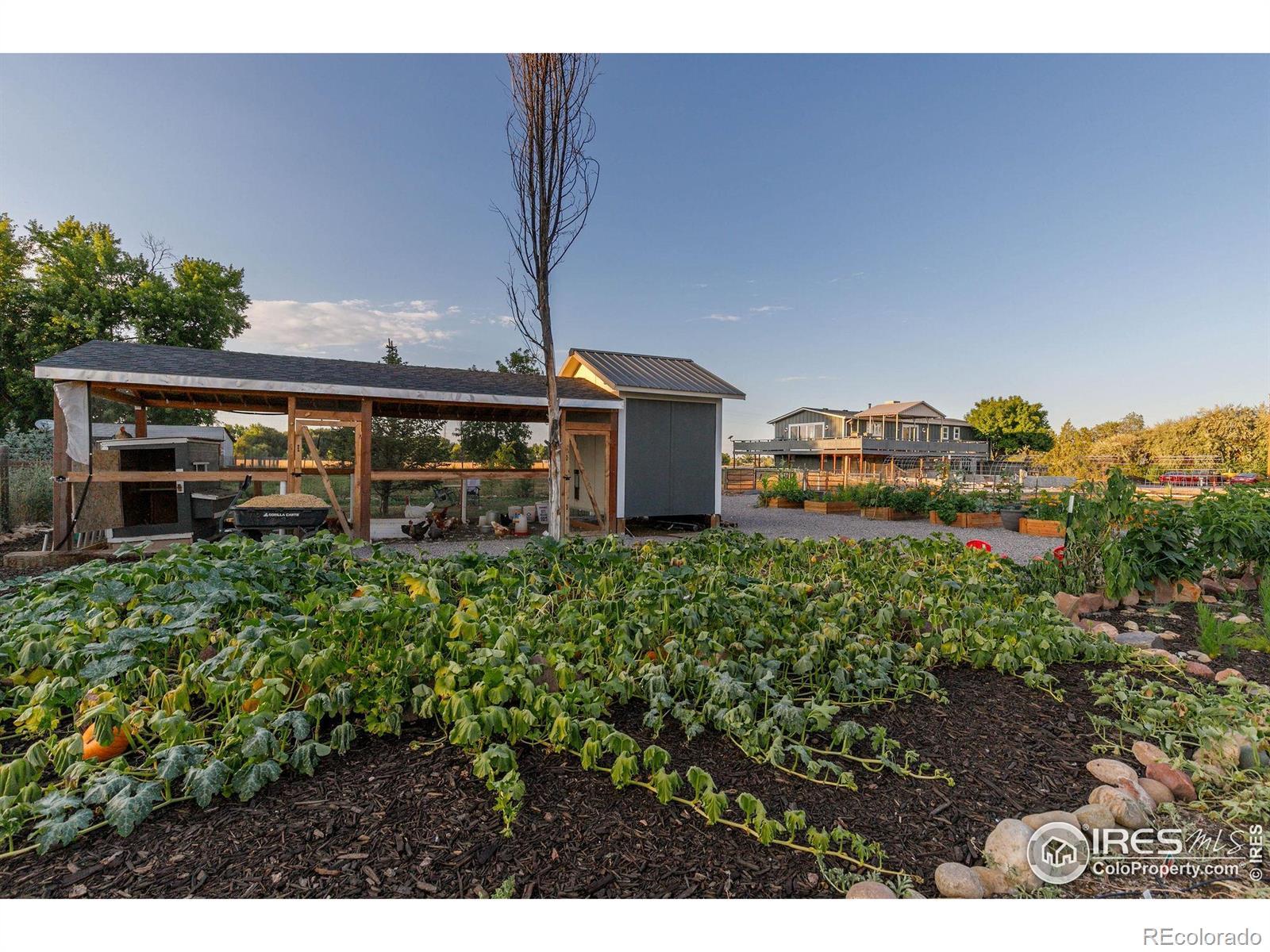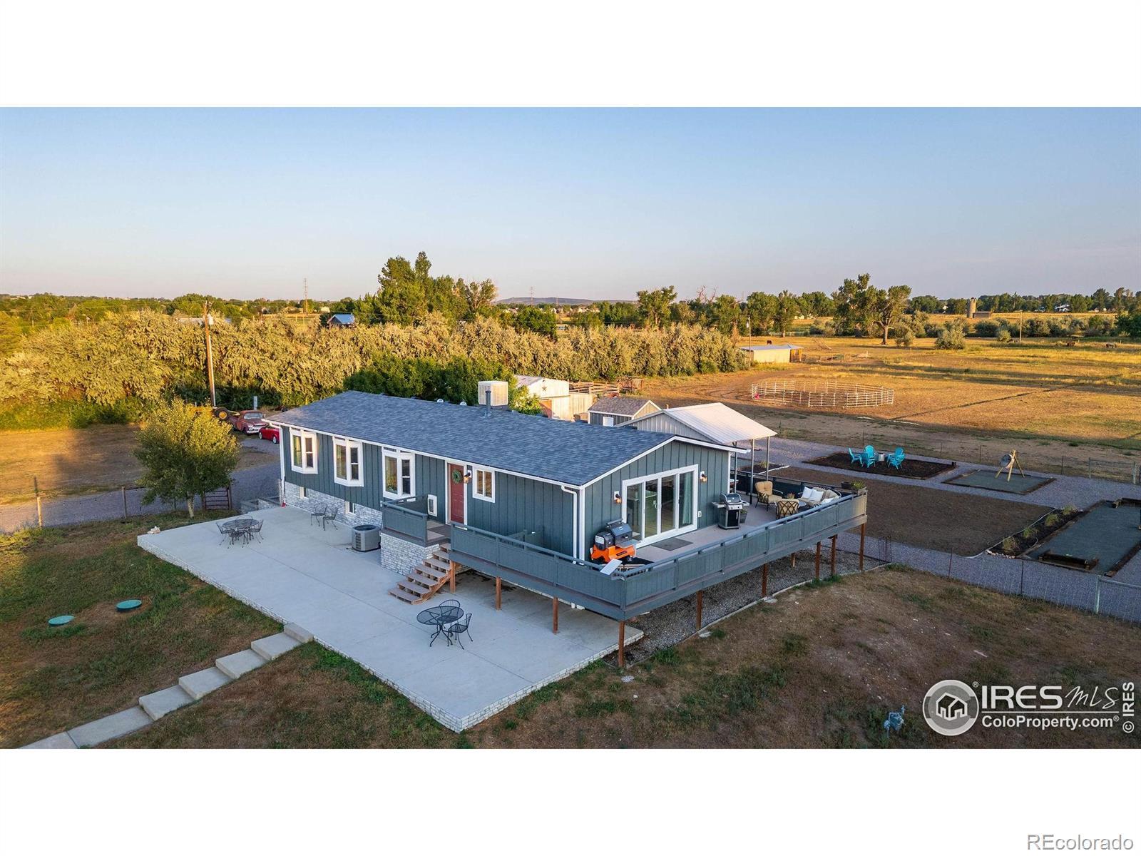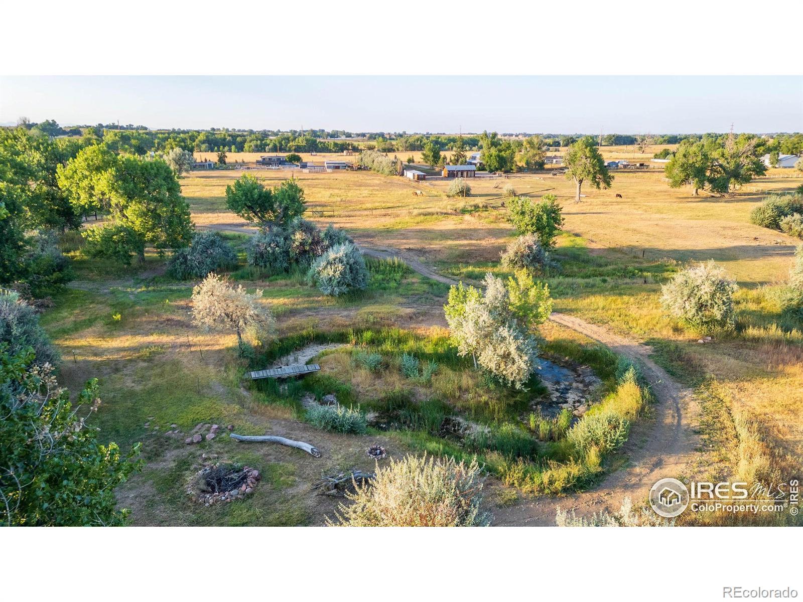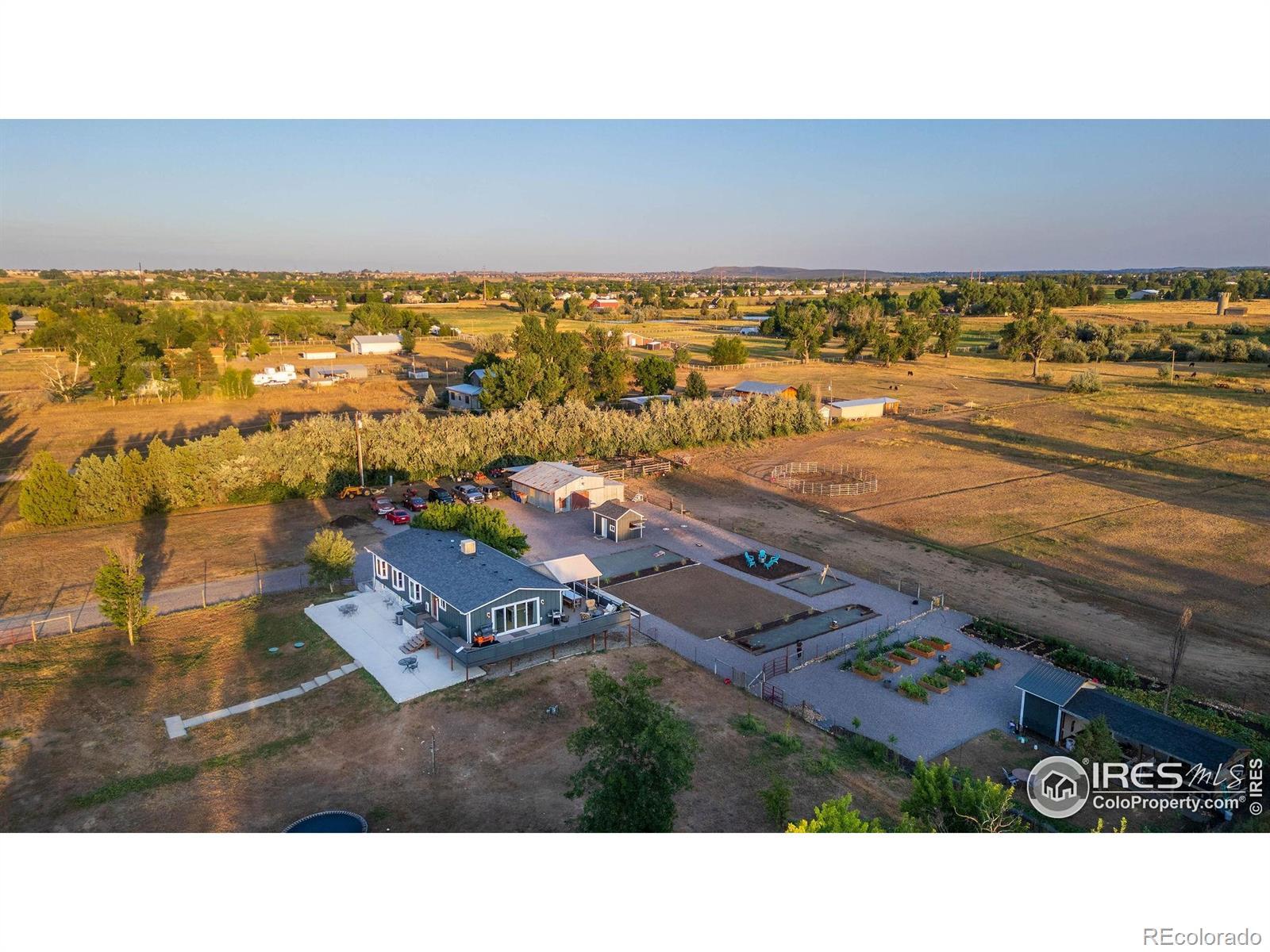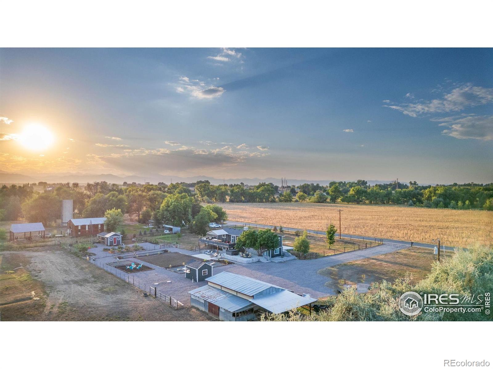 New Price! 10-Acre Mountain View Paradise & Erie Annexation. Discover a rare Colorado gem: 10 acres of privacy surrounded by 1,000 acres of open space, offering mountain views, farm amenities, and unmatched future potential. Agricultural zoning, shared irrigation water rights, city water to the house, and a private well make this property as practical as it is beautiful. A seasonal pond w/ an island and bridge creates the perfect backdrop for entertaining. The ranch style home walk-out basement was completely taken down to the studs in 2020 and rebuilt with comfort and durability in mind. Updates include upgraded insulation, James Hardie cement siding, new roof with gutters, energy-efficient windows, plumbing, electrical, HVAC, and a full interior remodel. Inside you'll find a chef's kitchen with custom cabinetry, a floor-to-ceiling pantry with pull-out drawers, and a 12-foot island designed for gatherings. Fresh living spaces, remodeled bathrooms, a primary suite with en-suite bath, and four additional bedrooms make this home truly move-in ready. Outdoors, the property offers a 10k SF garden with raised beds, melon/pumpkin patches, and orchard. A covered chicken coop with a large run set on a concrete perimeter provides both space and security, while the classic barn features 2 horse stalls and a lean-to area for additional animals or storage. For recreation enjoy a semi wrap-around deck, 4 concrete patios with accent finishes and sit walls, a fire pit, horseshoe, cornhole, and axe-throwing pits, and a bar/shed. Recent annexation into the Town of Erie unlocks extraordinary possibilities. Unlike neighboring Boulder County properties, this parcel allows flexibility to add structures, build an ADU, host farm events, or even scrape/rebuild without size restrictions. Whether you're envisioning a private retreat, hobby farm, or event venue, this property delivers a lifestyle rarely available with such sweeping views and long-term potential.