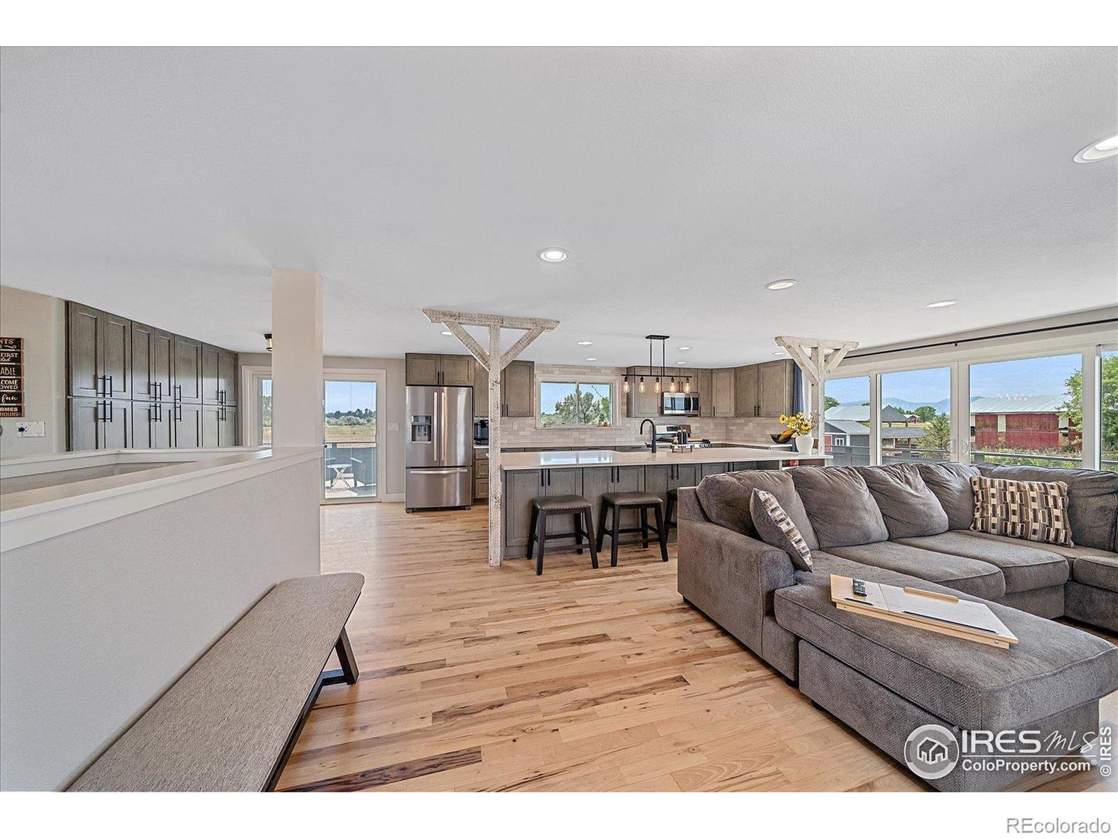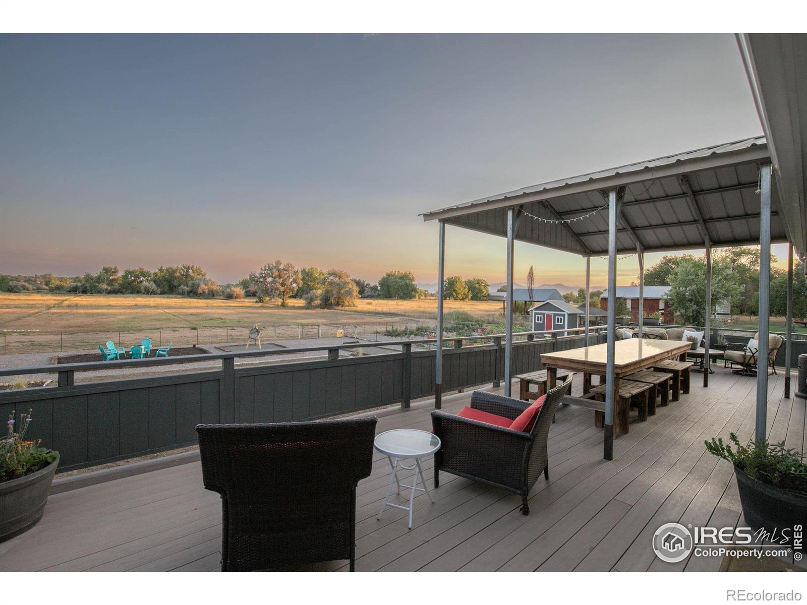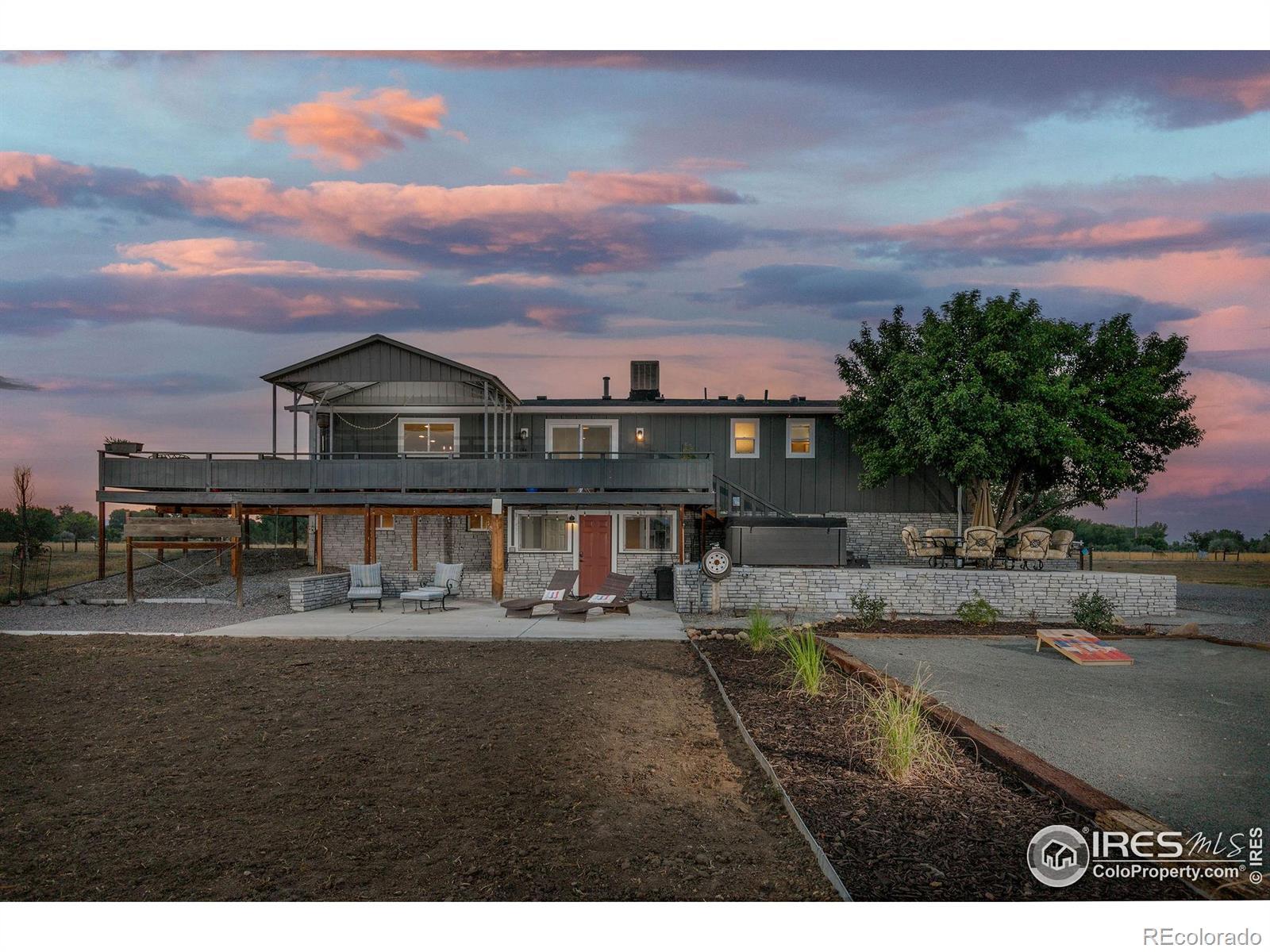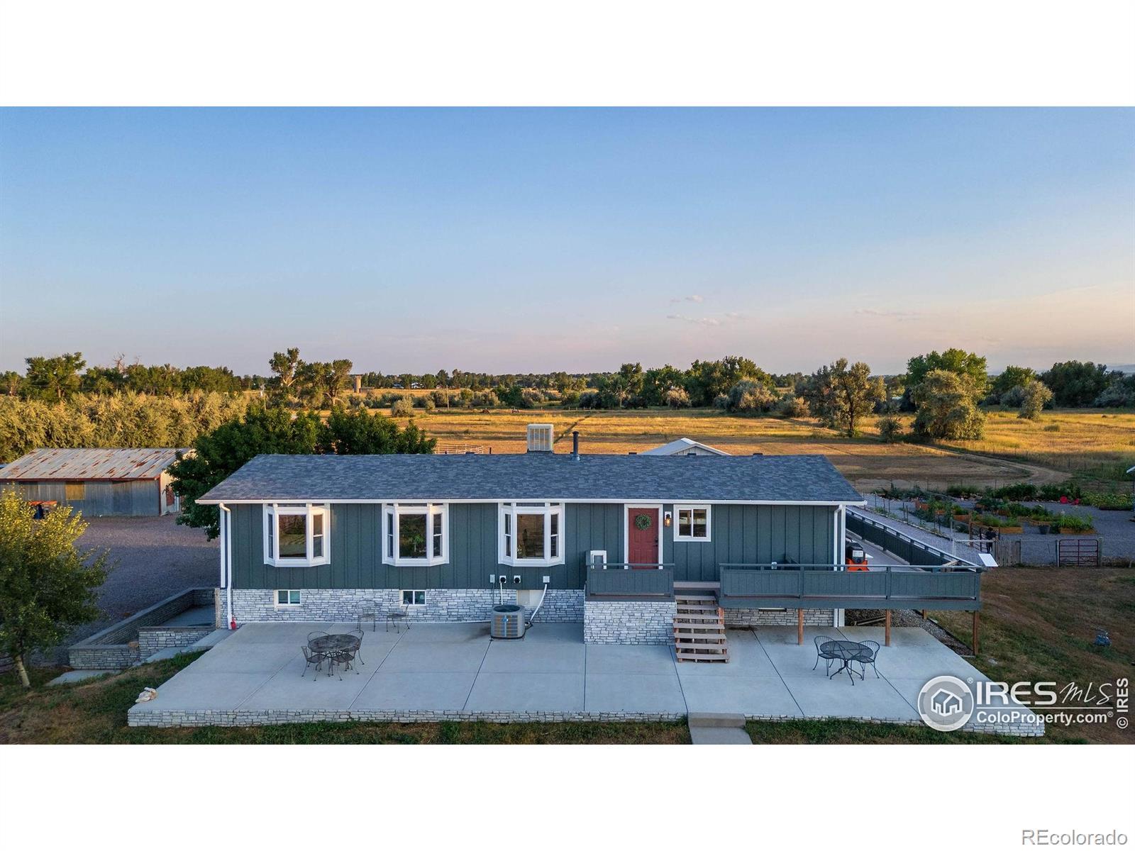 New Price! 10-Acre Mountain View Paradise & Erie Annexation. Discover a rare Colorado gem: 10 acres of privacy surrounded by 1,000 acres of open space, offering mountain views, farm amenities, and unmatched future potential. Agricultural zoning, shared irrigation water rights, city water to the house, and a private well make this property as practical as it is beautiful. A seasonal pond w/ an island and bridge creates the perfect backdrop for entertaining. The ranch style home walk-out basement was completely taken down to the studs in 2020 and rebuilt with comfort and durability in mind. Updates include upgraded insulation, James Hardie cement siding, new roof with gutters, energy-efficient windows, plumbing, electrical, HVAC, and a full interior remodel. Inside you'll find a chef's kitchen with custom cabinetry, a floor-to-ceiling pantry with pull-out drawers, and a 12-foot island designed for gatherings. Fresh living spaces, remodeled bathrooms, a primary suite with en-suite bath, and four additional bedrooms make this home truly move-in ready. Outdoors, the property offers a 10k SF garden with raised beds, melon/pumpkin patches, and orchard. A covered chicken coop with a large run set on a concrete perimeter provides both space and security, while the classic barn features 2 horse stalls and a lean-to area for additional animals or storage. For recreation enjoy a semi wrap-around deck, 4 concrete patios with accent finishes and sit walls, a fire pit, horseshoe, cornhole, and axe-throwing pits, and a bar/shed. Recent annexation into the Town of Erie unlocks extraordinary possibilities. Unlike neighboring Boulder County properties, this parcel allows flexibility to add structures, build an ADU, host farm events, or even scrape/rebuild without size restrictions. Whether you're envisioning a private retreat, hobby farm, or event venue, this property delivers a lifestyle rarely available with such sweeping views and long-term potential.