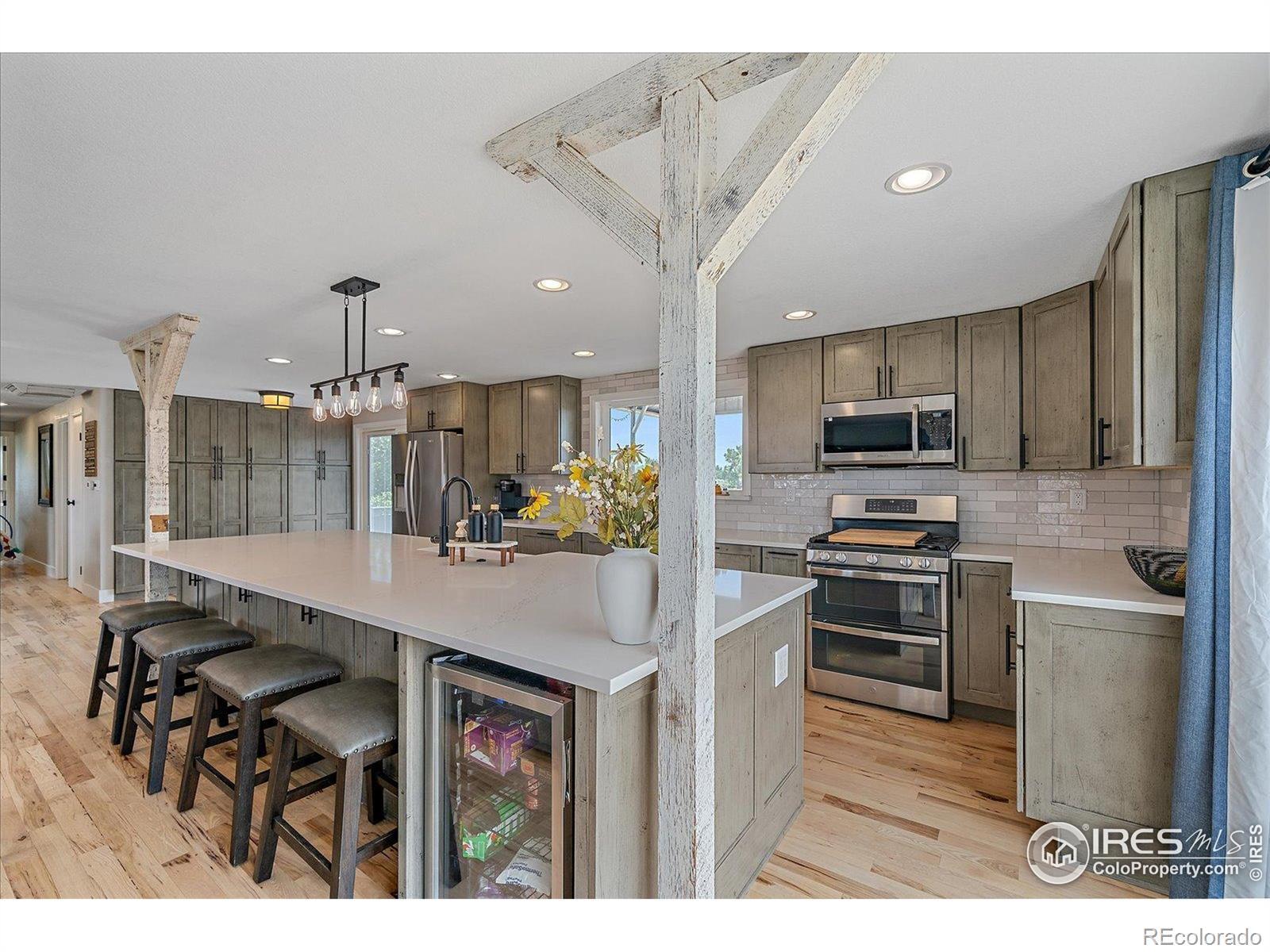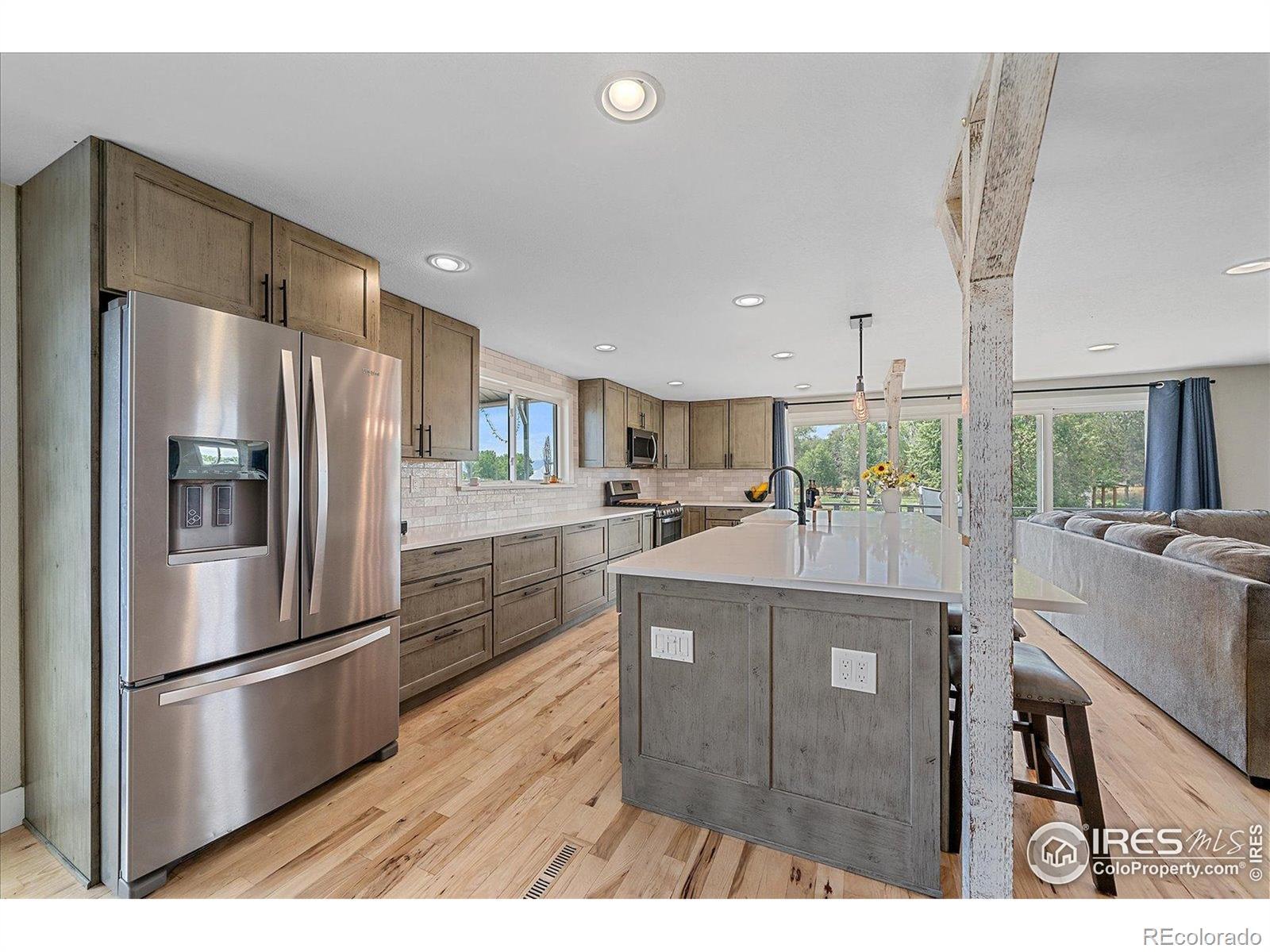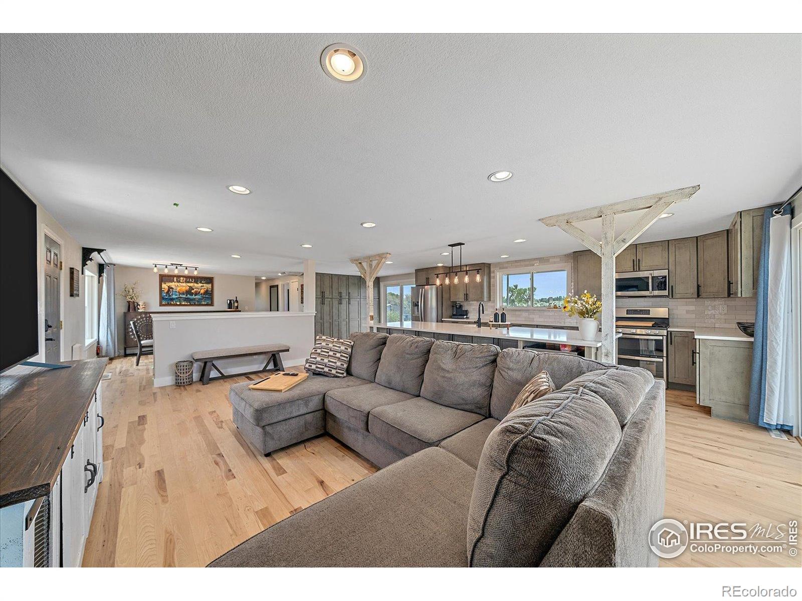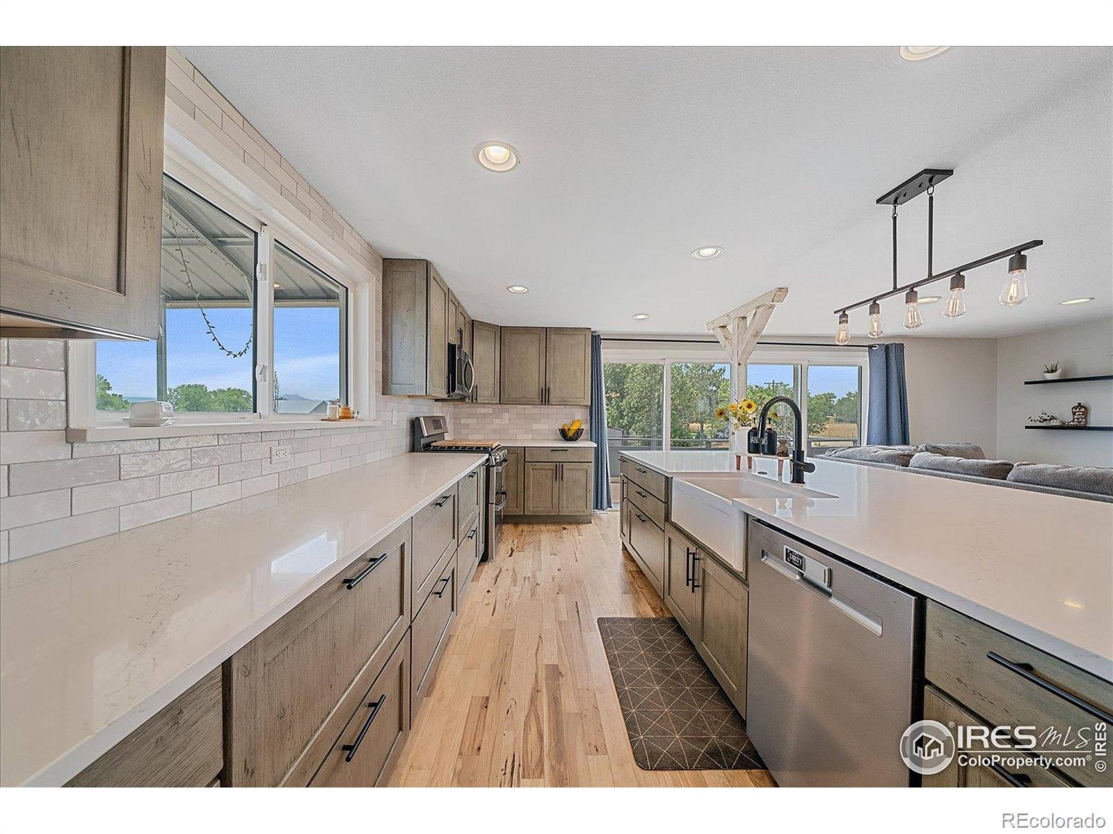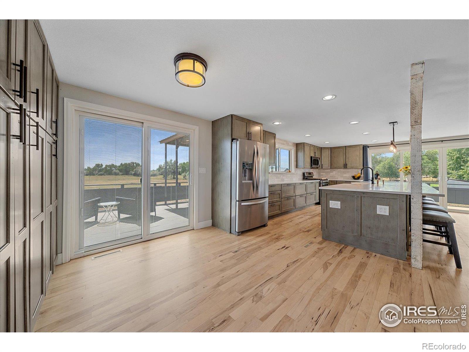 New Price! 10-Acre Mountain View Paradise & Erie Annexation. Discover a rare Colorado gem: 10 acres of privacy surrounded by 1,000 acres of open space, offering mountain views, farm amenities, and unmatched future potential. Agricultural zoning, shared irrigation water rights, city water to the house, and a private well make this property as practical as it is beautiful. A seasonal pond w/ an island and bridge creates the perfect backdrop for entertaining. The ranch style home walk-out basement was completely taken down to the studs in 2020 and rebuilt with comfort and durability in mind. Updates include upgraded insulation, James Hardie cement siding, new roof with gutters, energy-efficient windows, plumbing, electrical, HVAC, and a full interior remodel. Inside you'll find a chef's kitchen with custom cabinetry, a floor-to-ceiling pantry with pull-out drawers, and a 12-foot island designed for gatherings. Fresh living spaces, remodeled bathrooms, a primary suite with en-suite bath, and four additional bedrooms make this home truly move-in ready. Outdoors, the property offers a 10k SF garden with raised beds, melon/pumpkin patches, and orchard. A covered chicken coop with a large run set on a concrete perimeter provides both space and security, while the classic barn features 2 horse stalls and a lean-to area for additional animals or storage. For recreation enjoy a semi wrap-around deck, 4 concrete patios with accent finishes and sit walls, a fire pit, horseshoe, cornhole, and axe-throwing pits, and a bar/shed. Recent annexation into the Town of Erie unlocks extraordinary possibilities. Unlike neighboring Boulder County properties, this parcel allows flexibility to add structures, build an ADU, host farm events, or even scrape/rebuild without size restrictions. Whether you're envisioning a private retreat, hobby farm, or event venue, this property delivers a lifestyle rarely available with such sweeping views and long-term potential.