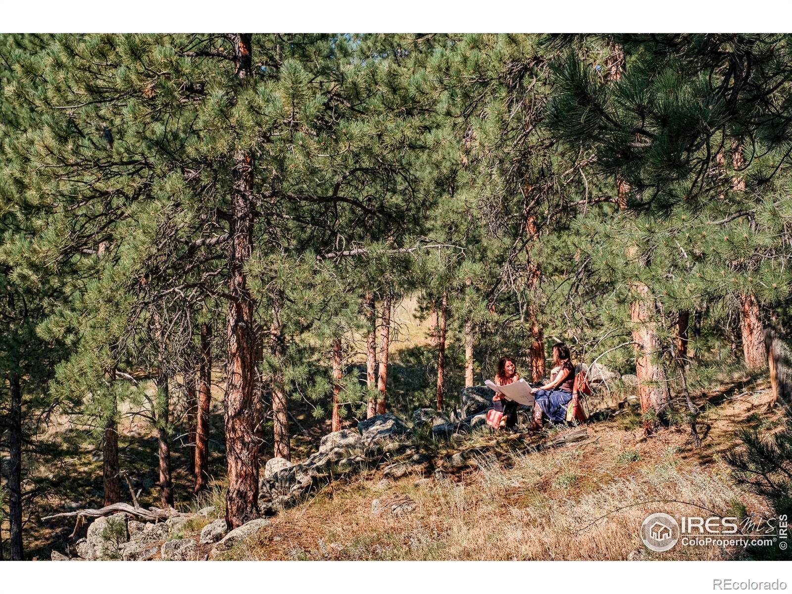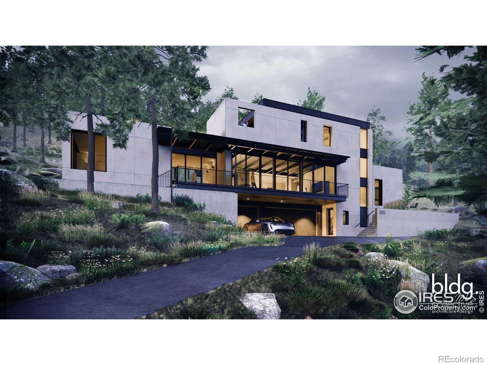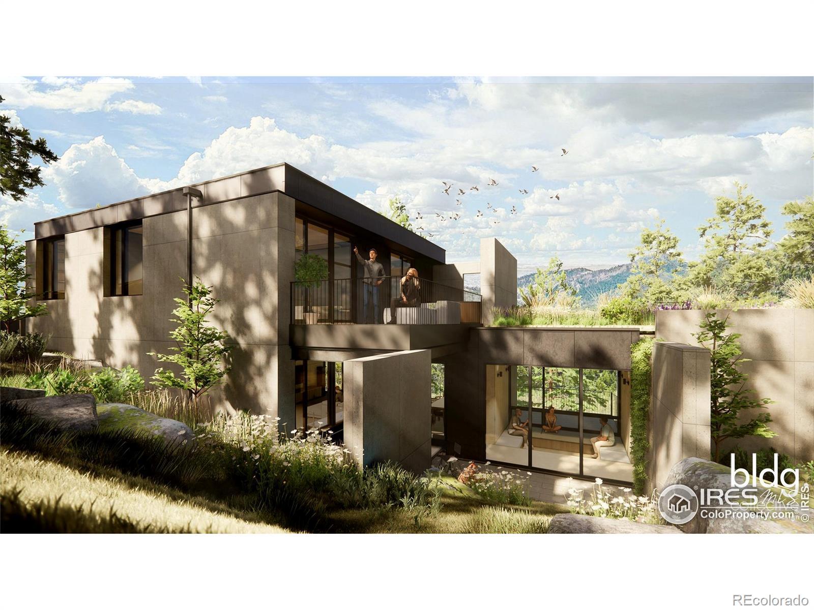 A striking vision of modern architecture awaits on this 17-acre parcel in Carriage Hill Estates, a gated mountain community offering unrivaled privacy and sweeping views. This sprawling property is immersed in views of Denver's skyline, a sea of evergreens and the intimacy of the forest surrounding it. Boldy envisioned by the renowned bldg.collective architecture + design, this 5,000-SF residence harmonizes with its natural setting, featuring southern exposure, a green roof, and a powerful, high-efficiency concrete structure with solar panels The open-concept floor plan can accommodate 3-4 bedrooms & 3-4 baths, and multiple private and semi-private living areas-perfect for flexibility and entertaining. An expansive deck invites seamless indoor-outdoor living, immersing you in the serene mountain landscape while remaining just minutes from North Boulder amenities.The $5,950,000 list price includes land, building plans, shovel-ready approved permits, and projected build costs with acclaimed Silver Lining Builders, who are uniquely familiar with the site and design to ensure a streamlined process & seamless execution. Silver Lining Builders will assist buyer in curating the finish selections, with a 12-month projected build time. Land, plans, and permits may also be purchased separately at a lower price, allowing the buyer to bring their own builder-though working with Silver Lining ensures the smoothest path to realizing this architecturally significant home. Estimated 12-month build time from ground breaking
