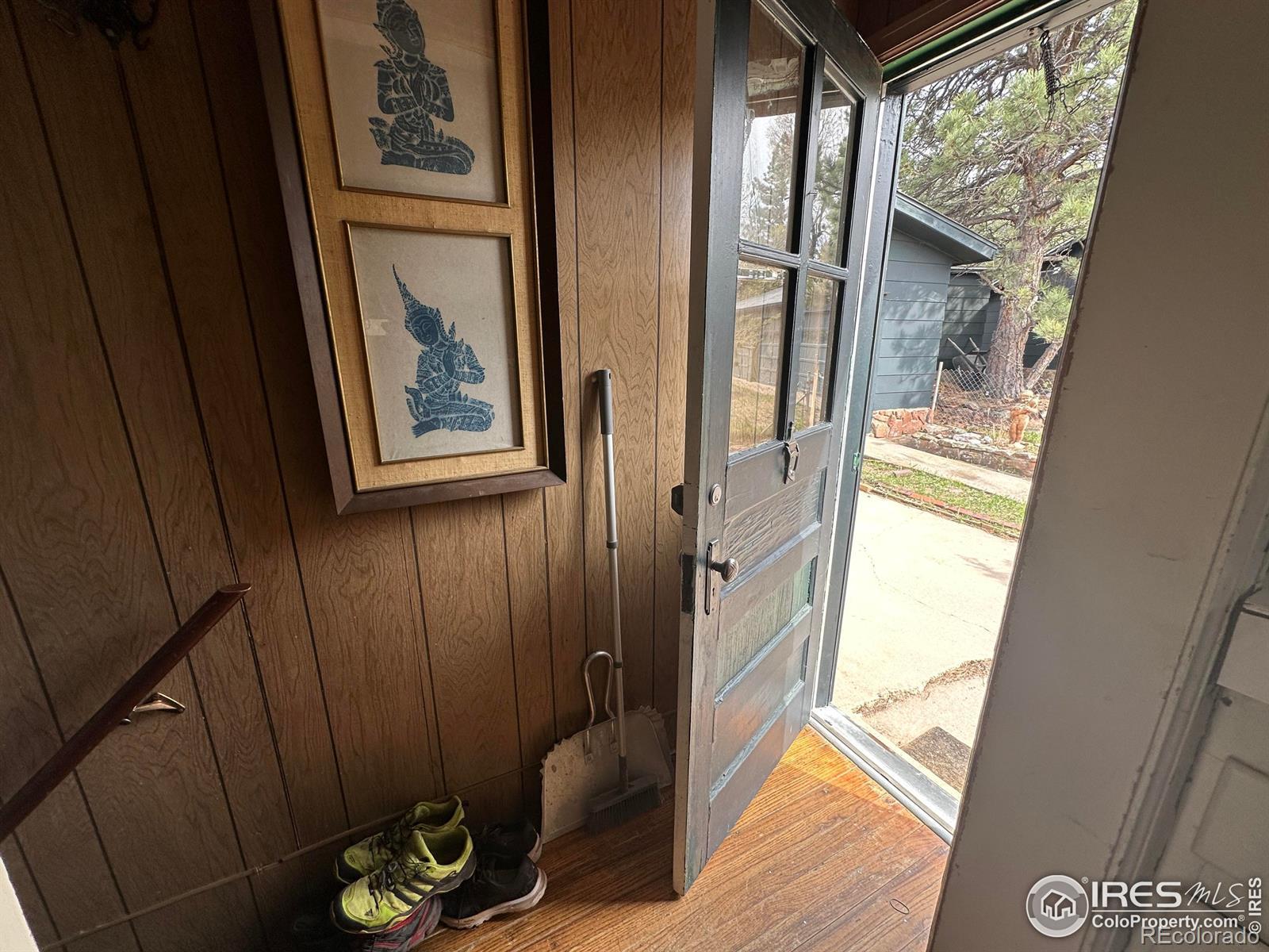 A Legacy at the Lake - Ready for Its Next Chapter. Room Measurements are coming. For over 65 years, this beloved lake home has been the backdrop for four generations of memories. Now, it's ready to welcome a new family and a fresh vision. Bring your creativity-whether it's personal touches, a full renovation, or a complete redesign, you can reinvent your dream lake home here. Just minutes from the shores of Carter Lake and embraced by mature trees, the property offers the perfect mix of seclusion and outdoor adventure. Nestled on a hillside, this 3 bedroom home, 2 bath,has original wood floors on the main level. The basement is a walk out. Plenty of storage in the 2 outbuildings and 4 car garage with space for boats and outdoor entertaining under Colorado's big sky. Original hardwood floors throughout upstairs. Cozy kitchen opens to formal dining through an arched doorway. Westfacing Sunroom with a wall of windows provides views of foothills and beautiful sunsets. A lovely living room with brick wood fireplace and windows provides bright and cozy days in winter. Originally built in Denver in 1939, the home was relocated to Carter Lake in the early 1960s, first serving as a summer retreat before becoming a year-round residence in the 1970s. A minimal fee covers road maintenance, keeping life here simple and relaxed. Here, every day feels like a getaway