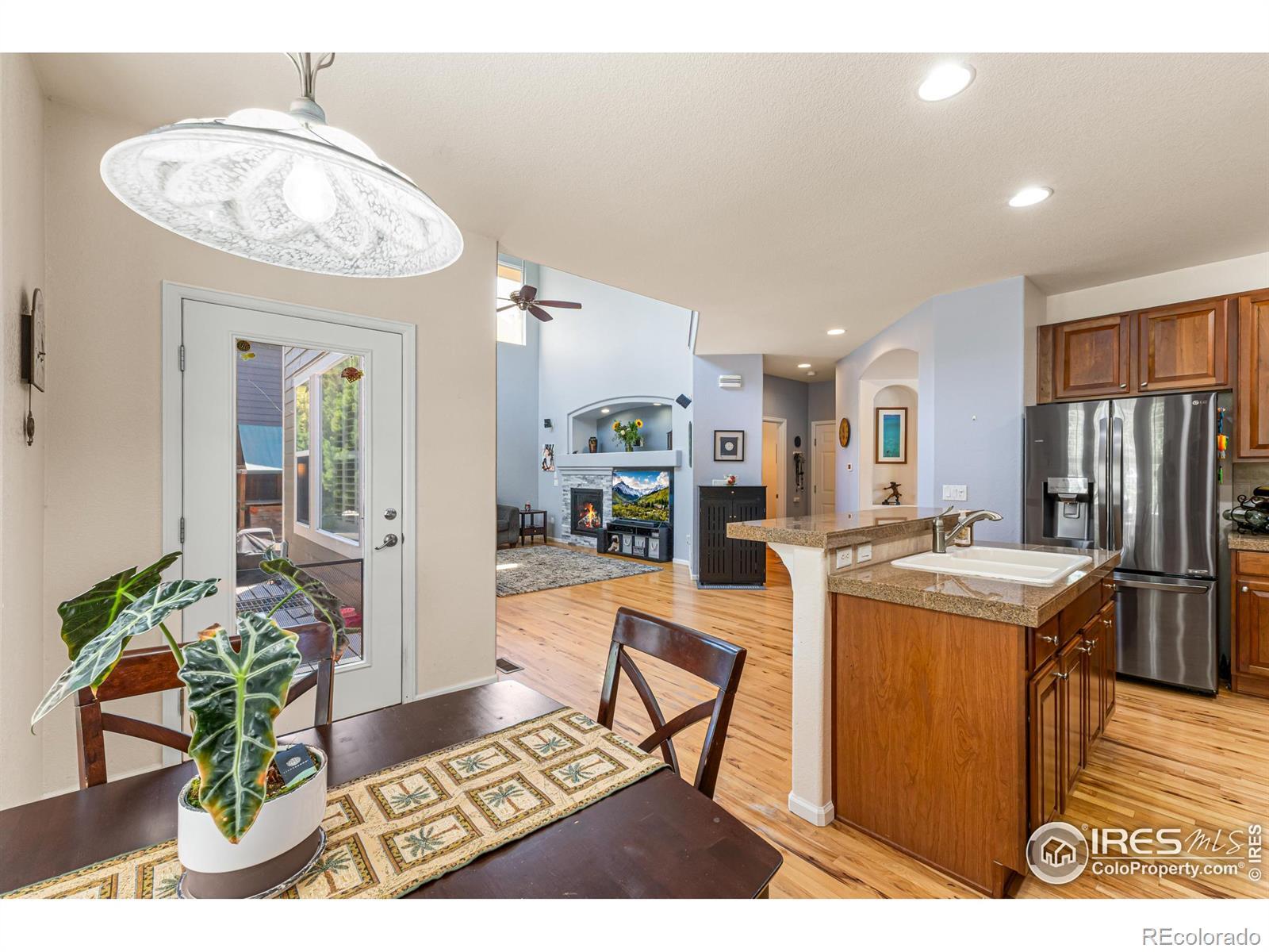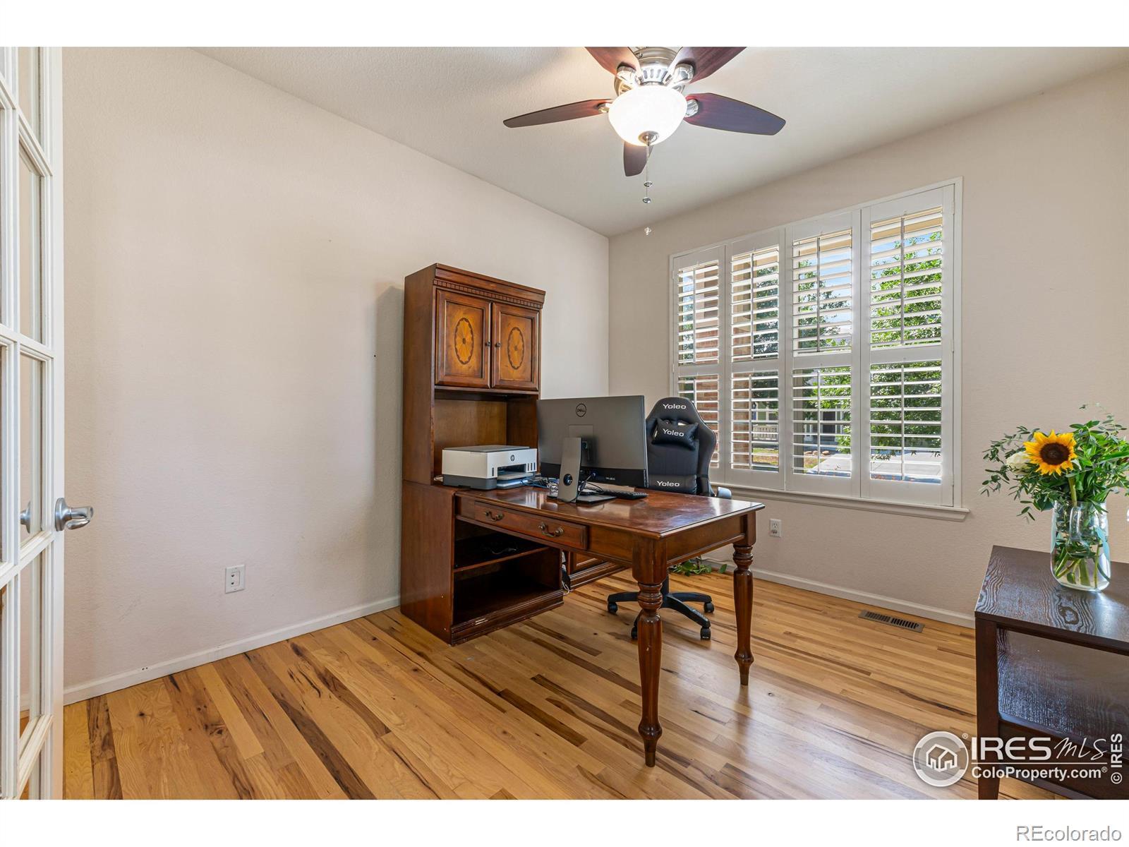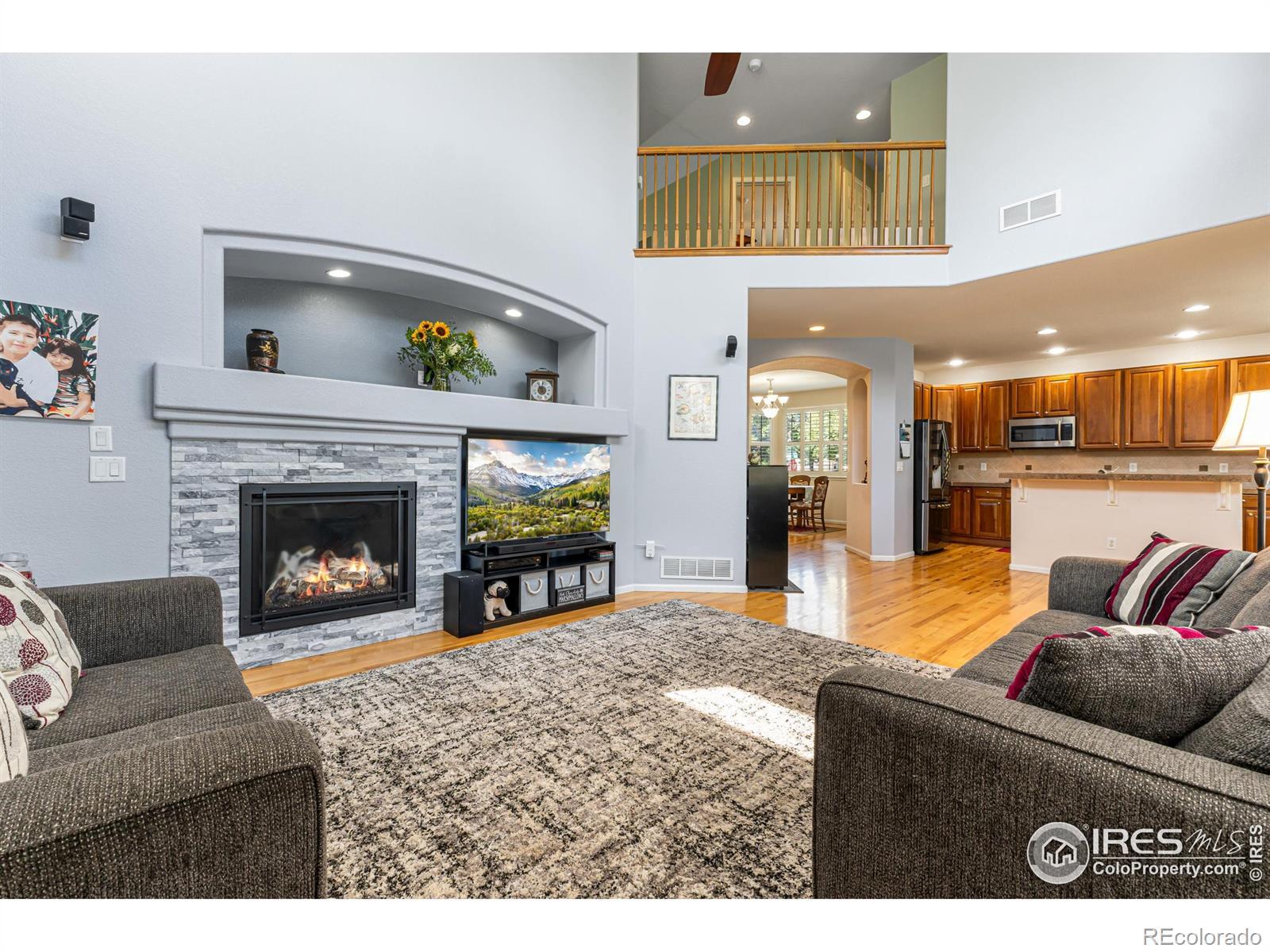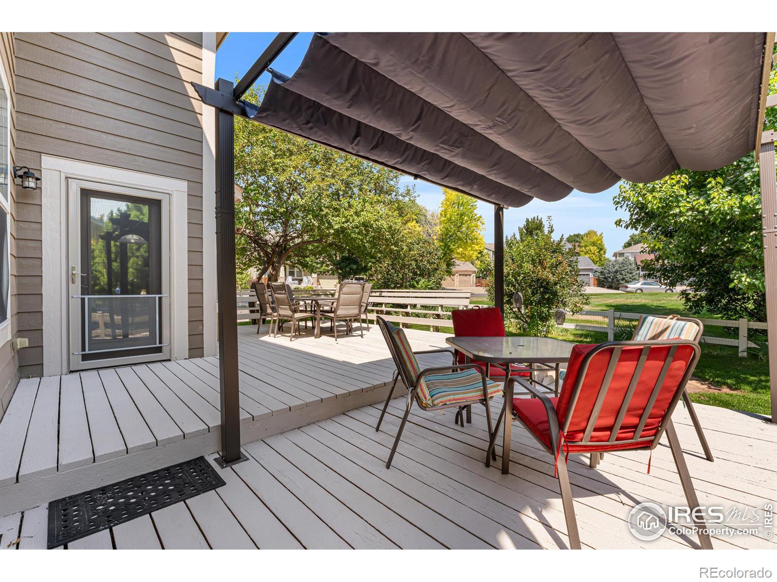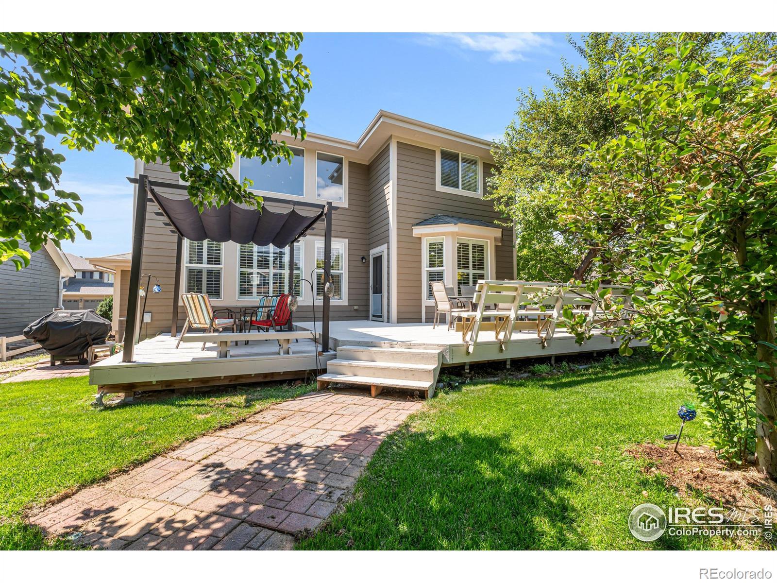 Welcome to 2202 Harvest Street in Fort Collins' highly sought-after Westchase neighborhood. No Metro District. For peace of mind, the home features a newer roof, updated air conditioning and heating system as well as a newer hot water heater. Perfectly situated on a corner lot backing a community open space, this 4-bedroom, 3.5-bath home offers both comfort and convenience. Step inside to find sun-filled living spaces with soaring ceilings and an inviting open layout - perfect for both entertaining and everyday living. The open-concept living area features high ceilings and is centered around a recently updated gas log fireplace and enhanced by wired surround sound-perfect for family movie nights. A separate home office provides an ideal space for remote work, study, or creative projects. The kitchen and living room areas flow seamlessly to the backyard. Outside, enjoy the Colorado evenings on the raised deck with fenced yard, ideal for summer BBQ's or a quiet morning coffee. Upstairs, the primary suite features a five-piece bathroom with dual vanities, a soaking tub, and a walk-in shower, plus a large walk-in closet. Second-floor laundry adds everyday convenience. The finished basement provides extra flex space for a gym or playroom and includes an additional living space. Additional highlights include a south-facing home for easier snowy-day maintenance, an oversized two car garage with an additional storage room. Very well maintained and cared for, the seller has already completed a home inspection, and this move-in-ready home is prepared for its next chapter. Parks, trails, and top-rated schools including Bacon Elementary, Preston Middle, and Fossil Ridge High School are just moments away. Come see why this is the perfect place to call home.