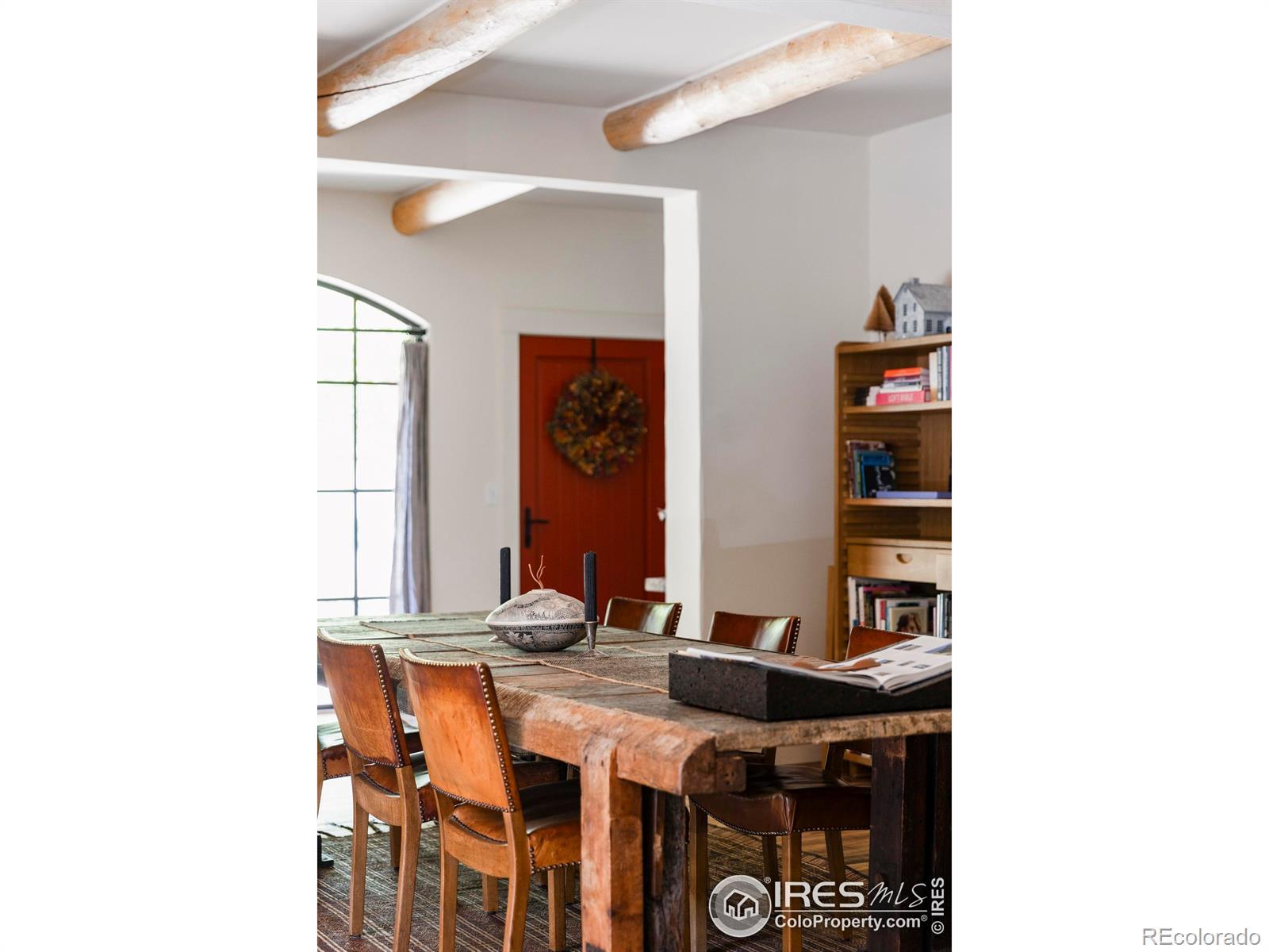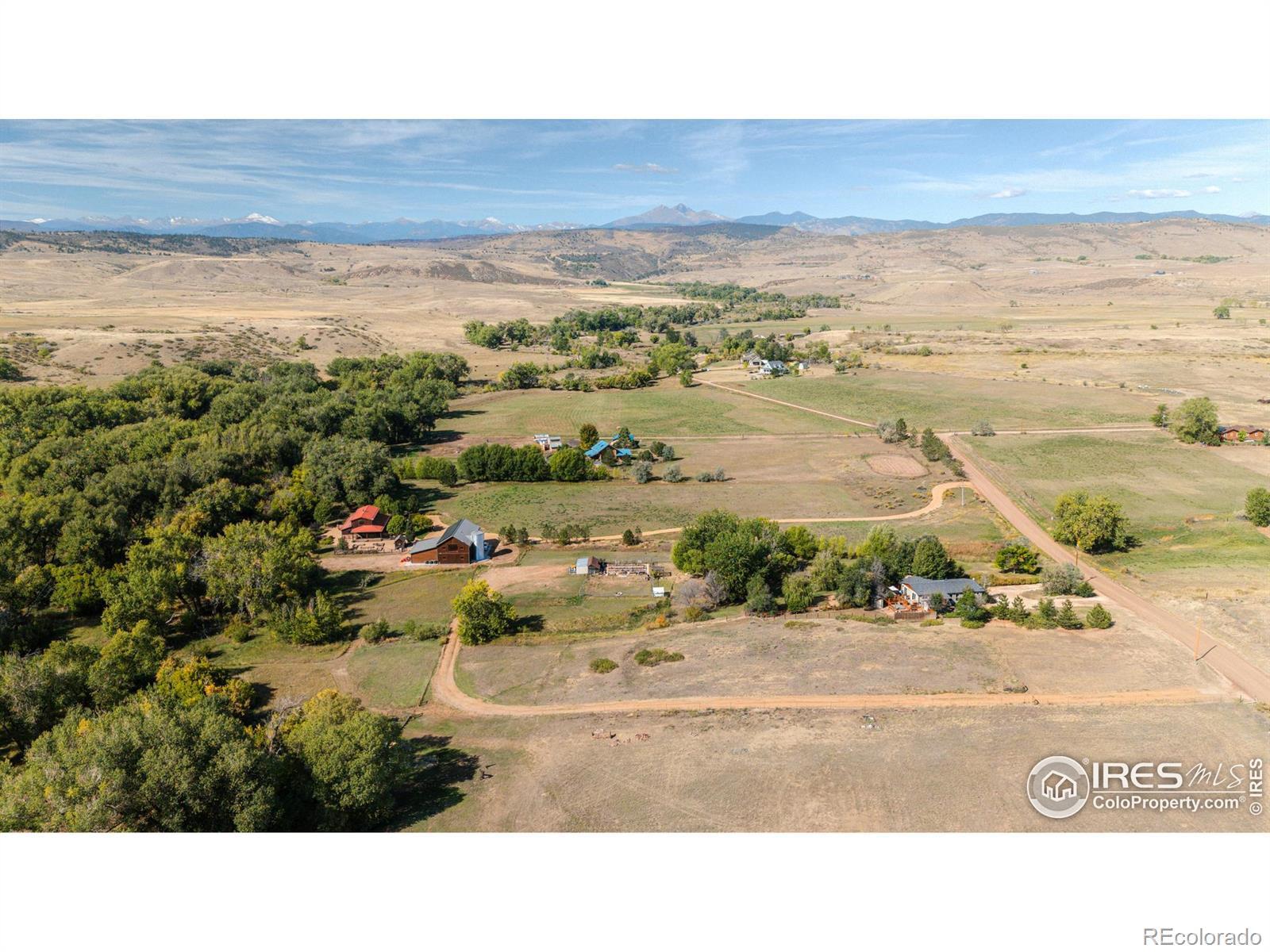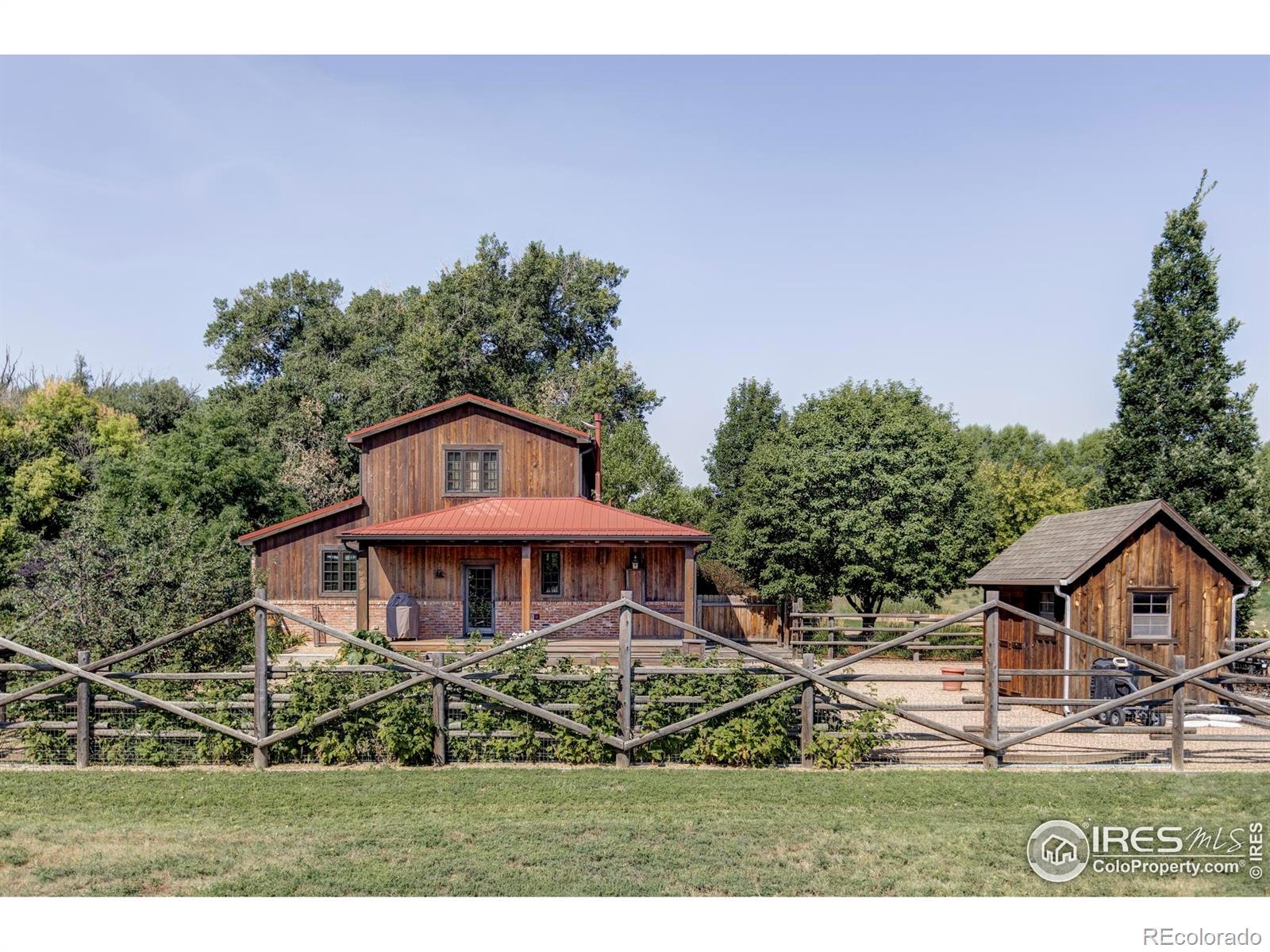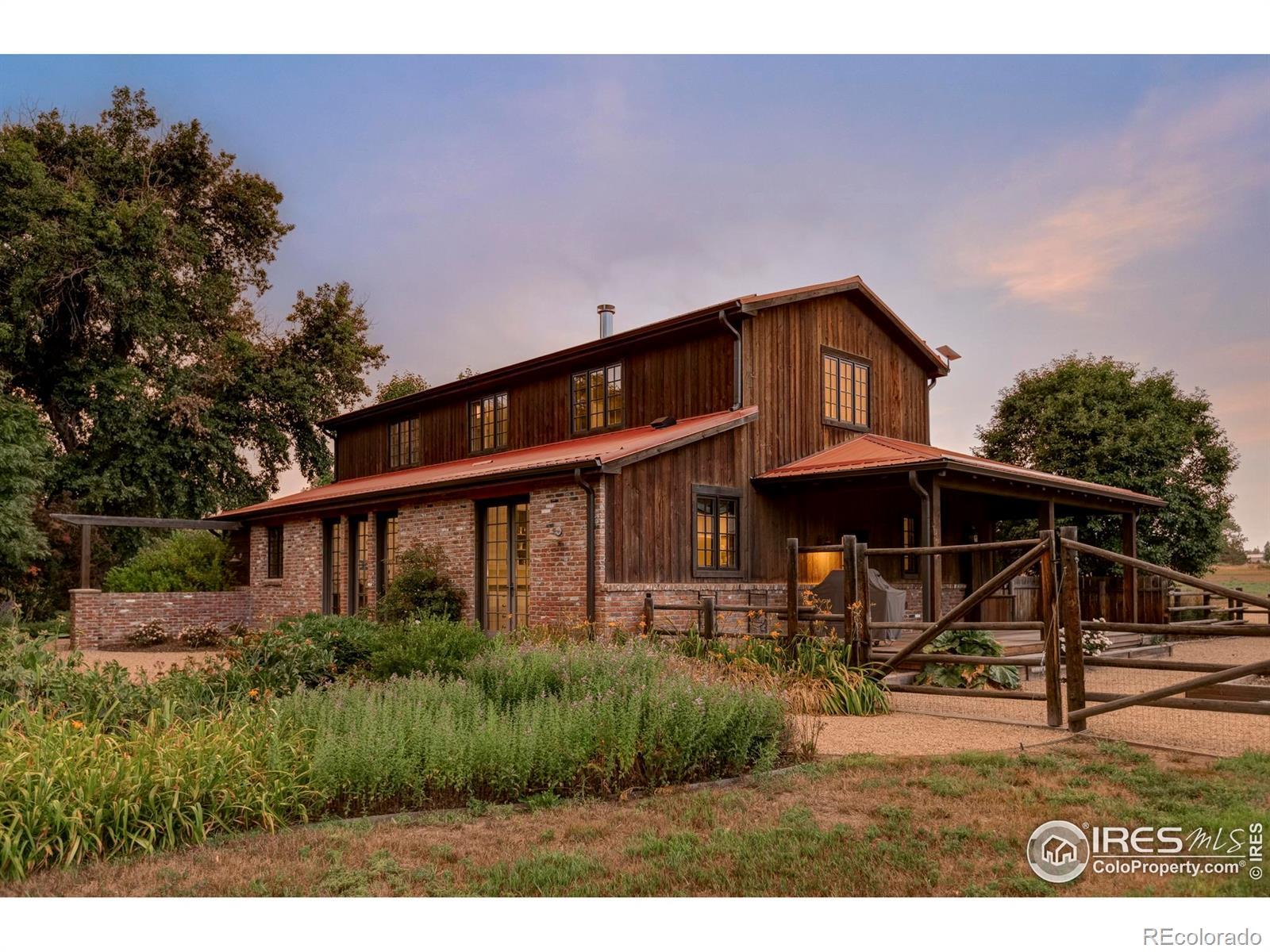 Where the foothills meet the plains, this 9.13-acre estate offers natural beauty, timeless design, and sustainable living. Backing to Rabbit Mountain Open Space and hundreds of acres of protected land, it provides sweeping views, abundant wildlife, and privacy just 10 minutes from Longmont and 30 from Boulder. At its heart is a Provence-inspired farmhouse, remodeled by a European antiques dealer to blend Old World craftsmanship with modern comfort. Hand-carved Catalan doors, a French arched iron window, reclaimed oak floors, and original iron hardware create authenticity and warmth. Designer lighting and oversized windows fill each space with light, while a wall of glass along the southern fa ade frames the outdoors. The main level features a sunlit dining room with wood-burning fireplace, a cozy living area, and a bright corner office. The chef's kitchen boasts marble and wood countertops, open shelving, and upscale appliances including a vented Gaggenau range, Gaggenau wall ovens, Thermador refrigerator, Sub Zero drawers, and wine fridge. A pantry, scullery, laundry, powder bath, and secondary bedroom suite with en suite bath complete this level. Upstairs, a vaulted family room leads to the private primary suite, where Longs Peak views frame a serene retreat with ample closets and a spa bathroom with soaking tub, bench shower, and double vanity. Established gardens overflow with roses, peonies, hydrangeas, irises, and fruit plantings. A fenced garden with raised beds and shed leads to a cottonwood grove, two seasonal ponds, and the Little Thompson River, home to abundant wildlife. A newly built 3,600-sq-ft multi-use structure offers Marvin windows, super-insulated construction, a 19kW solar array, and three-zone heat pumps for near net-zero energy. It includes a vaulted flex space, guest suite with kitchenette, workshop, storage, garage, and shaded patio. 15789 N 83rd Street is a rare Boulder County opportunity where design, ecology, and lifestyle unite.