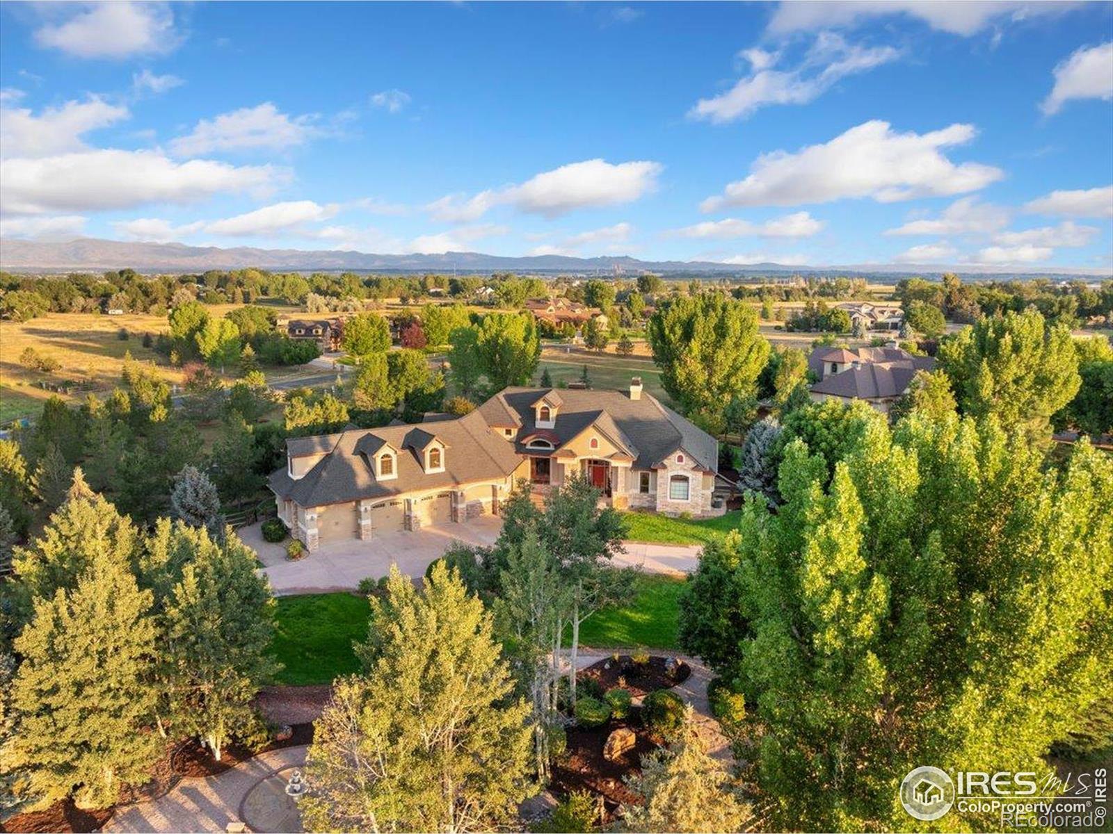 Luxury meets lifestyle in this exceptional Country Estate, offering an ideal blend of views, seclusion, connection to open space & nature only 10 minutes from Old Town Ft Collins. Seamless indoor-outdoor living awaits with more than 2600 sqft of thoughtfully designed covered terraces & sunny patios, creating an effortless extension of your home to the outdoors. Step inside to discover soaring vaulted ceilings, 4 fireplaces, newly finished real wood floors, and 8-ft solid doors made from premium materials for durability and style. The refined gourmet kitchen, with custom two-story cabinetry, a large walk-in pantry, sleek quartz counters, stainless appliances, and designer backsplash, is perfect for intimate meals or elegant gatherings. From every room on the main floor enjoy access to nature, lovely mountain vistas and unforgettable sunsets. The spacious primary suite is a true retreat featuring a stone fireplace, his and her closets, & access to a covered terrace with mountain views. The newly remodeled spa-like ensuite bath features an elegant vessel tub, expansive walk-in shower, custom cabs, and ledge stone accents. The lower walkout level features a private guest suite, spacious rec room with seamless access to the expansive patio, wet bar, state of the art theater room, and a private wine cellar. Additionally, there are two versatile rooms ideal for office, hobby or wellness room. The prof. landscaped yard is fenced, featuring fruit trees, perennials, butterfly garden, Colorado native plants, trees, and a serene waterfall creating your own peaceful park-like oasis. Additional amenities include 1275 sqft garage w RV bay, 3 HVAC systems for ultimate comfort, Class IV roof (2022), over 1000 square feet of beautifully finished bonus space with private bath and its own HVAC is perfect for visitors, in-laws, multi gen, or au pair. This estate is more than a home, it's a retreat, crafted for those who seek Colorado's beauty, privacy, and luxury at the highest level.