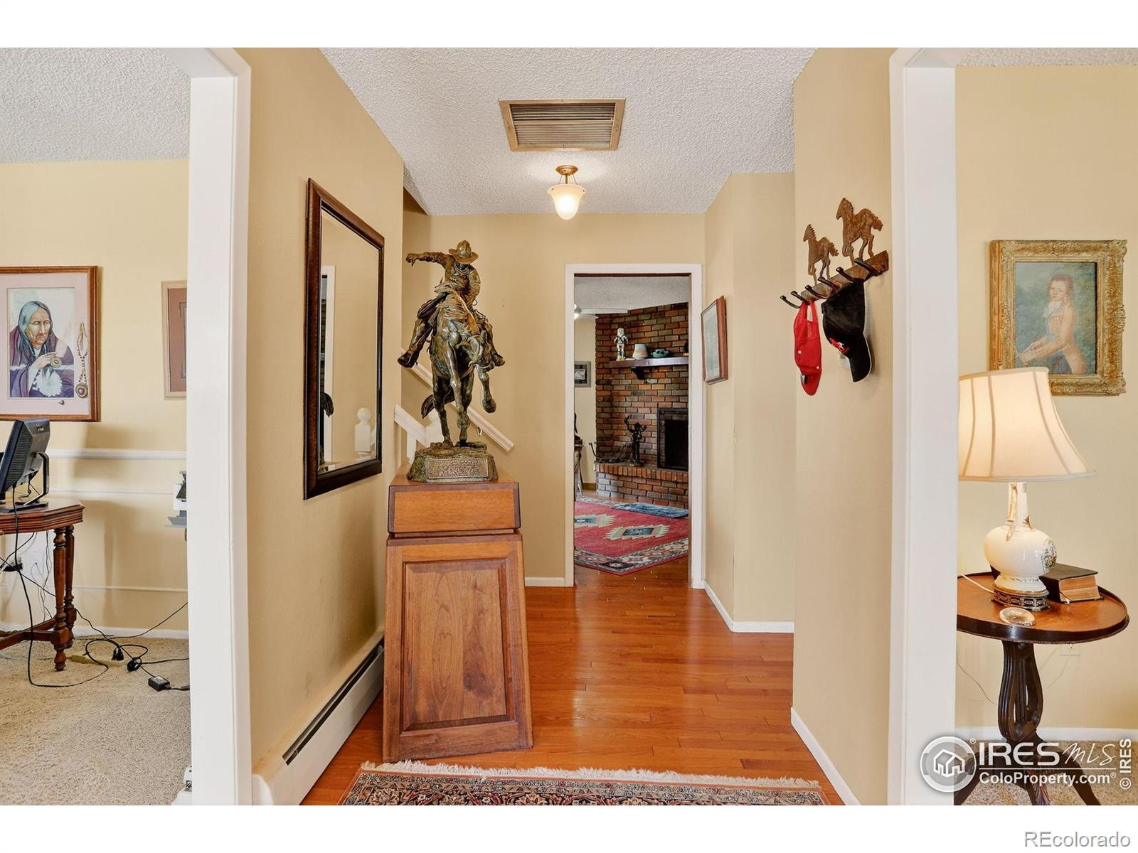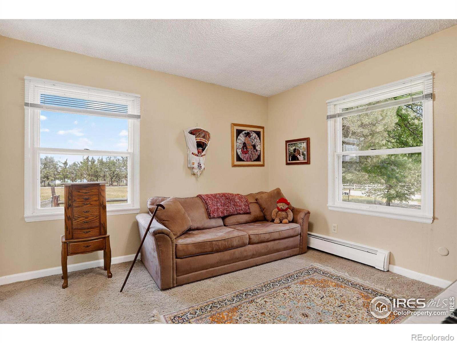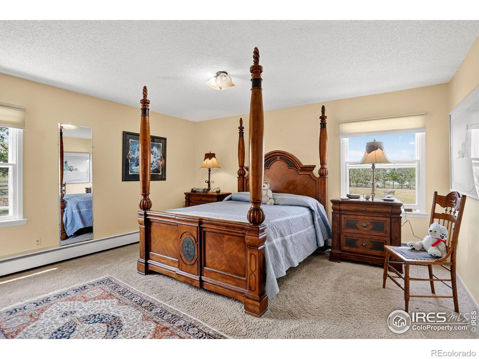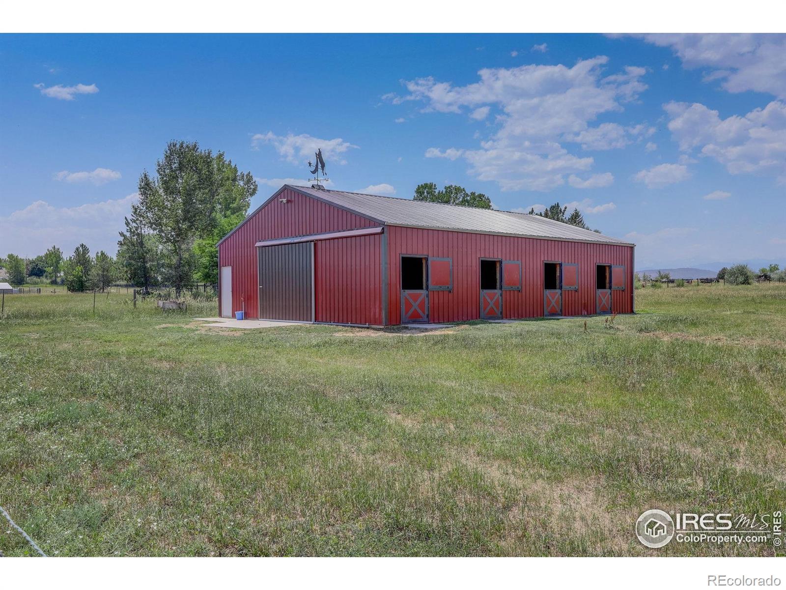 Experience the perfect blend of country living and comfort at 2316 Horseshoe Circle! Situated on 4.18 acres with mountain views, this property offers the space, privacy, and amenities you've been dreaming of. Equestrians and hobby farmers will love the fully fenced pasture, 5-stall barn with tack room, enclosed 2-stall shed, and 3 strategically placed water hydrants-one in the barn and two in the pasture. There's also a 2-car attached garage and an additional 1-car detached garage for extra storage or workshop space. Inside, you'll find 5 bedrooms and 4 bathrooms, including a main-level primary suite with an updated bath, plus a second bedroom on the main floor. The updated kitchen boasts stainless steel appliances-gas cooktop, double ovens, warming drawer, microwave, dishwasher, and refrigerator-plus modern finishes perfect for the home chef. The family rooms wood-burning fireplace adds cozy charm, while the enclosed sunroom offers year-round enjoyment with views of the mountains. Upstairs, there are three additional bedrooms and one more bathroom. Full unfinished basement for future expansion with a fireplace in place. Recent updates include a newer swamp cooler and hot water heater. A sprinkler system keeps the landscaping lush, and with no HOA, you have the freedom to truly make this property your own. Located just minutes from both Berthoud and Longmont, this home combines the best of rural tranquility and convenient access to town. One day notice for showings.