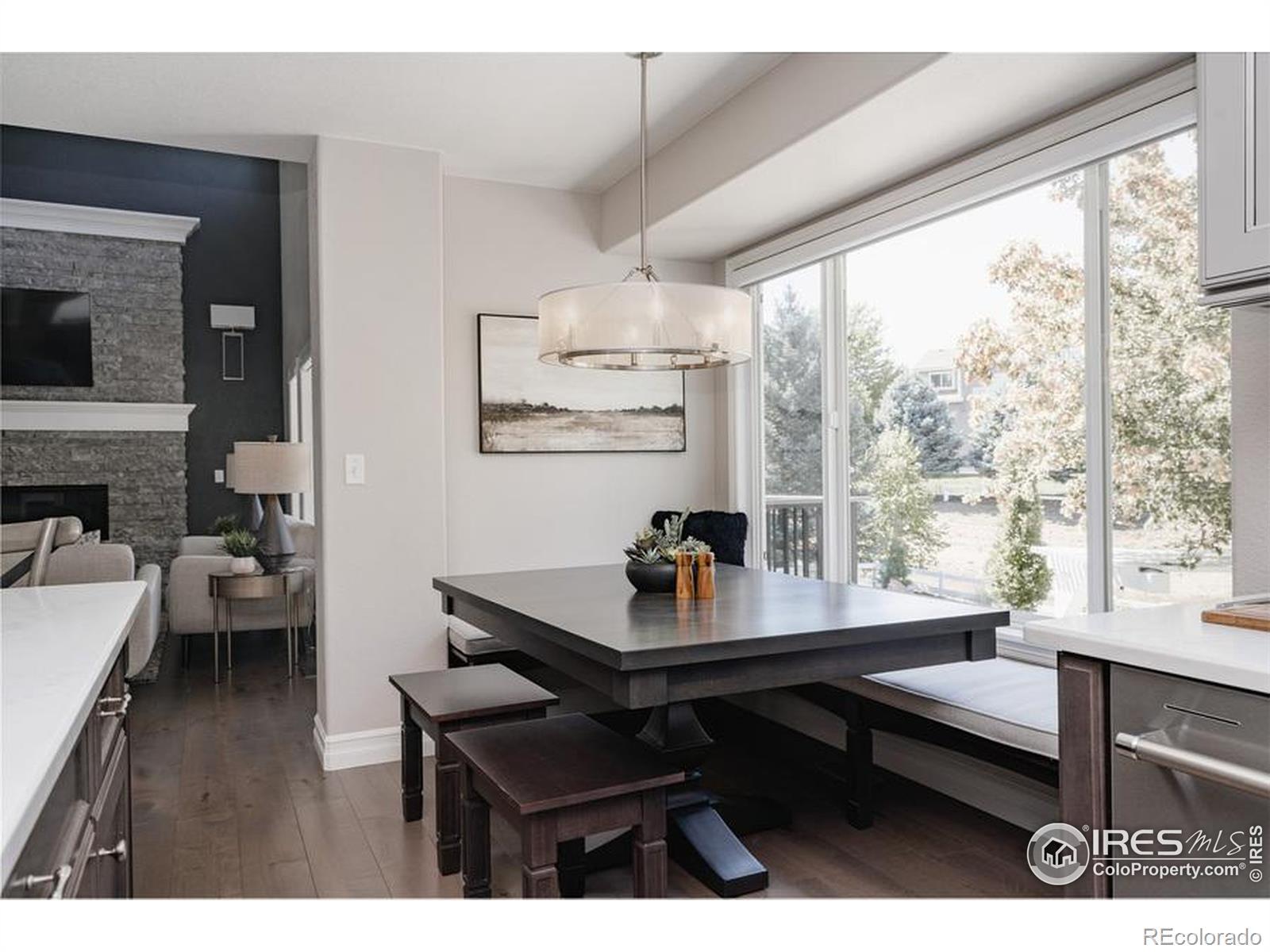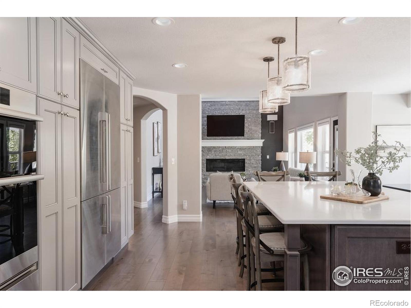 Discover luxury living at its finest in this stunning 5-bedroom, 5-bath gorgeous home spanning over 4,500 square feet of meticulously updated space, situated in the highly desirable Waterfront North neighborhood with private access to Boyd Lake. Upon entry guests are welcomed by a dramatic grand staircase, main floor premium engineered hardwood flooring, designer lighting, and fresh contemporary paint throughout. The heart of this home is the completely remodeled chef's kitchen, featuring luxurious quartz countertops, professional-grade Dacor appliances including gas cooktop and double ovens, an oversized refrigerator, and a cozy dining nook with custom built table and bench seating. The thoughtfully designed open-concept floor plan includes a dedicated main-floor executive office, formal dining room, and expansive family room with modern stacked-stone fireplace, perfect for both intimate gatherings and large-scale entertaining. The upper level features four generous bedrooms, crowned by a resort-style primary suite offering a five-piece spa bath with heated tile flooring, soaking tub, steam shower, wet bar, and walk-in closet with custom cabinetry. The finished walk-out basement serves as the ultimate entertainment destination with a full wet bar complete with refrigerator and wine fridge, guest suite with full bath, and abundant recreation space. The expansive backyard with mature landscaping backs to protected open space, featuring a partially covered deck and large patio with pergola. This community offers walking trails, a park with playground recreational amenities including private boat ramp, swim beach area with volleyball courts, swim dock, and paddleboard and kayak storage racks. Additional features include an oversized 3-car garage, dedicated storage shed, and prime location combining privacy with convenience, making this more than a home-it's a luxury lifestyle destination with immediate lake access and resort-style amenities at your doorstep.