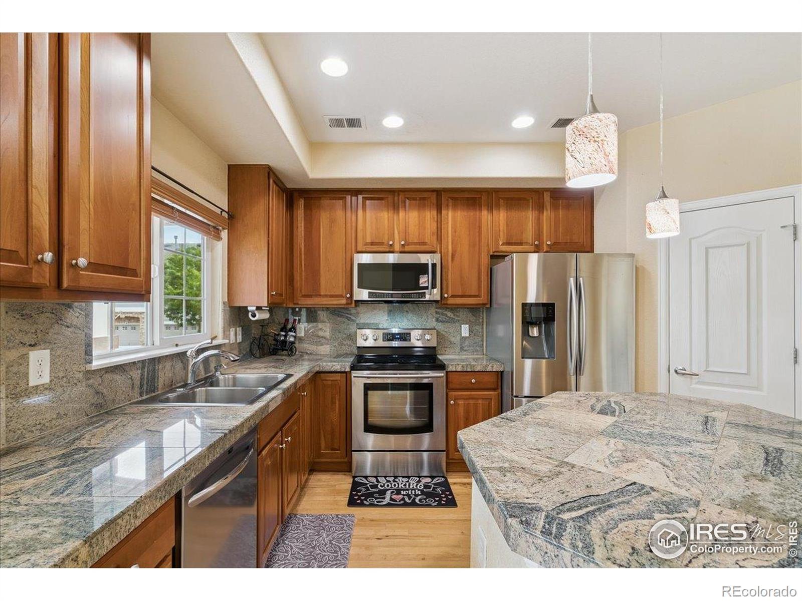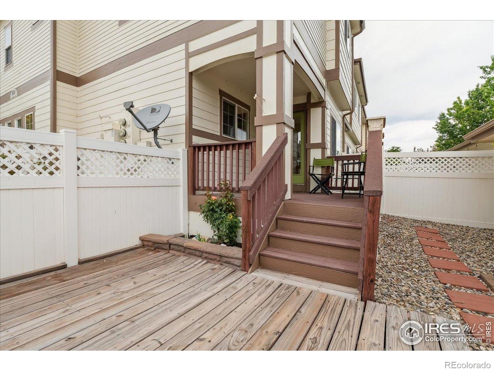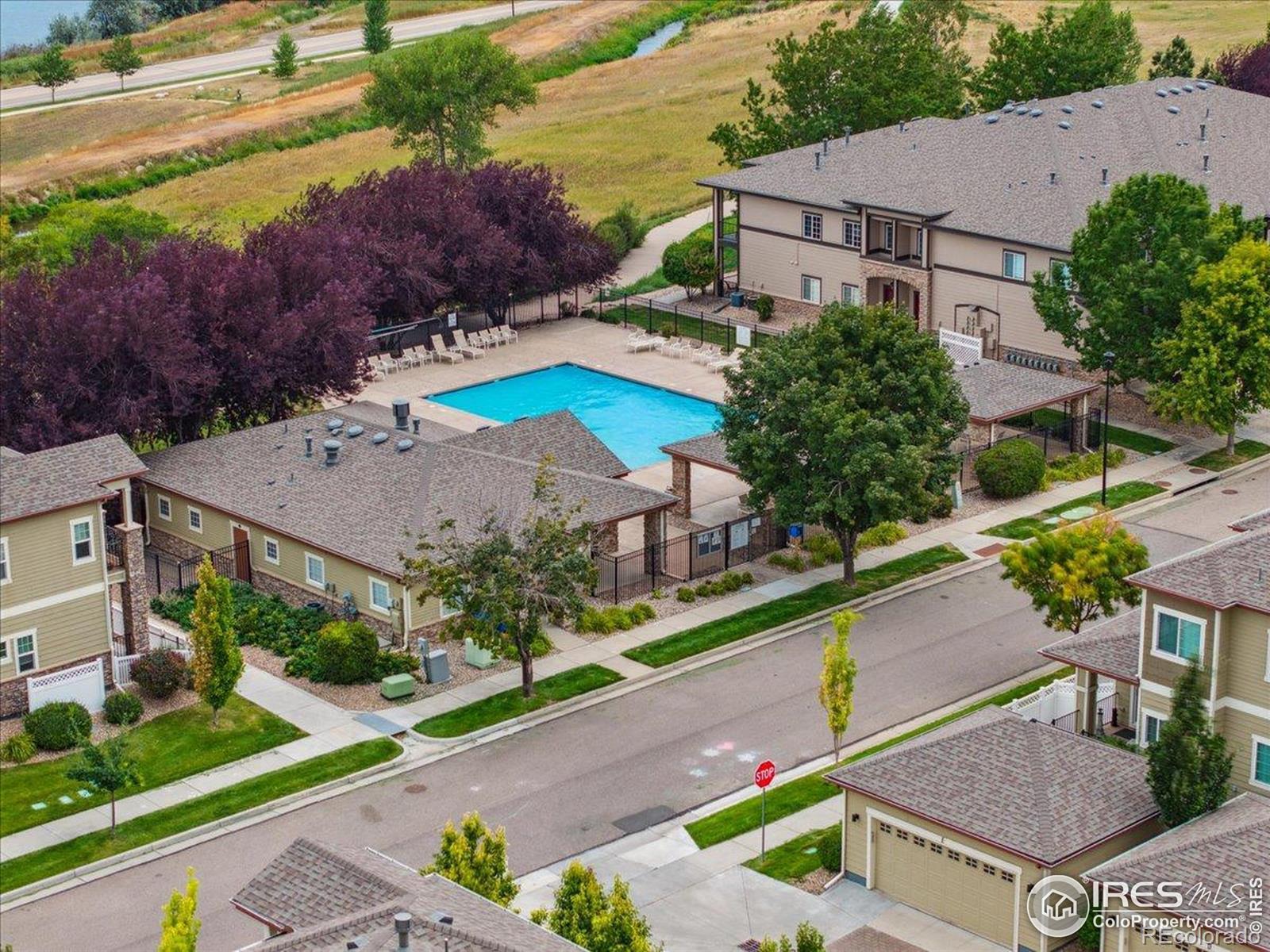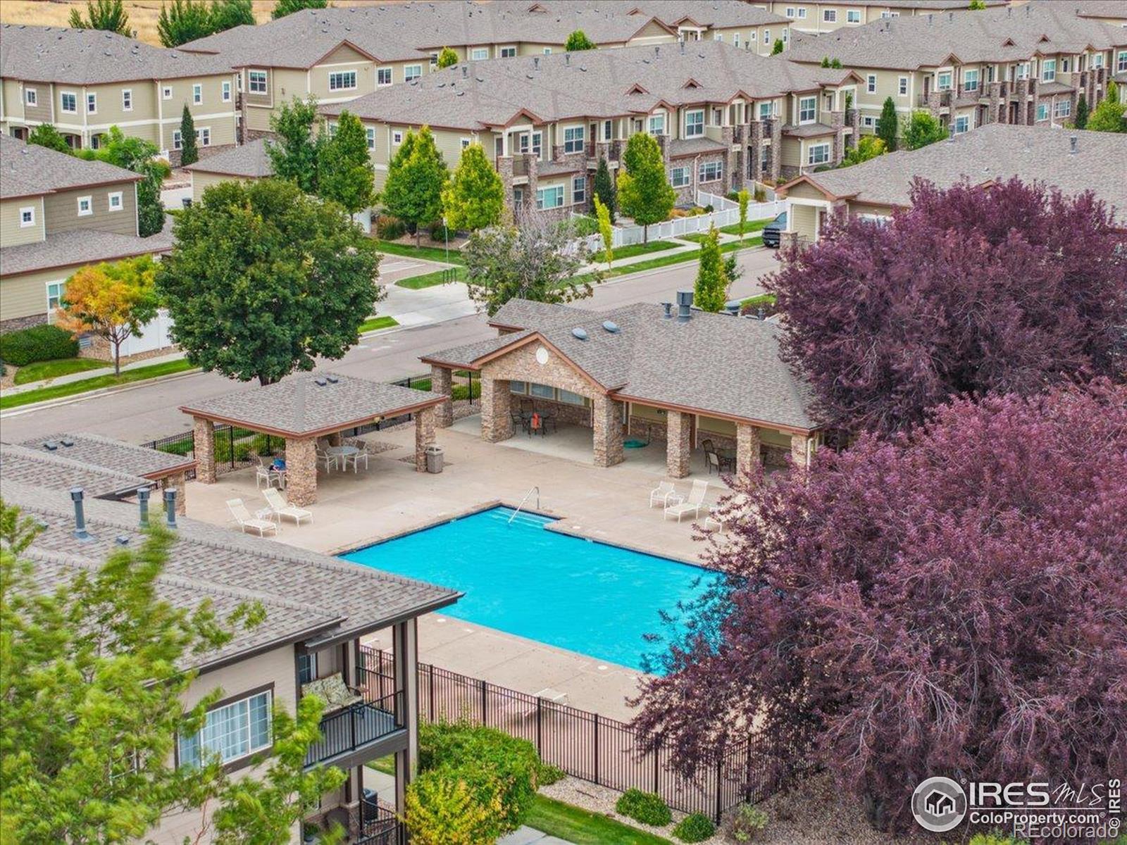This is an upscale, former model end-unit townhome in Morningside Village, SE Fort Collins. It features 3 bedrooms, 3 baths, 2,550 sqft living space, open floor plan, high ceilings, upgraded finishes, gourmet kitchen with island, and spacious natural-light-filled rooms. Enjoy a private fenced yard, mountain views, and resort-style amenities including clubhouse and pool-plus top-rated schools and dog-friendly, walkable surroundings. Notable interior features include wood floors, gas fireplace, cathedral/vaulted ceilings, walk-in closets, and double pane windows. The primary bedroom is very spacious (16x13), and the kitchen offers plentiful storage and a dedicated pantry. Appliances provided are electric range/oven, fridge, dishwasher, washer/dryer, microwave, and disposal, with laundry hookups on the upper level for convenience. This two-story townhouse sits on a 0.1-acre lot (4,187 sqft), with a detached 2-car garage, alley access, and garage door opener. Extensive exterior amenities include a balcony, deck, patio, lighting, and vinyl fencing. Accessibility features include low carpet and stall shower. The home uses forced air heating and central air cooling. Community perks include the HOA-maintained clubhouse, swimming pool, and neighborhood park. HOA Monthly fees cover snow removal, exterior maintenance, water/sewer, insurance, and community management. Residents have year around access to Club house and pool use is between 5/28-9/4. Nearby, you'll find exceptional schools-Zach Elementary (9/10), Fossil Ridge High (9/10), and Kinard (Ranked #20 in CO)/Preston Middle (6/10)-all within about a mile. Morningside Village is highly walkable and bike-friendly, close to trails, shopping, dining, and I-25 for easy commuting. Dog-friendly spaces and a private yard suit pet owners perfectly. HOA fees total approximately $444/month. This is a rare opportunity to own a mountain-view, amenity-filled, modern townhome in one of Fort Collins' most desirable neighborhoods.