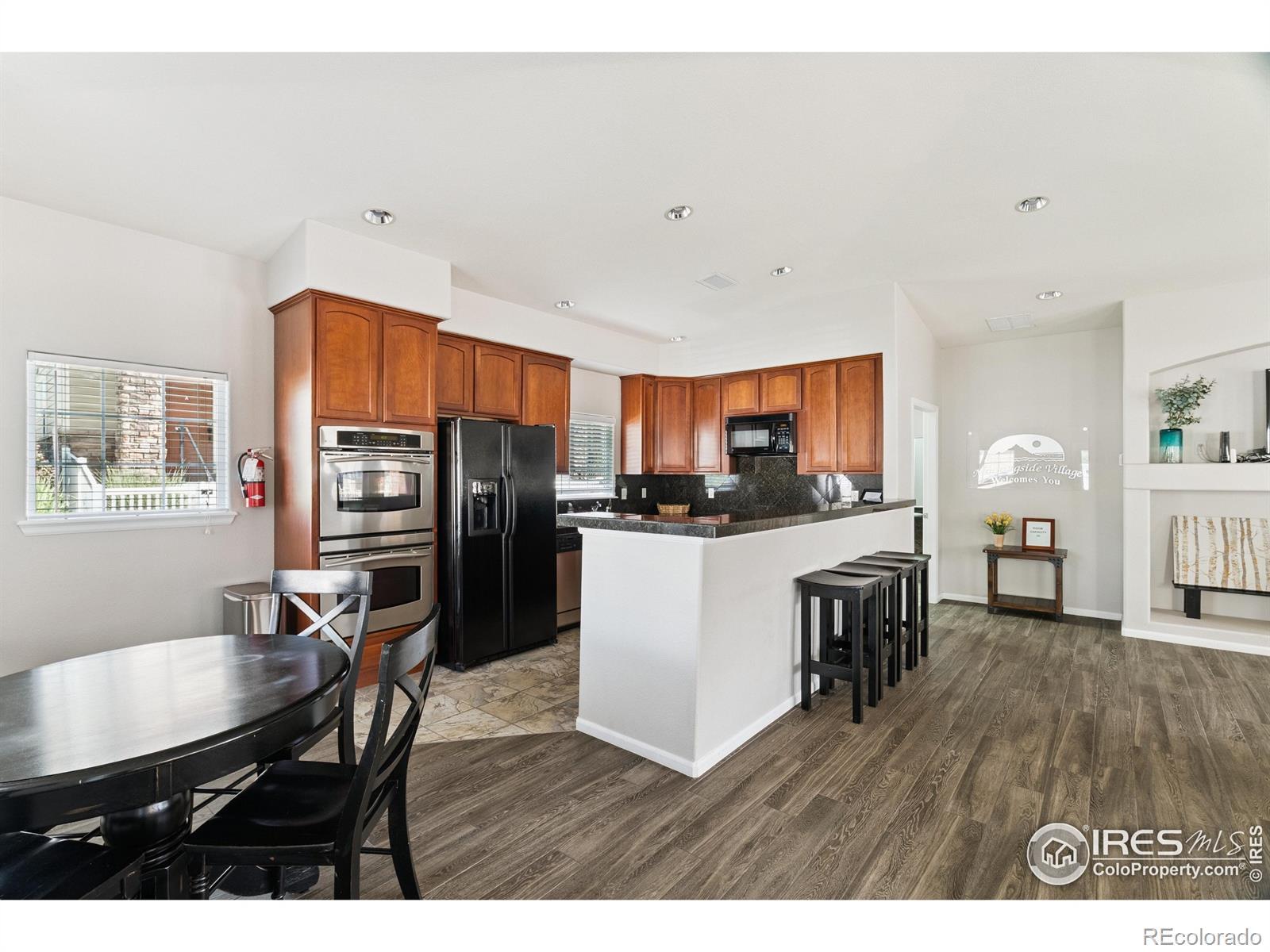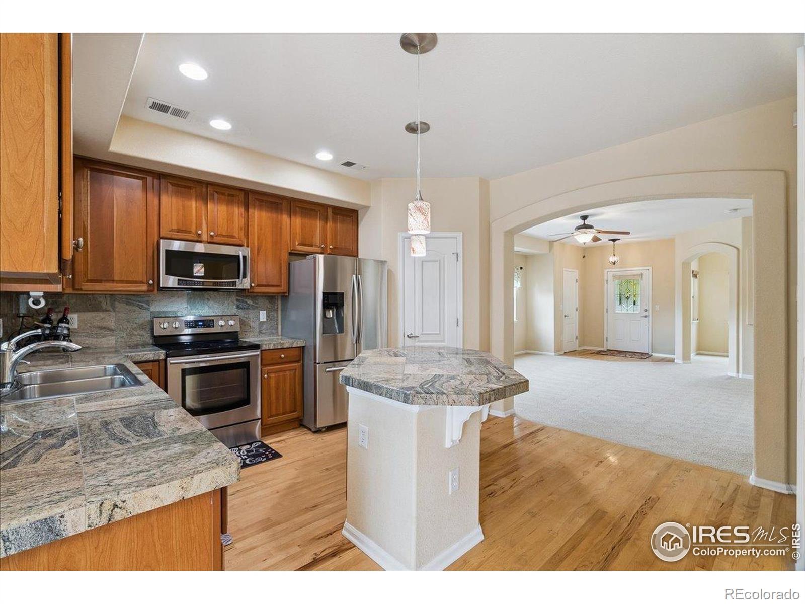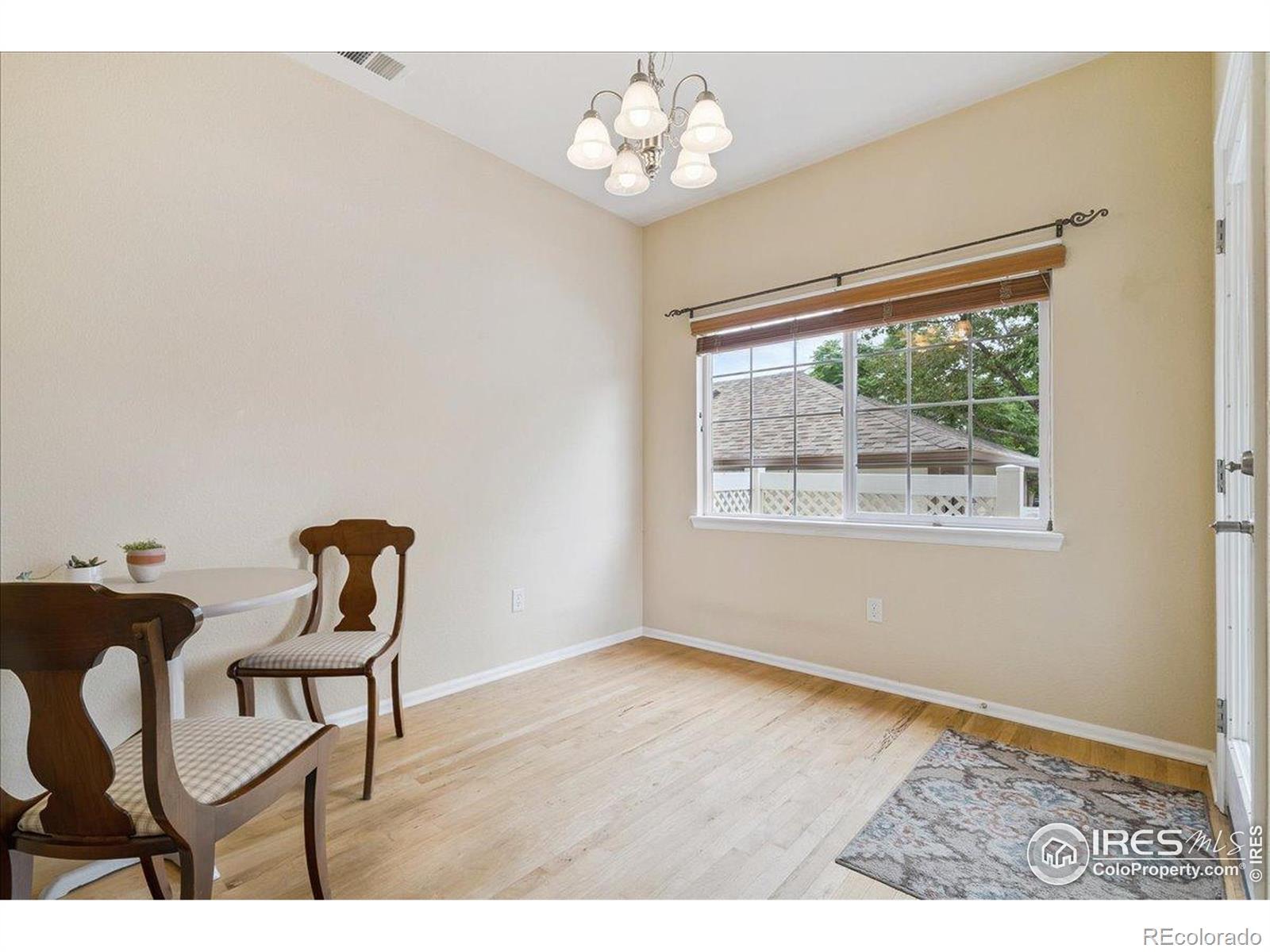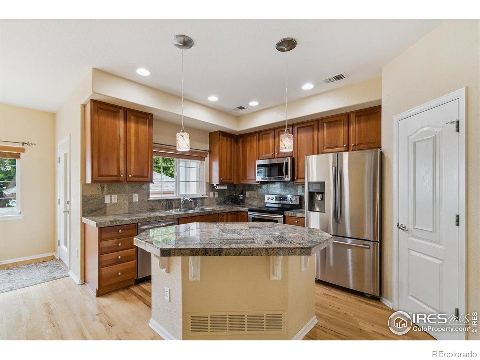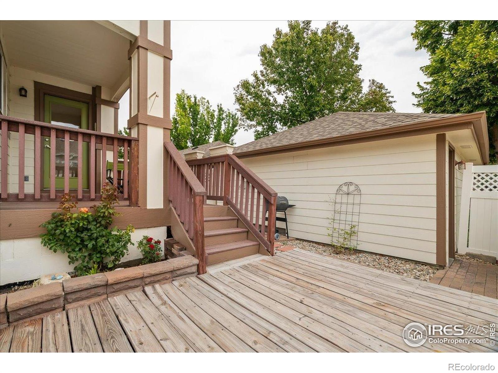 This is an upscale, former model end-unit townhome in Morningside Village, SE Fort Collins. It features 3 bedrooms, 3 baths, 2,550 sqft living space, open floor plan, high ceilings, upgraded finishes, gourmet kitchen with island, and spacious natural-light-filled rooms. Enjoy a private fenced yard, mountain views, and resort-style amenities including clubhouse and pool-plus top-rated schools and dog-friendly, walkable surroundings. Notable interior features include wood floors, gas fireplace, cathedral/vaulted ceilings, walk-in closets, and double pane windows. The primary bedroom is very spacious (16x13), and the kitchen offers plentiful storage and a dedicated pantry. Appliances provided are electric range/oven, fridge, dishwasher, washer/dryer, microwave, and disposal, with laundry hookups on the upper level for convenience. This two-story townhouse sits on a 0.1-acre lot (4,187 sqft), with a detached 2-car garage, alley access, and garage door opener. Extensive exterior amenities include a balcony, deck, patio, lighting, and vinyl fencing. Accessibility features include low carpet and stall shower. The home uses forced air heating and central air cooling. Community perks include the HOA-maintained clubhouse, swimming pool, and neighborhood park. HOA Monthly fees cover snow removal, exterior maintenance, water/sewer, insurance, and community management. Residents have year around access to Club house and pool use is between 5/28-9/4. Nearby, you'll find exceptional schools-Zach Elementary (9/10), Fossil Ridge High (9/10), and Kinard (Ranked #20 in CO)/Preston Middle (6/10)-all within about a mile. Morningside Village is highly walkable and bike-friendly, close to trails, shopping, dining, and I-25 for easy commuting. Dog-friendly spaces and a private yard suit pet owners perfectly. HOA fees total approximately $444/month. This is a rare opportunity to own a mountain-view, amenity-filled, modern townhome in one of Fort Collins' most desirable neighborhoods.