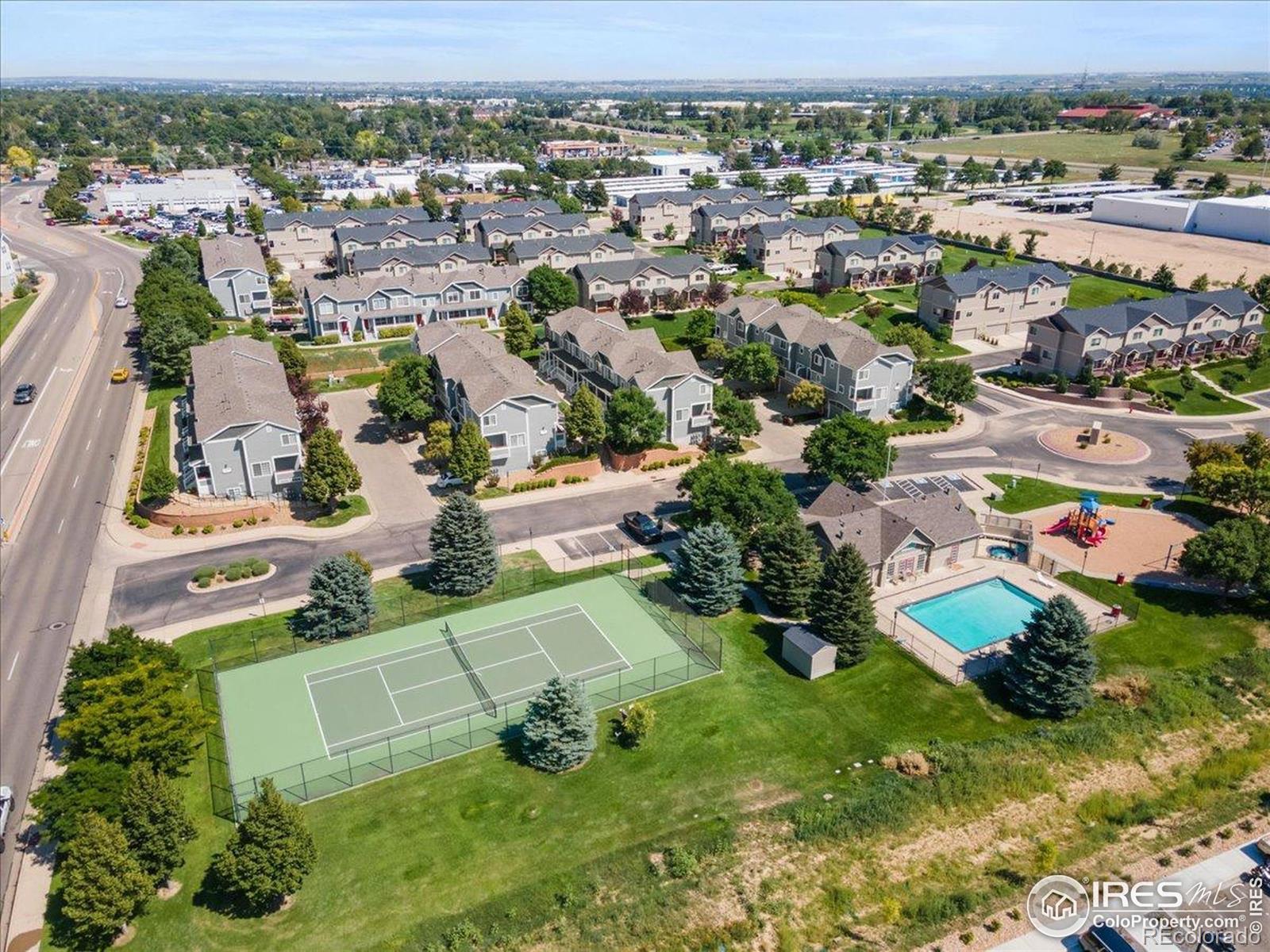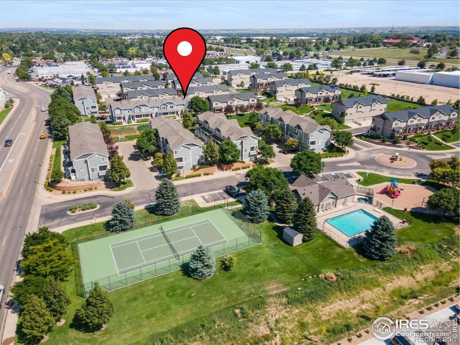 Welcome home to this charming 2-bedroom, 2.5-bath end-unit townhouse in a fantastic West Greeley location. The main living area is bright and inviting, centered around a cozy gas fireplace and offering access to a private balcony-the perfect spot for your morning coffee. Downstairs, you'll find a versatile bonus room off the 2-car garage, ideal for a home office, gym, or a large mudroom. Both generously sized bedrooms are located upstairs, each featuring a private full bath and walk-in closet, providing comfort and privacy for everyone. The community offers incredible amenities, including a clubhouse, pool, tennis court, and a private playground. Plus, landscaping, trash, and snow removal are included, making for easy, low-maintenance living. They also carry structure insurance! This home is in great condition and is a wonderful opportunity for a first-time home buyer or anyone looking for a convenient location. It's just a short walk to Greeley West High School and the Centerplace Shopping Center. Don't miss out-schedule your showing today!$5,000 Carpet Allowance.