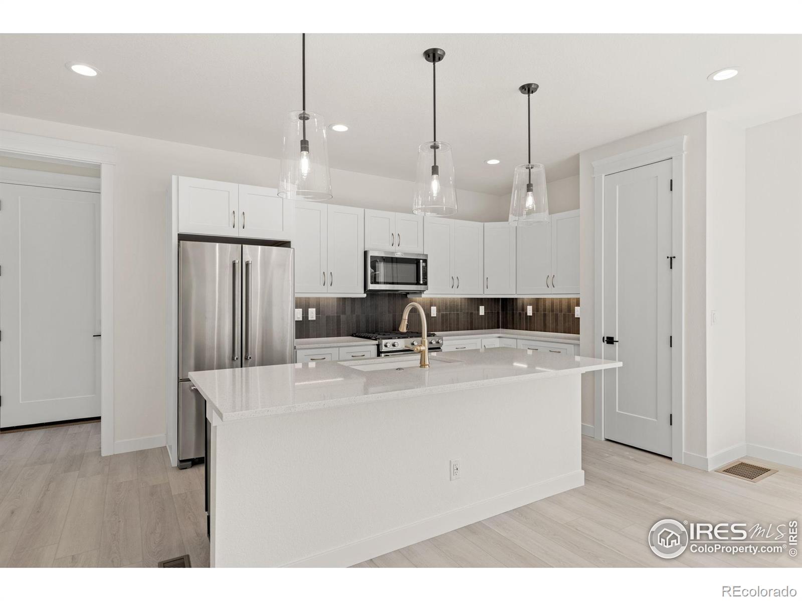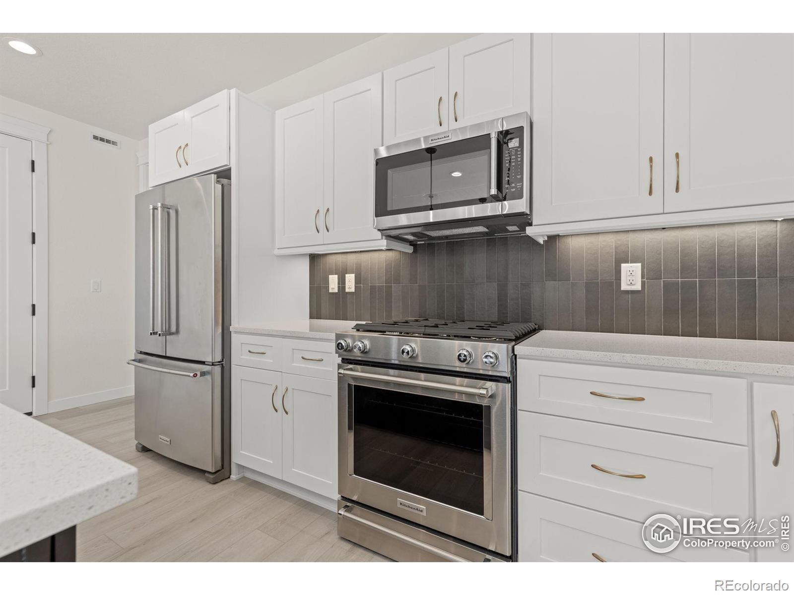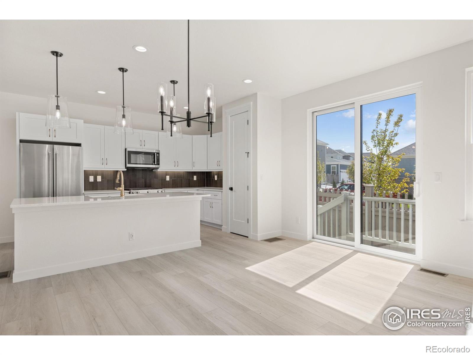 Builder offering incentives towards rate buy-down and closing costs! You will immediately notice the difference when you walk into your new home. This beautiful duplex home offers 9 foot ceilings with 8 foot doors on the main level. A large kitchen outfitted with top-of-the-line Kitchen Aid stainless steel appliances, endless cabinetry, pantry and large island is the show stopper of this home. Next to the kitchen there is room for a separate dining area and living room with cozy fire place. Separated behind the kitchen is a powder bathroom, a pocket office with built in desk, and a sizable attached two car garage with an 8 foot automatic garage door. Upstairs, there is a total of 3 bedrooms with double depth laundry room and shared bathroom with tub in the hall. The primary suite boasts an elegant vaulted, spacious walk-in closet and bathroom with double vanities and spa like shower. Don't forget your 5' fully encapsulated crawl space for all of your storage needs and access to a fully fenced side yard from your garage. This 3 bed, 2.5 bath home is one of the first available in this distinctive community with incredible views of the front range. Westerly is designed with almost 40% open space. The community will include miles of walking trails, parks, a future school site, and a Village Center. Additionally, "The Waypoint" amenity center welcomes you to lounge by the resort style pool, relax in the year round hot tub, workout in our large fitness facility, warm up by one of several fire pits, BBQ with friends, watch a game on the big screen or catch up with neighbors in the Latitude room with a coffee by the fireplace.