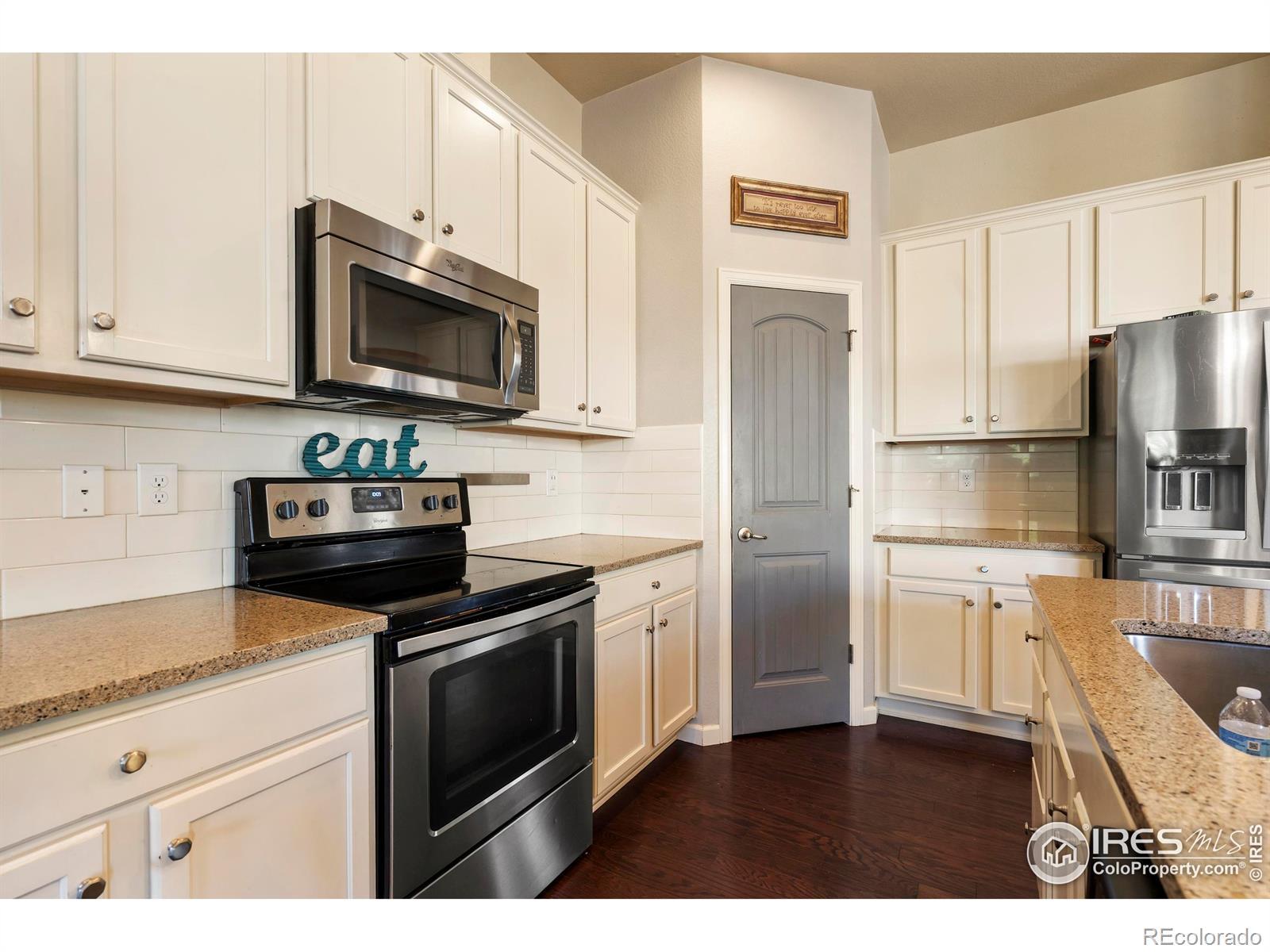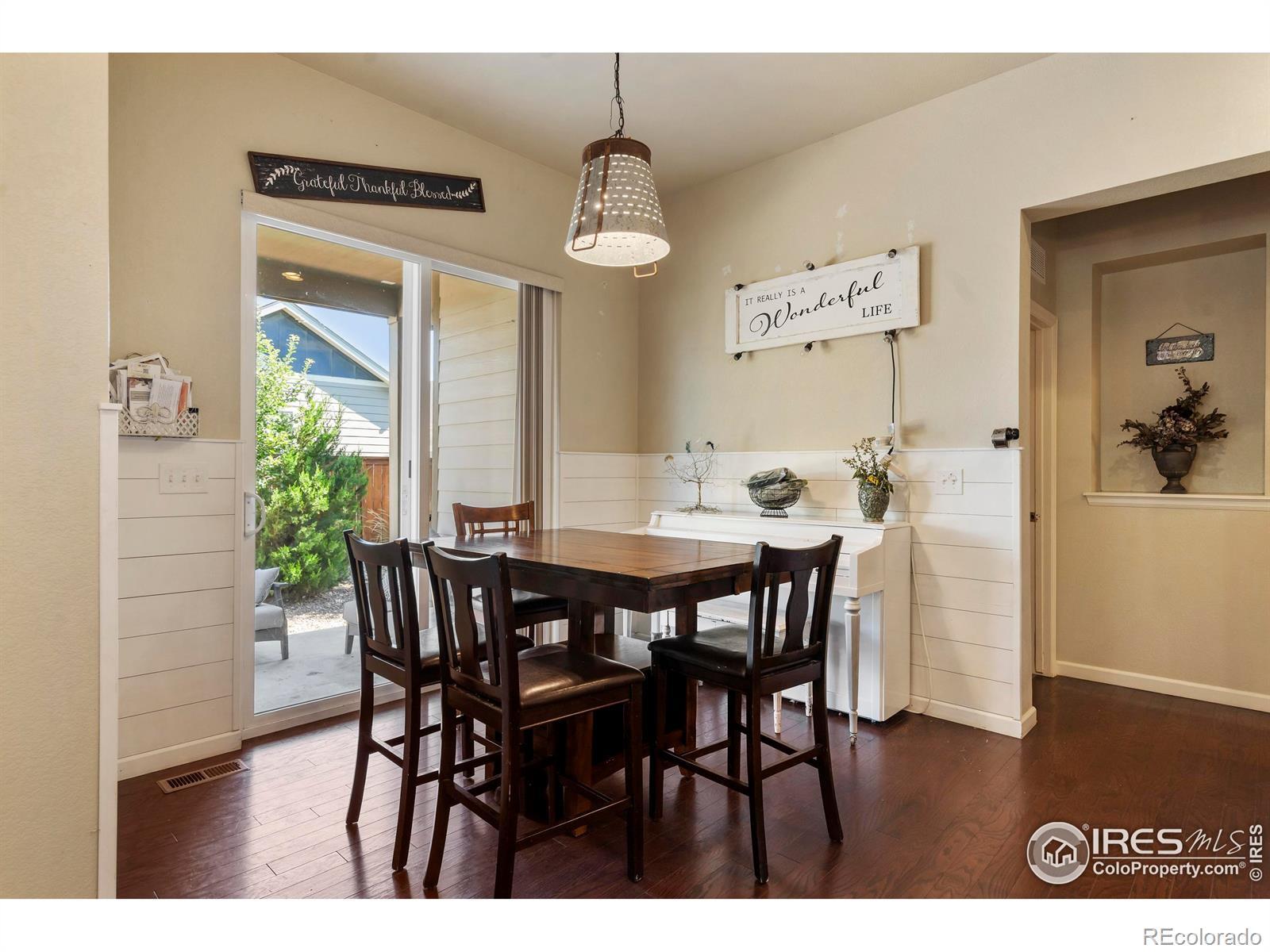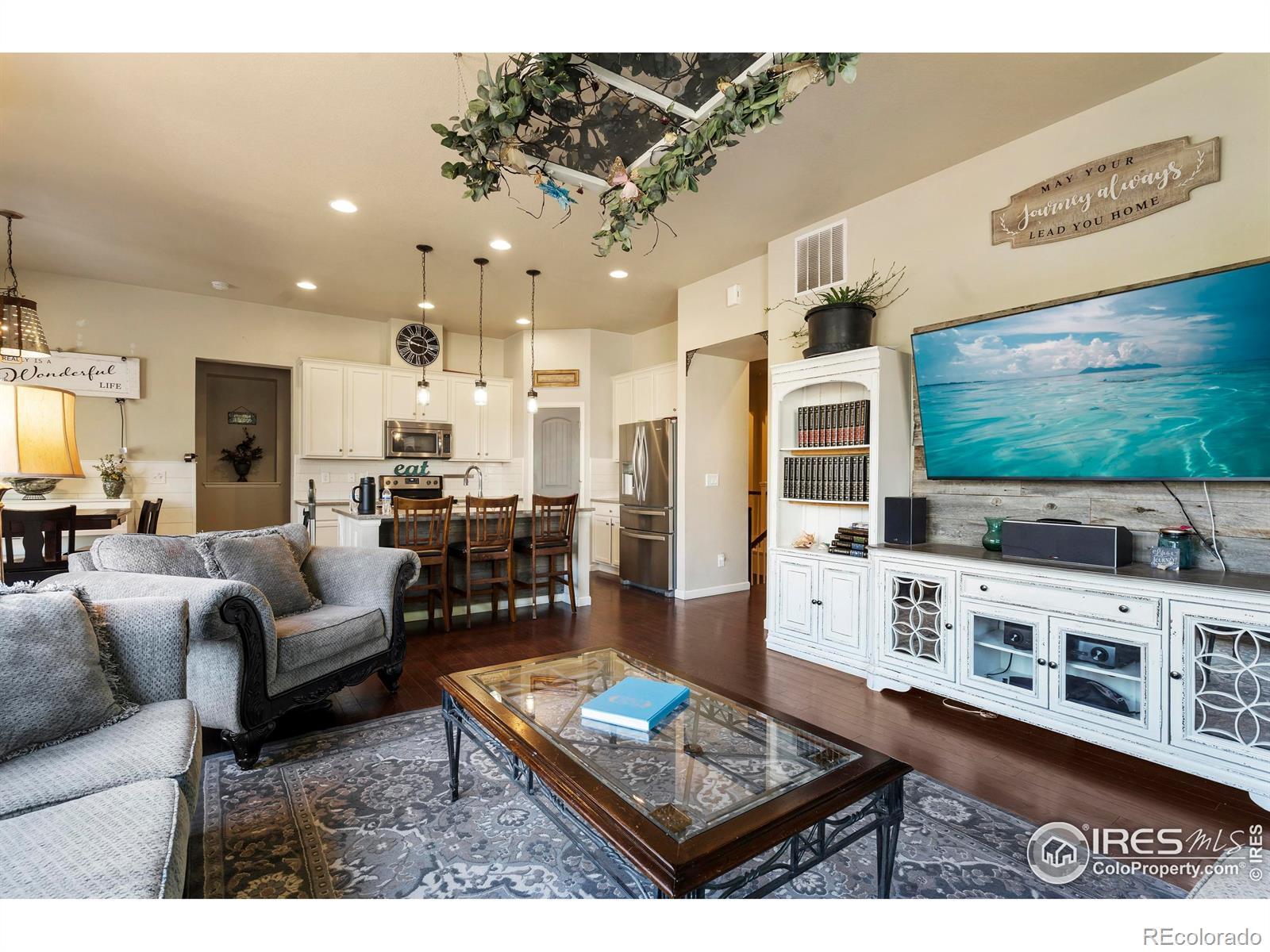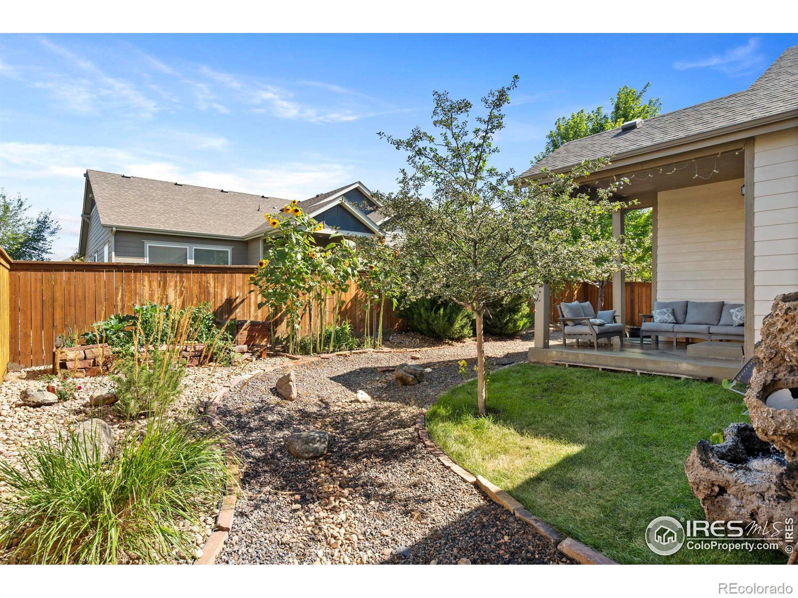 Modern ranch-style residence with practical living in a welcoming community setting. 4 bed, 4 bath with additional room for office/bedroom. Excellent open floorplan and abundant natural light and features hardwood flooring, shiplap detailing, and reclaimed wood finishes. The gourmet kitchen offers quartz countertops, a sizable island, stainless steel appliances, and classic white cabinetry with a subway tile backsplash. The finished basement boasts a spacious recreational room complete with granite wet bar, mini-kitchen creating an ideal environment for entertaining guests or multigenerational living. Outdoors, enjoy a covered patio with drop shade, gas firepit, and a secondary seating area. Thoughtful xeriscaping and drip irrigation enhance both beauty and sustainability. This home is situated in a vibrant neighborhood offering food truck events, green space, and community gardens. Located a couple minutes from Hwy 287, about a mile from TPC Colorado Golf Course and near Berthoud's recreation center, this property presents exceptional lifestyle benefits with access to premier amenities and outdoor activities.